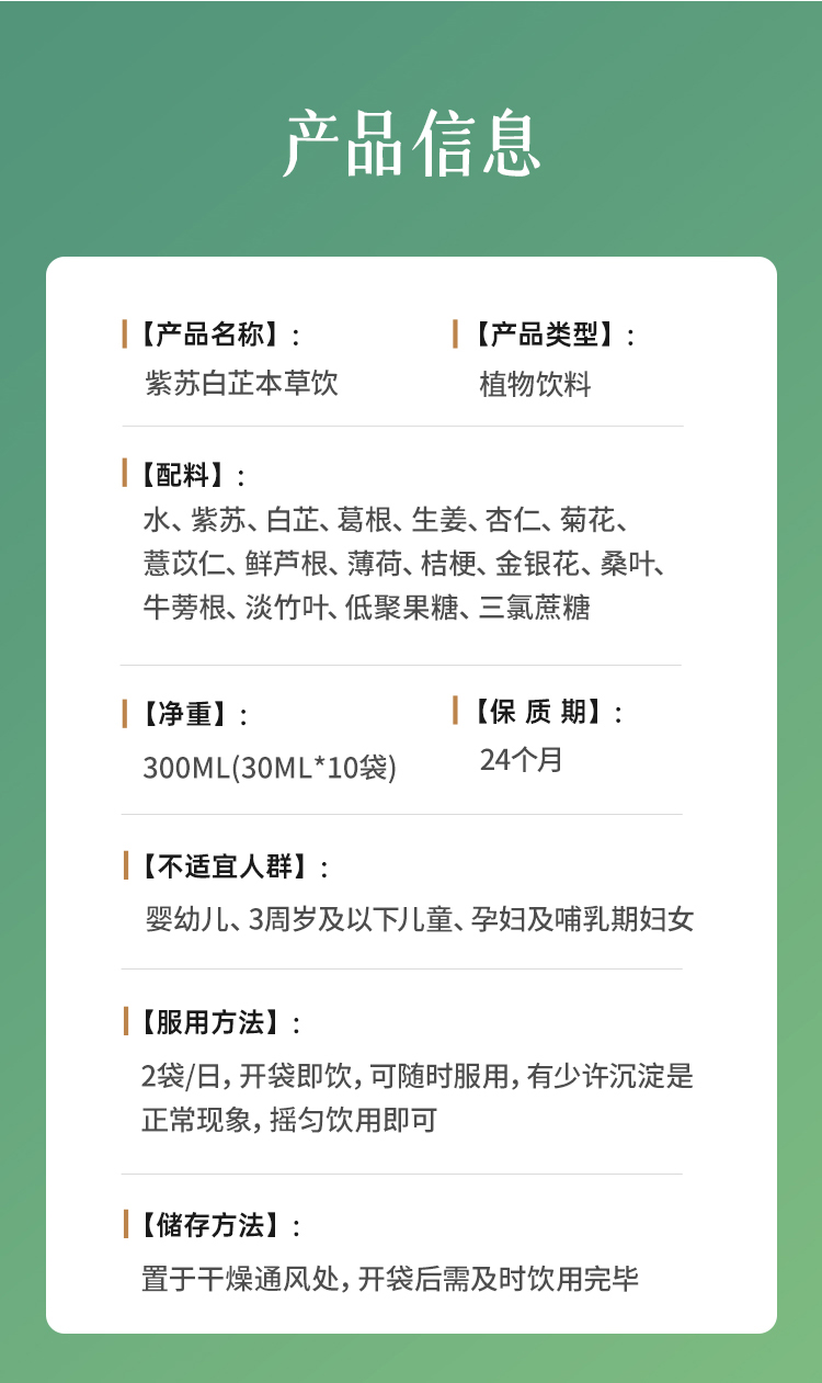 【紫苏白芷本草饮】300ml吉老师亲自研发 药食同源 超浓缩技术 好吸收更健康