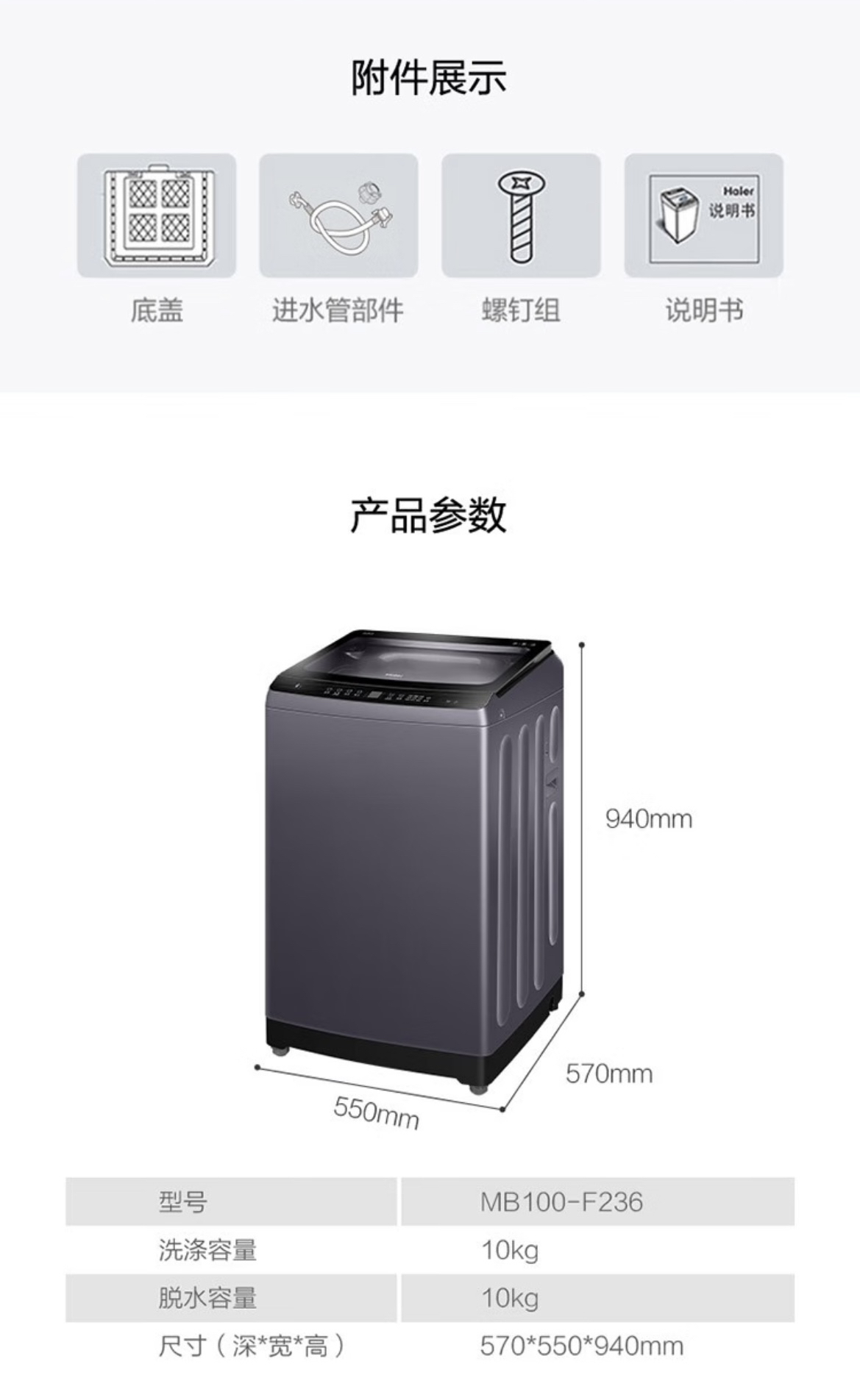 海尔(Haier)洗烘套装 XQG100-BLEG590HU1+GA100-STQ590HU1