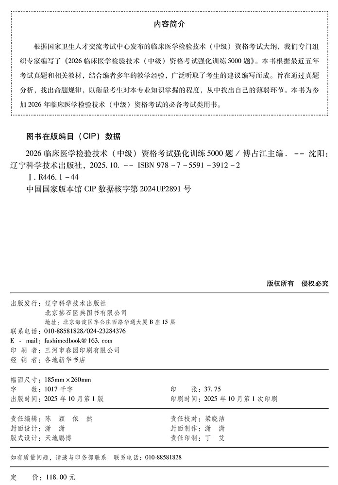 2026临床医学检验技术(中级)资格考试强化训练5000题 全国初中级卫生专业技术资格考试辅导丛书 傅占江 主编 辽宁科学技术出版社