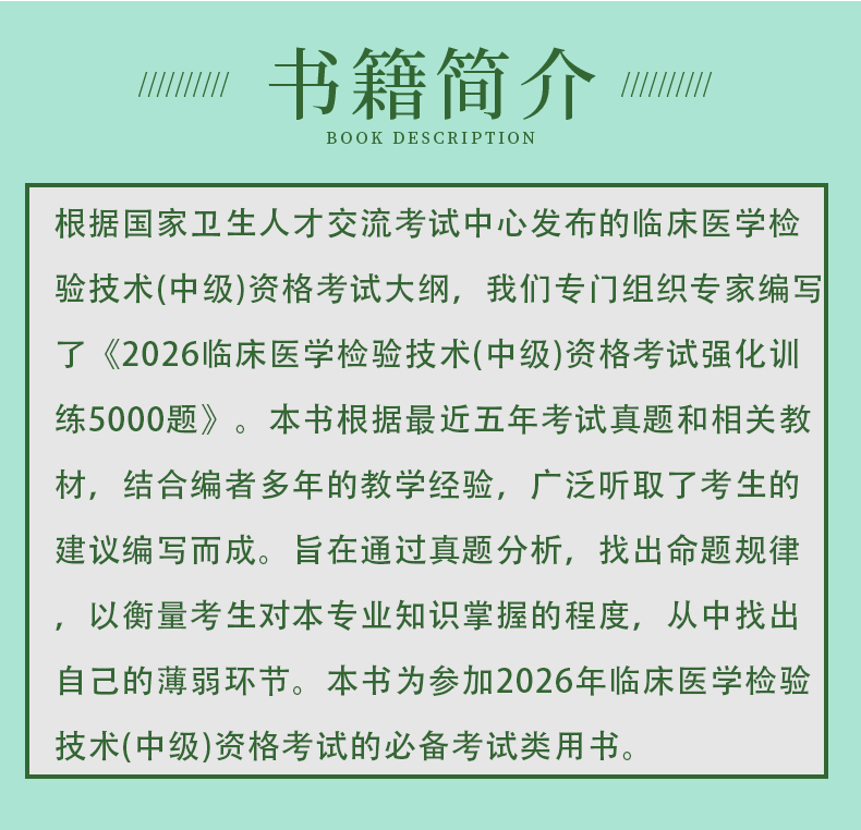 书名:2026临床医学检验技术(中级)资格考试强化训练5000题