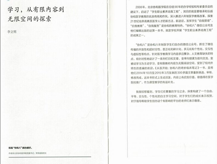 本书60余篇文章,为学术类精选,内容涵盖协和临床教学中的难点和拓展点,包括“补液”、“影像读片”、“冰冻病理”、“单核细胞增生症”等临床学习的知识点,文字可读性强,生动有趣,在线上即有较高的点击量。在编写本书时,所有文章进行了二次校对和润色,可读性和权威性进一步提高。