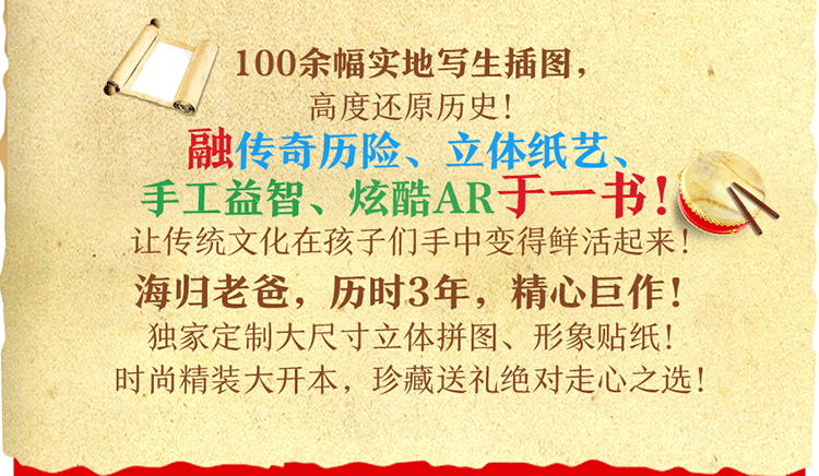 本书不仅包含大量的人文百科知识,并且在制作上突破了传统书籍的形式,融合了立体纸艺、AR,让阅读变得更加立体。此外,精美贴纸搭配高难度益智拼图,充分调动孩子好奇心,激发孩子想象力和创造力。亲子联盟一起挑战聪明的大脑!让孩子充分体验阅读带来的愉悦感,因为悦读而爱上阅读!