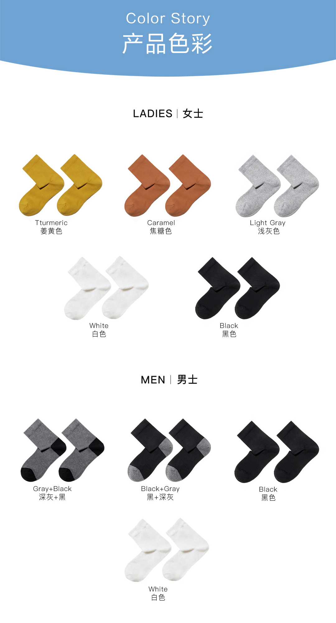【特价清仓】本物直角中筒袜 (6双装)
