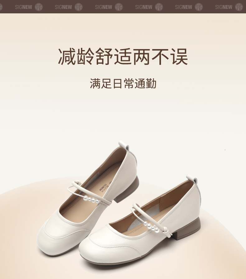 信诺软底玛丽珍鞋女2025新款春夏季平底单鞋中年妈妈鞋一脚蹬女鞋AX5C134-50