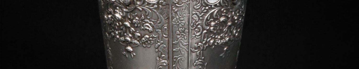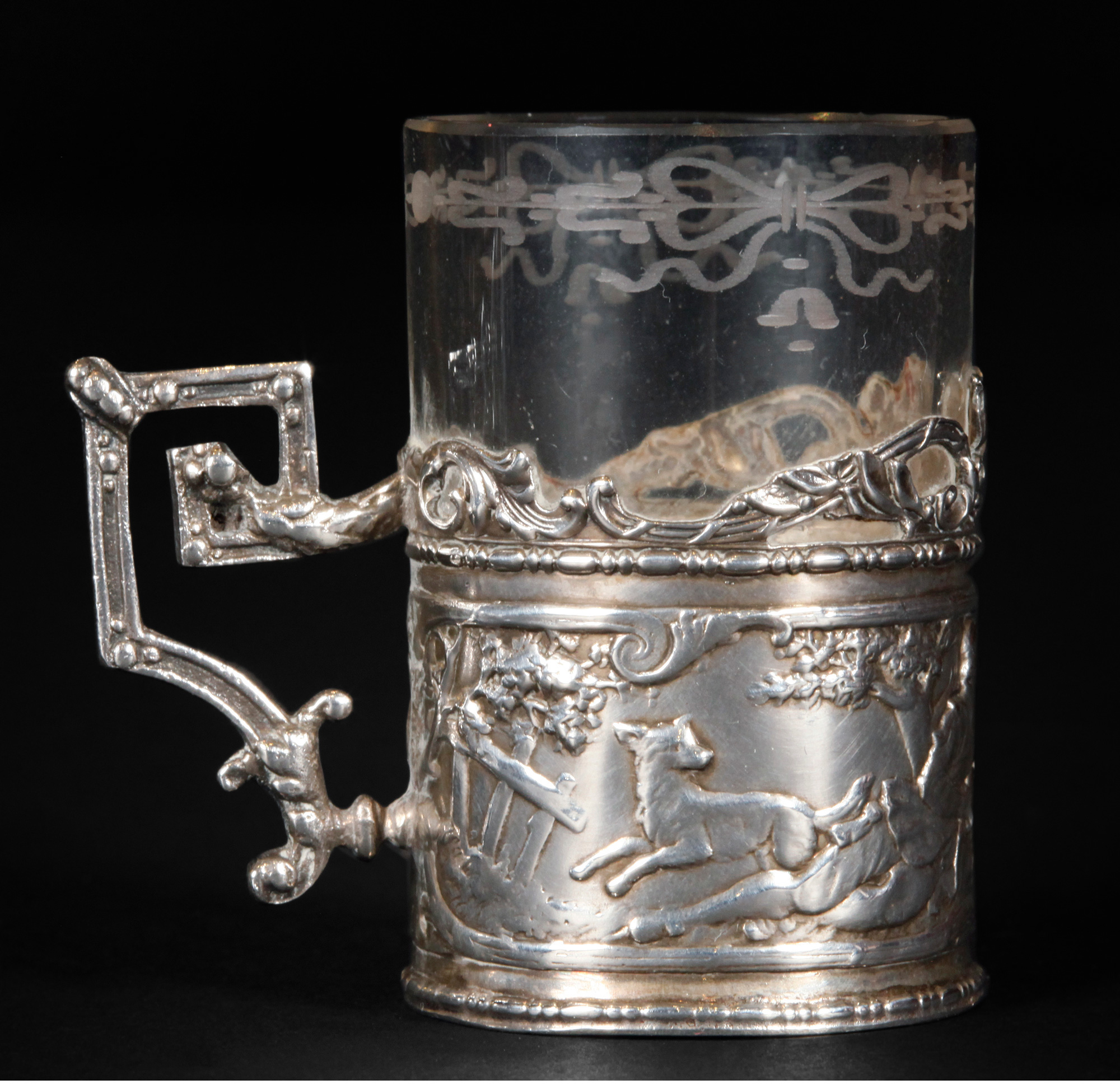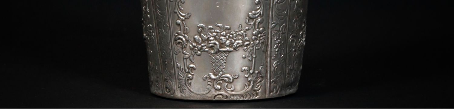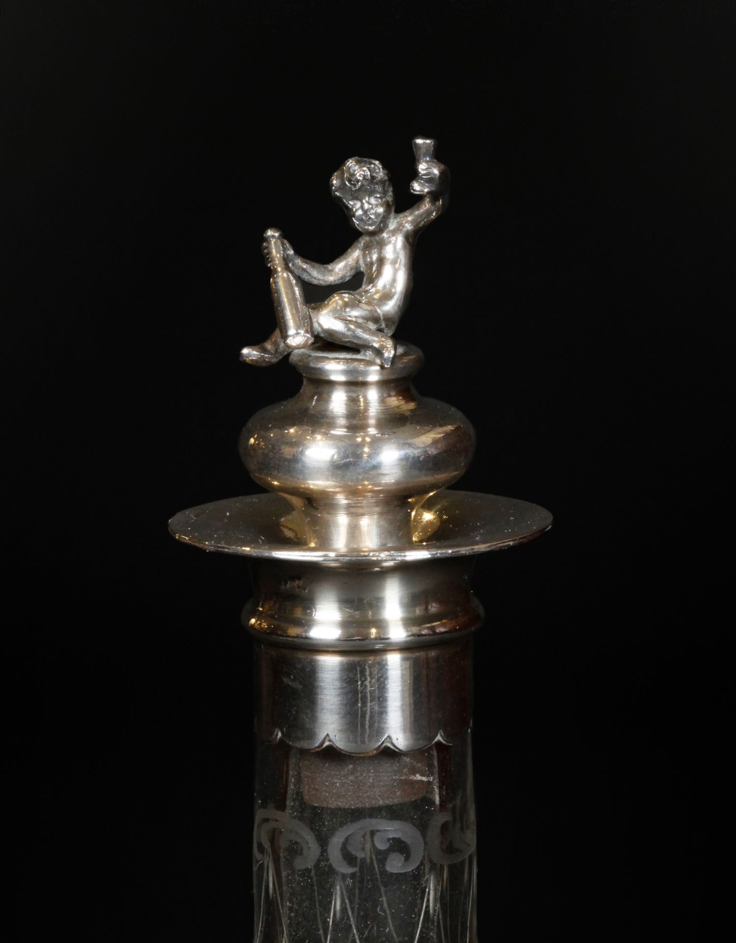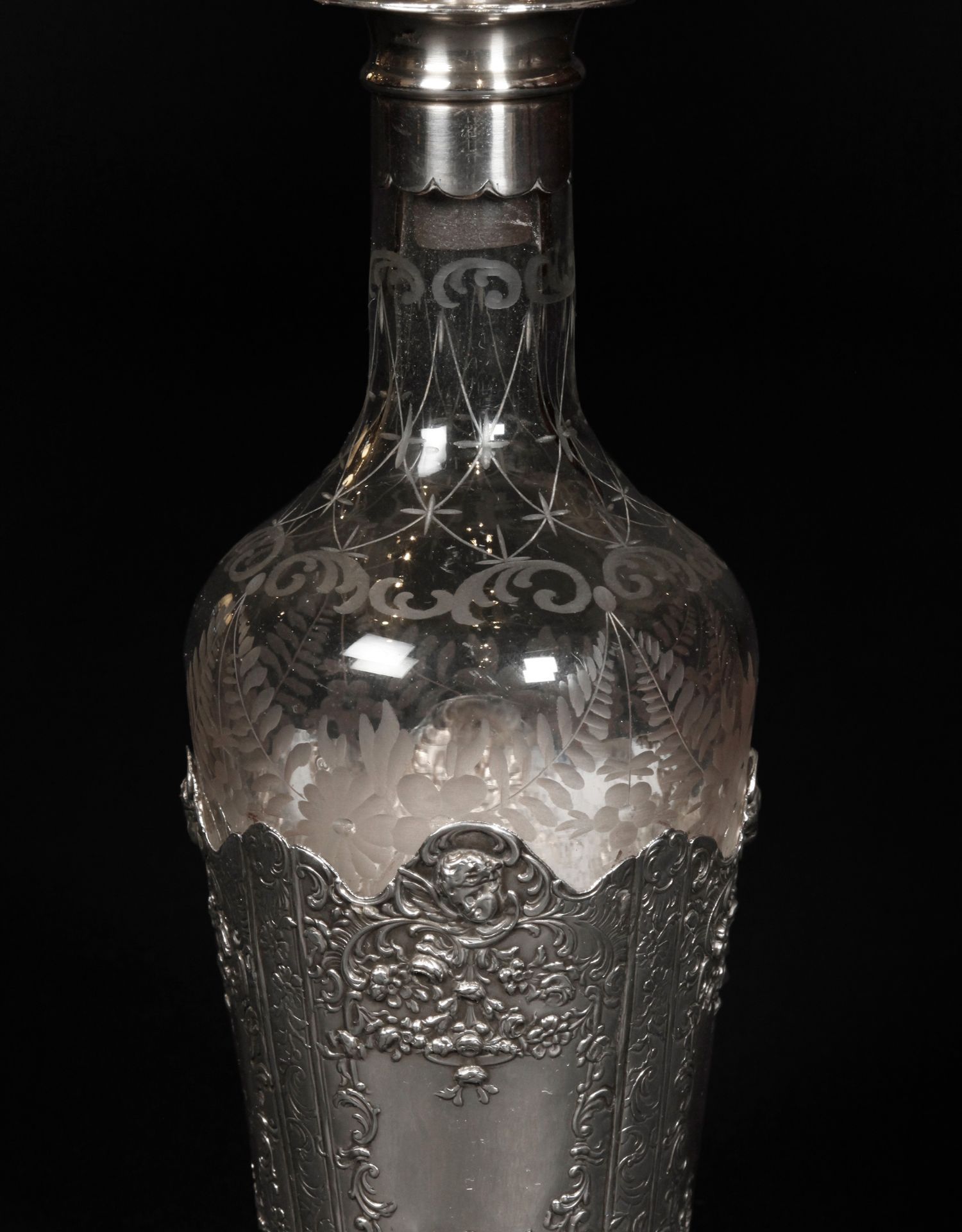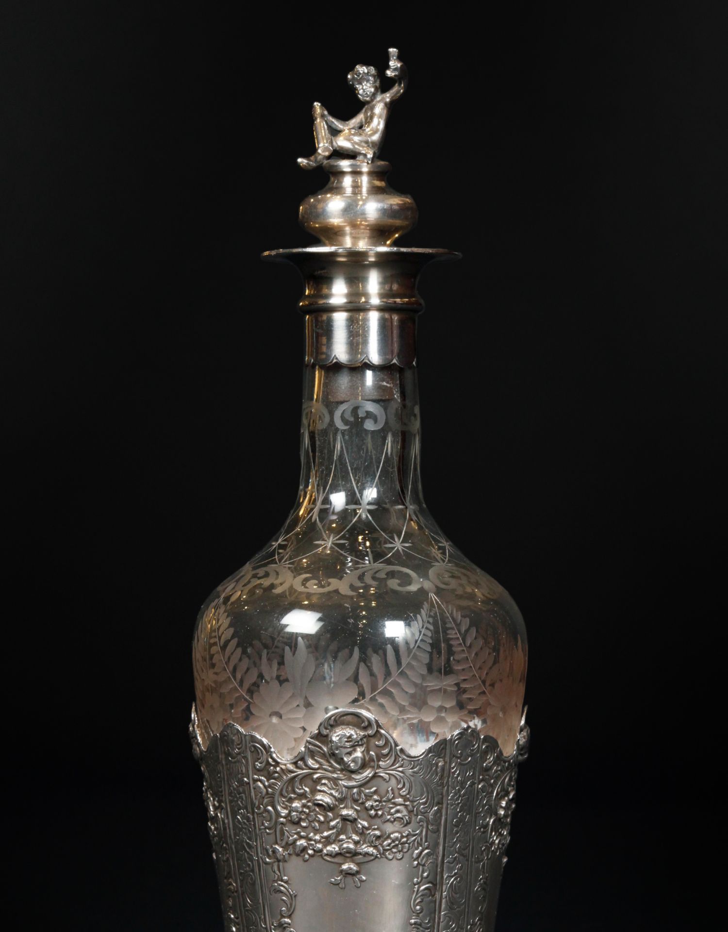 独角鹿西洋古董欧洲纯银精雕花园雅宴主题嵌刻花水晶酒具套装