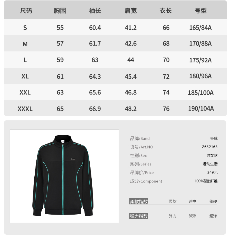多威新款上衣透气保暖运动休闲男女拉链开衫外套2652163