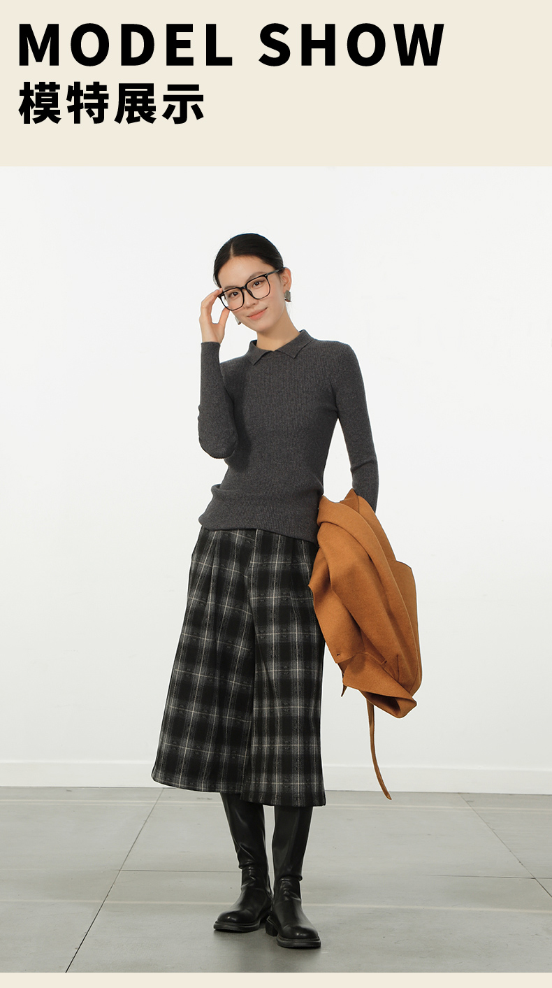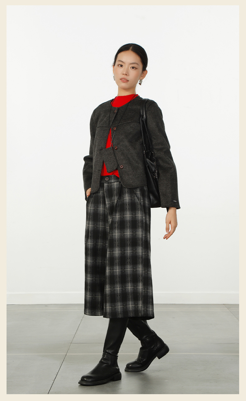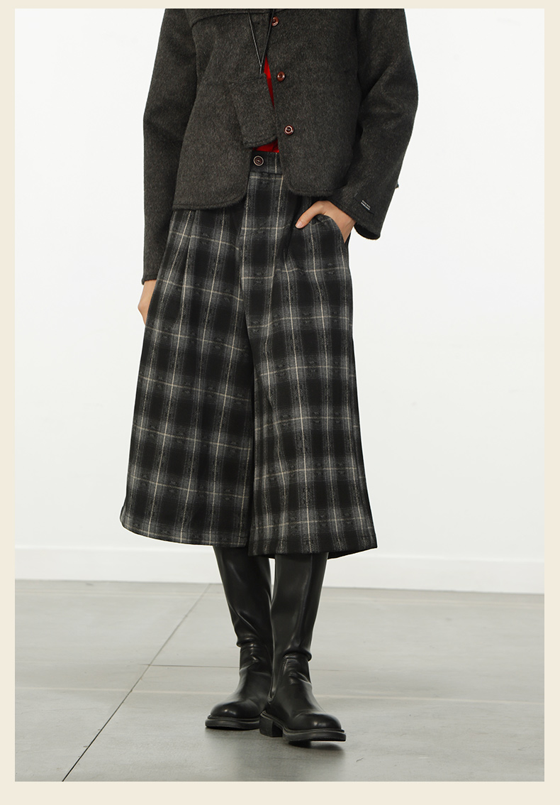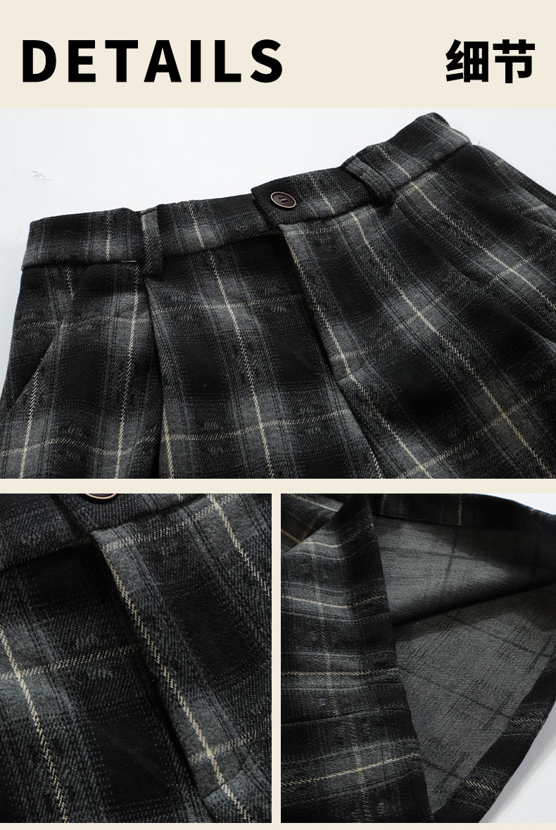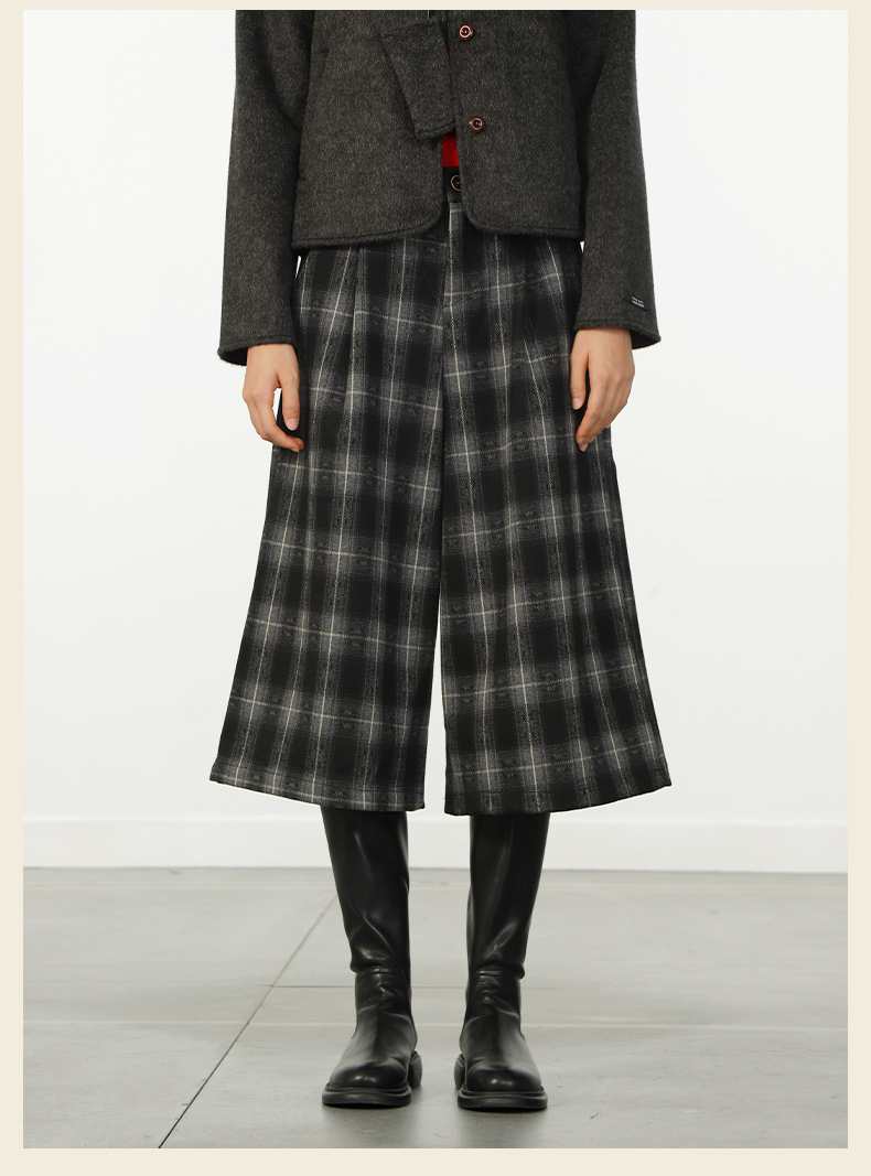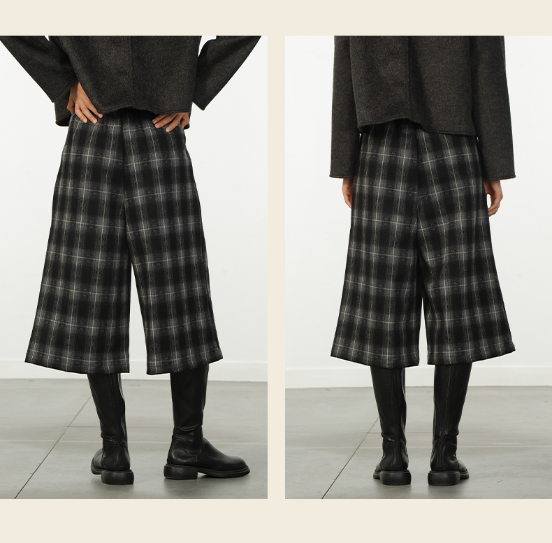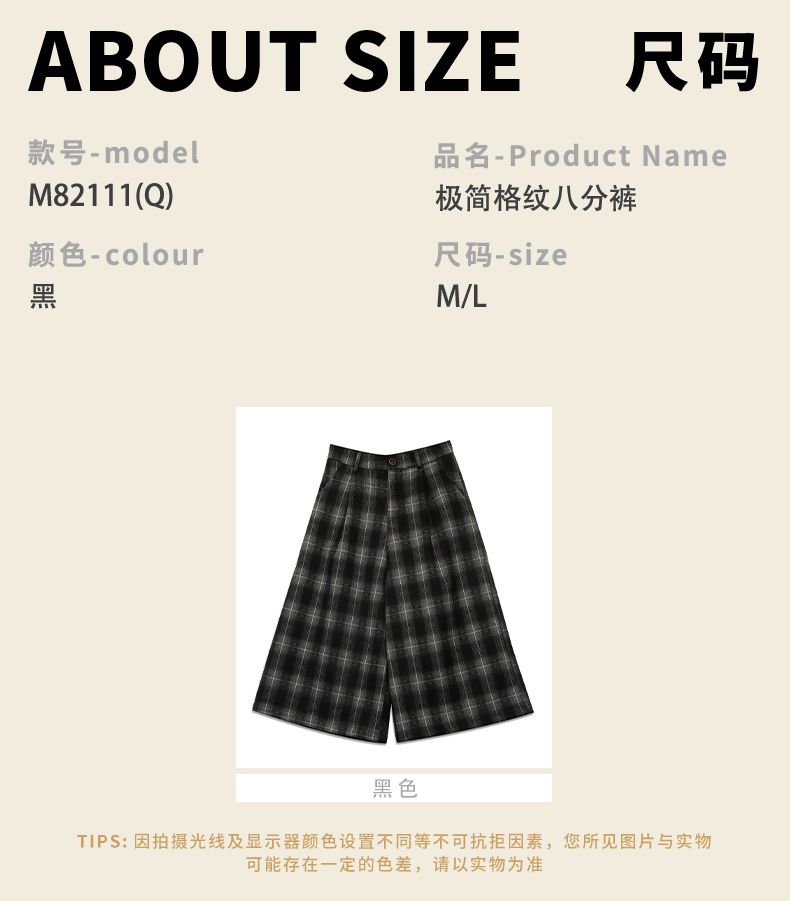 极简复古撞色格纹八分裤阔腿裤纪念日百货门店同款166493917