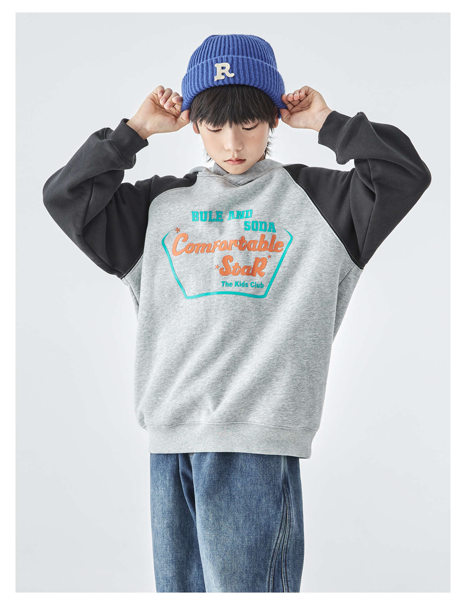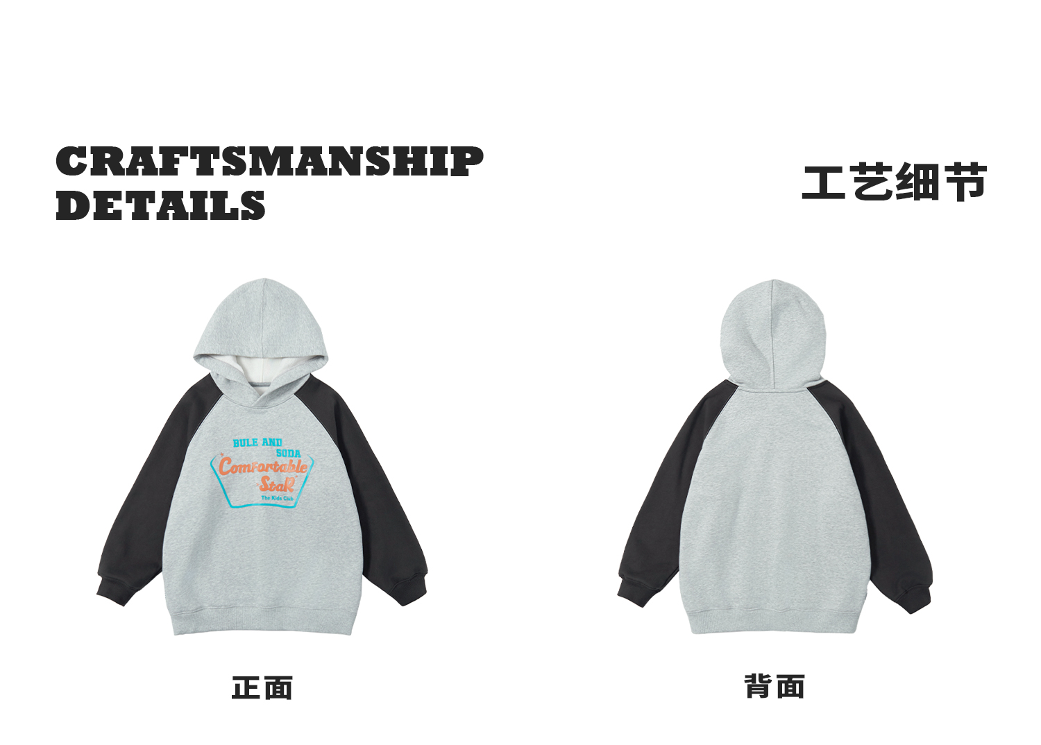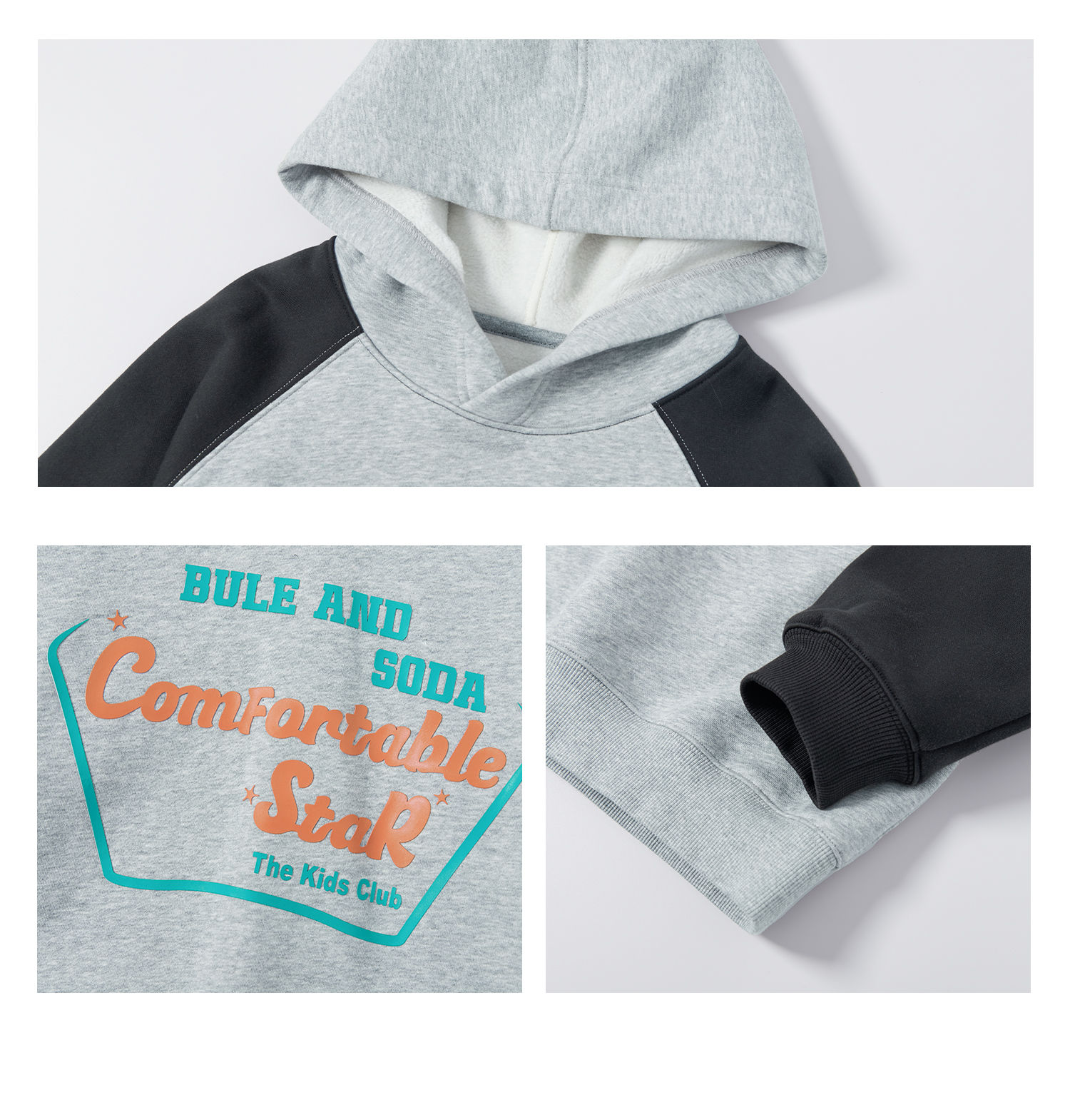 蓝汽水2025年冬季新款亲子中大童撞色连帽卫衣恒温抗静电复古外套