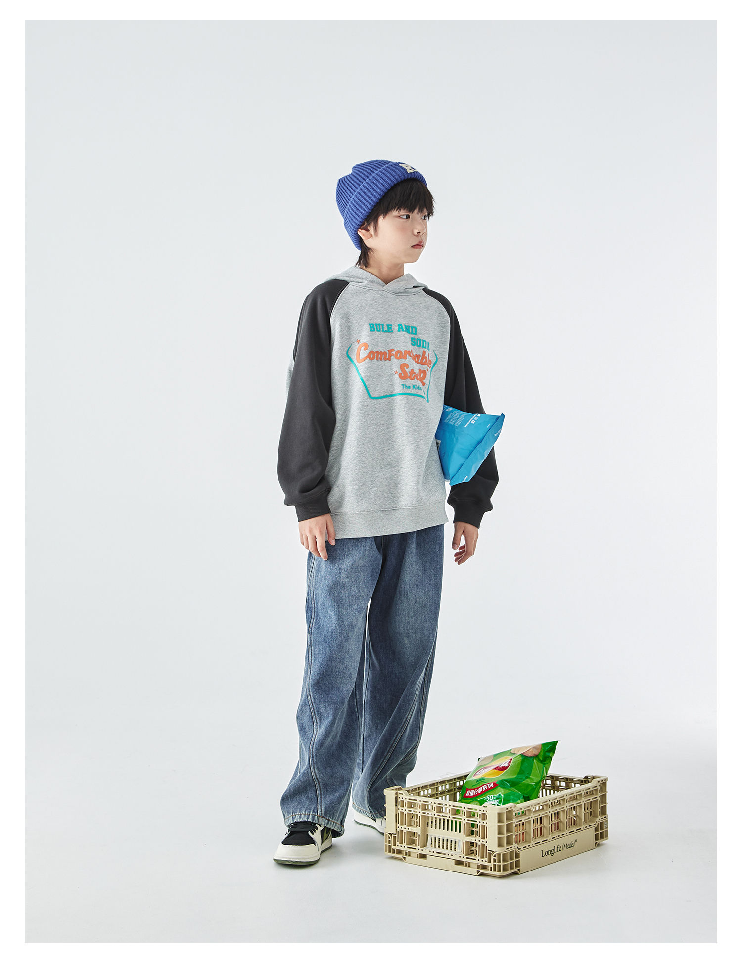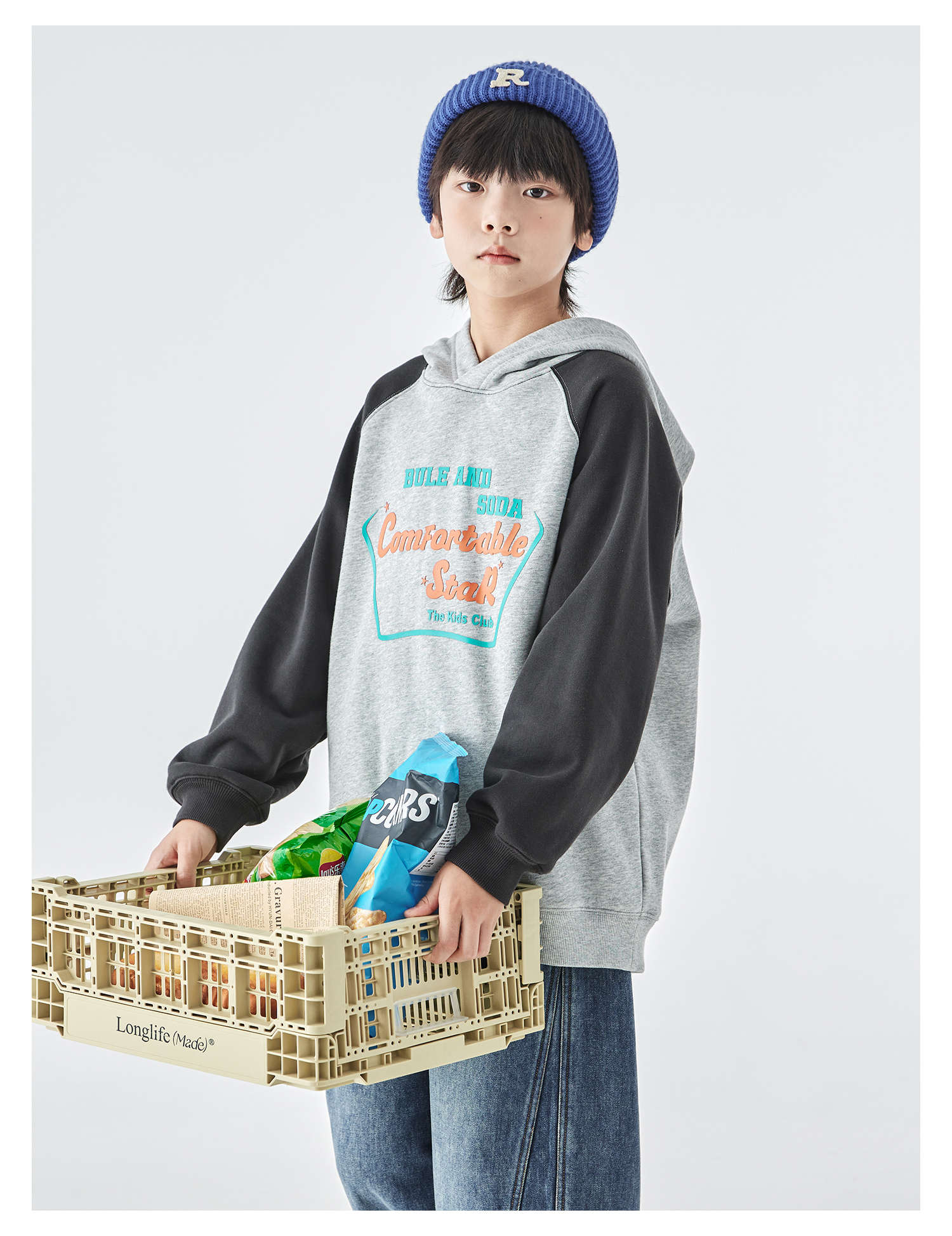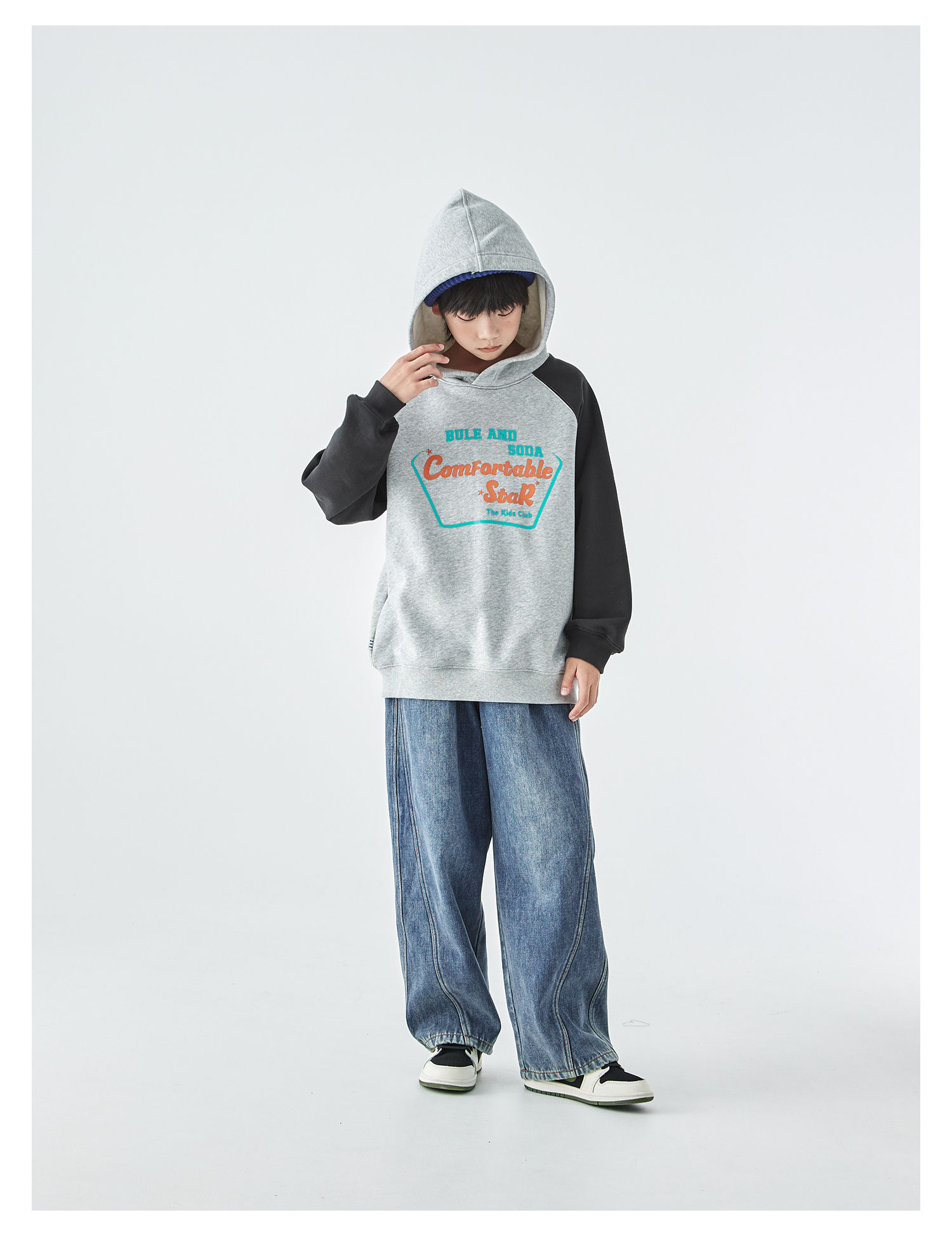蓝汽水2025年冬季新款亲子中大童撞色连帽卫衣恒温抗静电复古外套