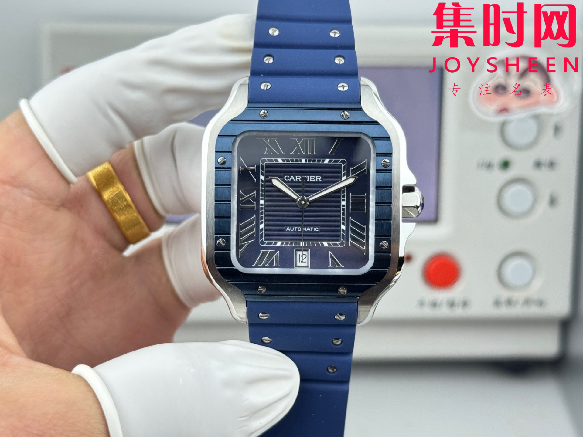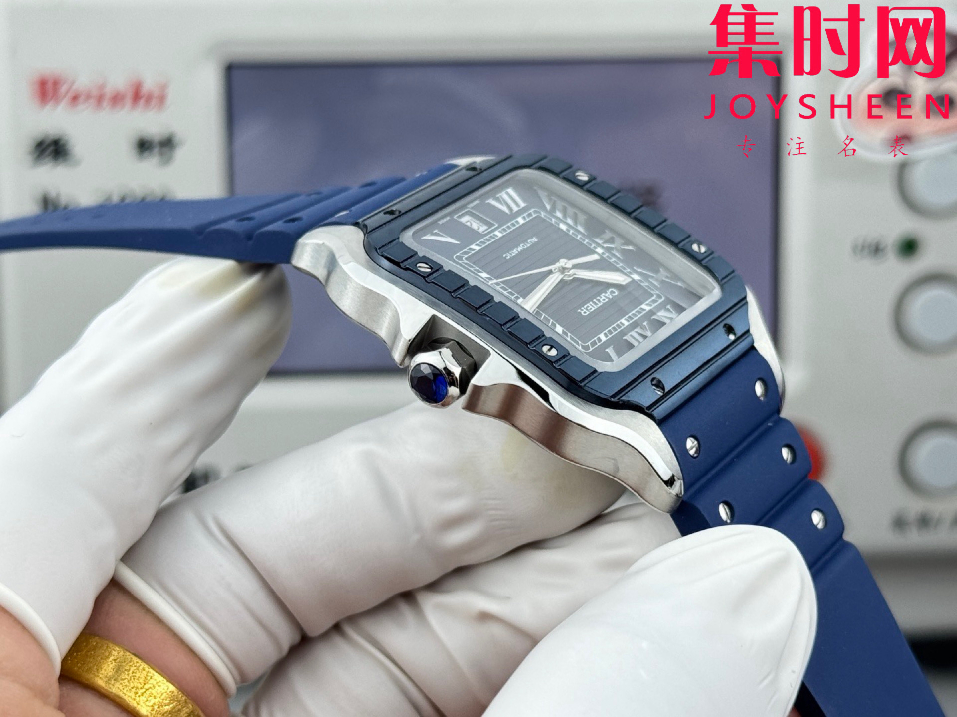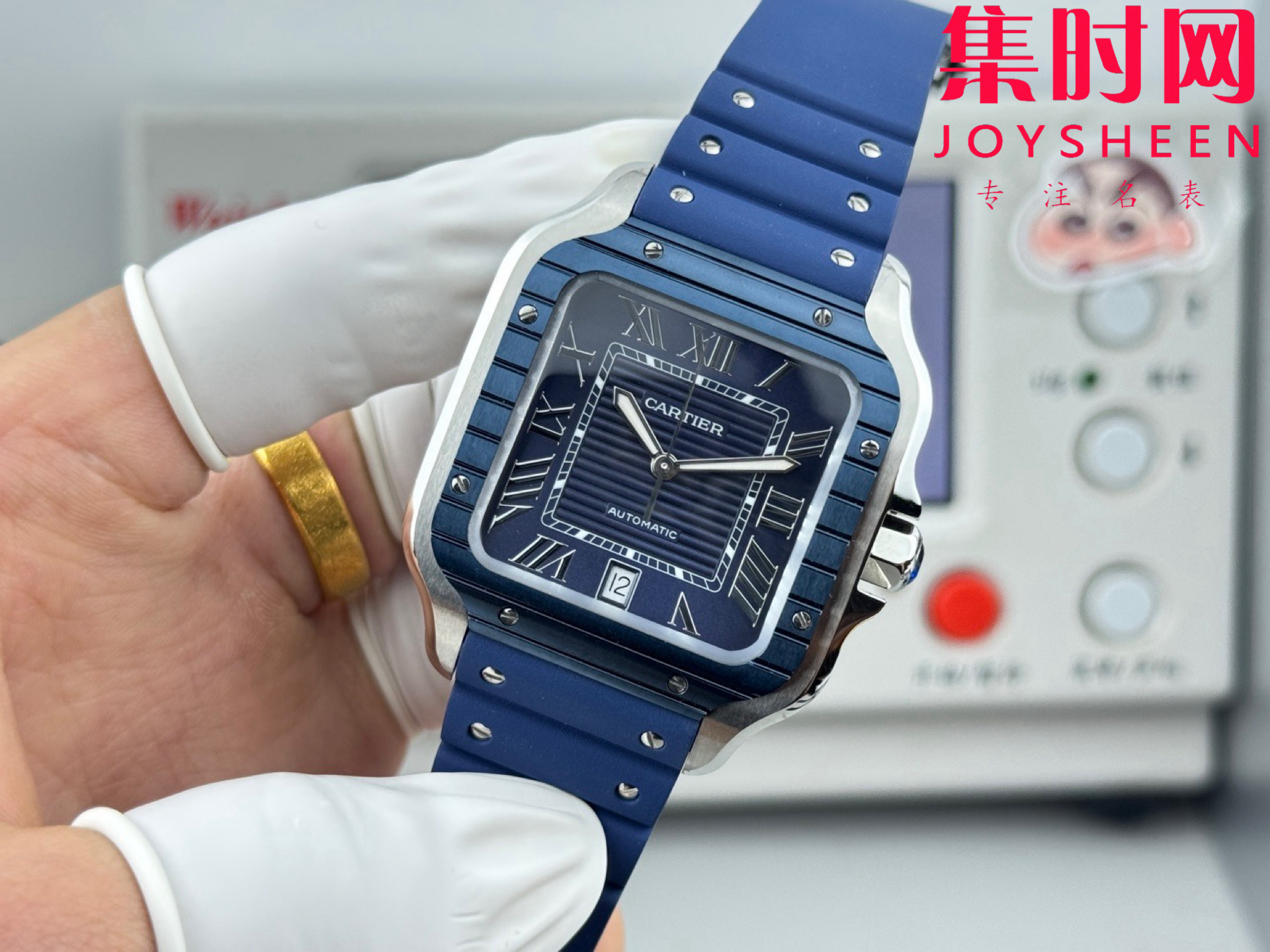 GF卡地亚山度士系列 山度士大号 间蓝方形男士腕表 绝对是绕不开的经典 表径39.8mm,舒适感很不错。从细节上看,表冠镶有蓝色合成多切面尖晶石,增添了许多精致感。6点钟还设置了日期显示窗口。采用进口9015改Cal.1847 MC自动上链机械机芯,在稳定性和日常佩戴的可靠性上没有问题。防水达到100米。总的来说,这款山度士更适合那些既看重品牌调性,又希望腕表能兼顾实用性的用户。