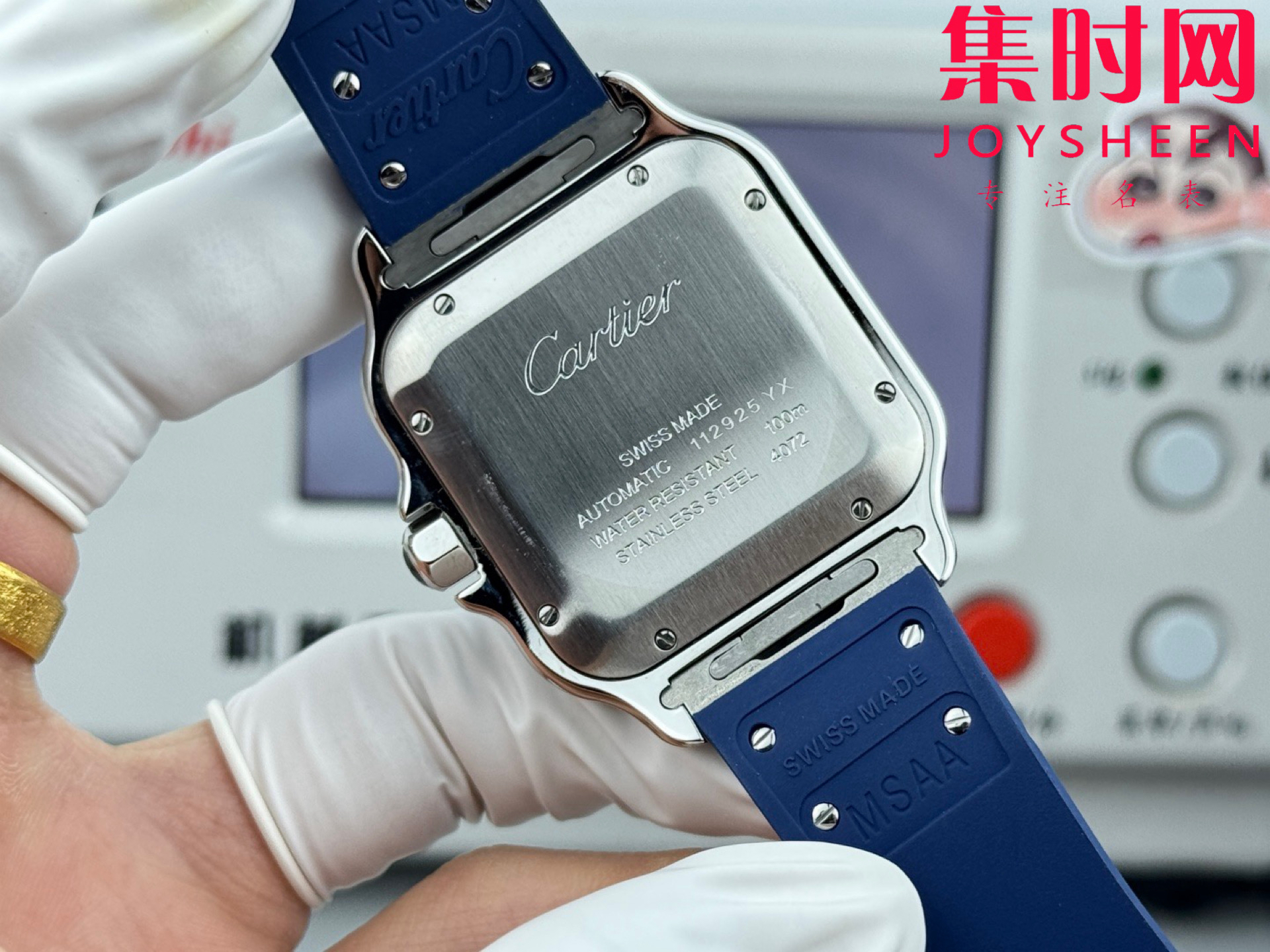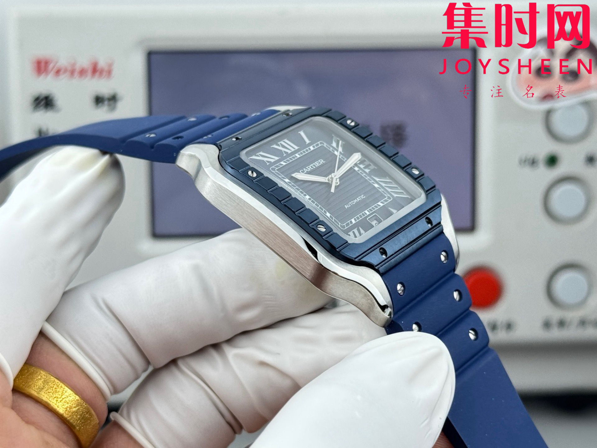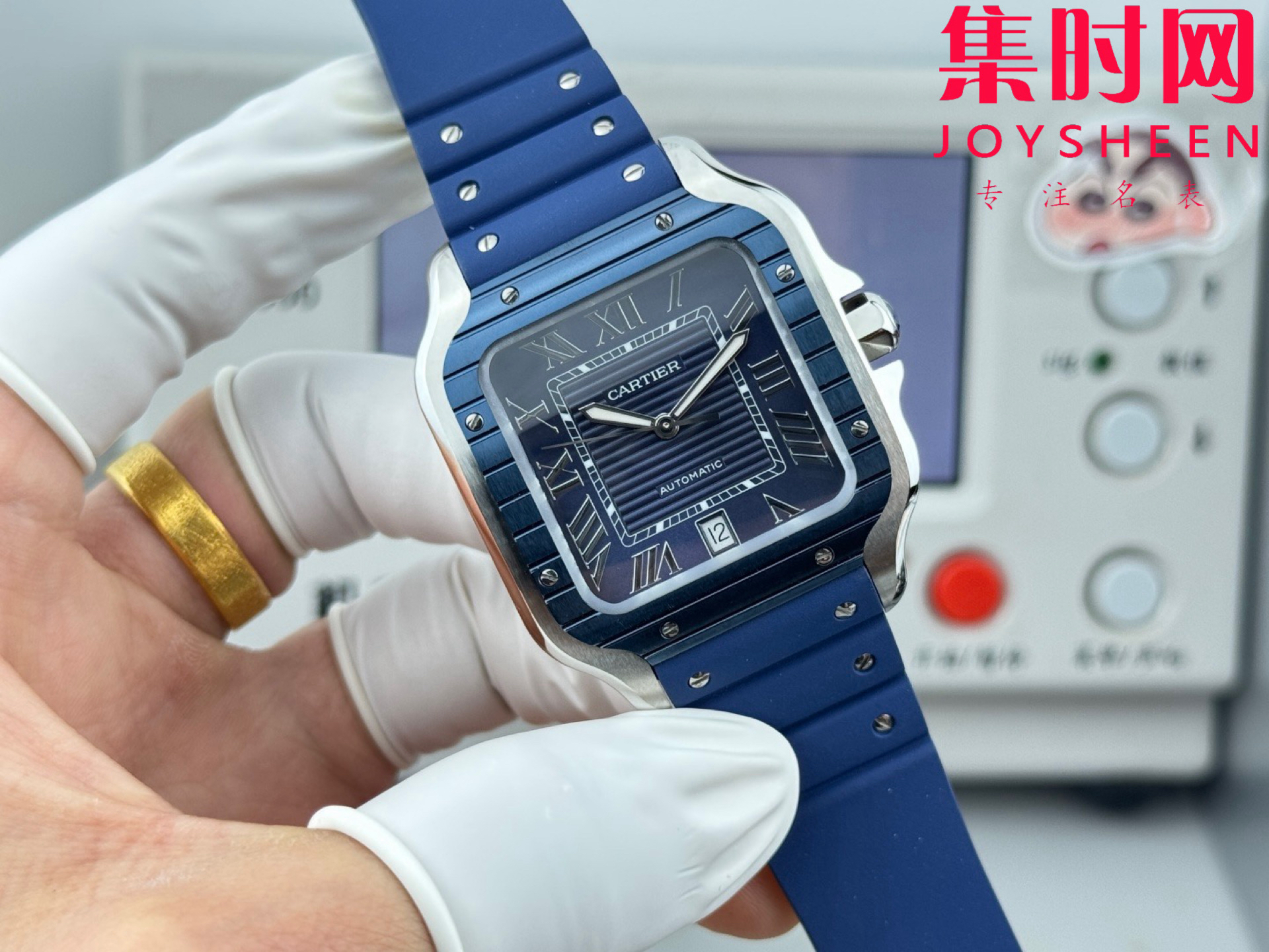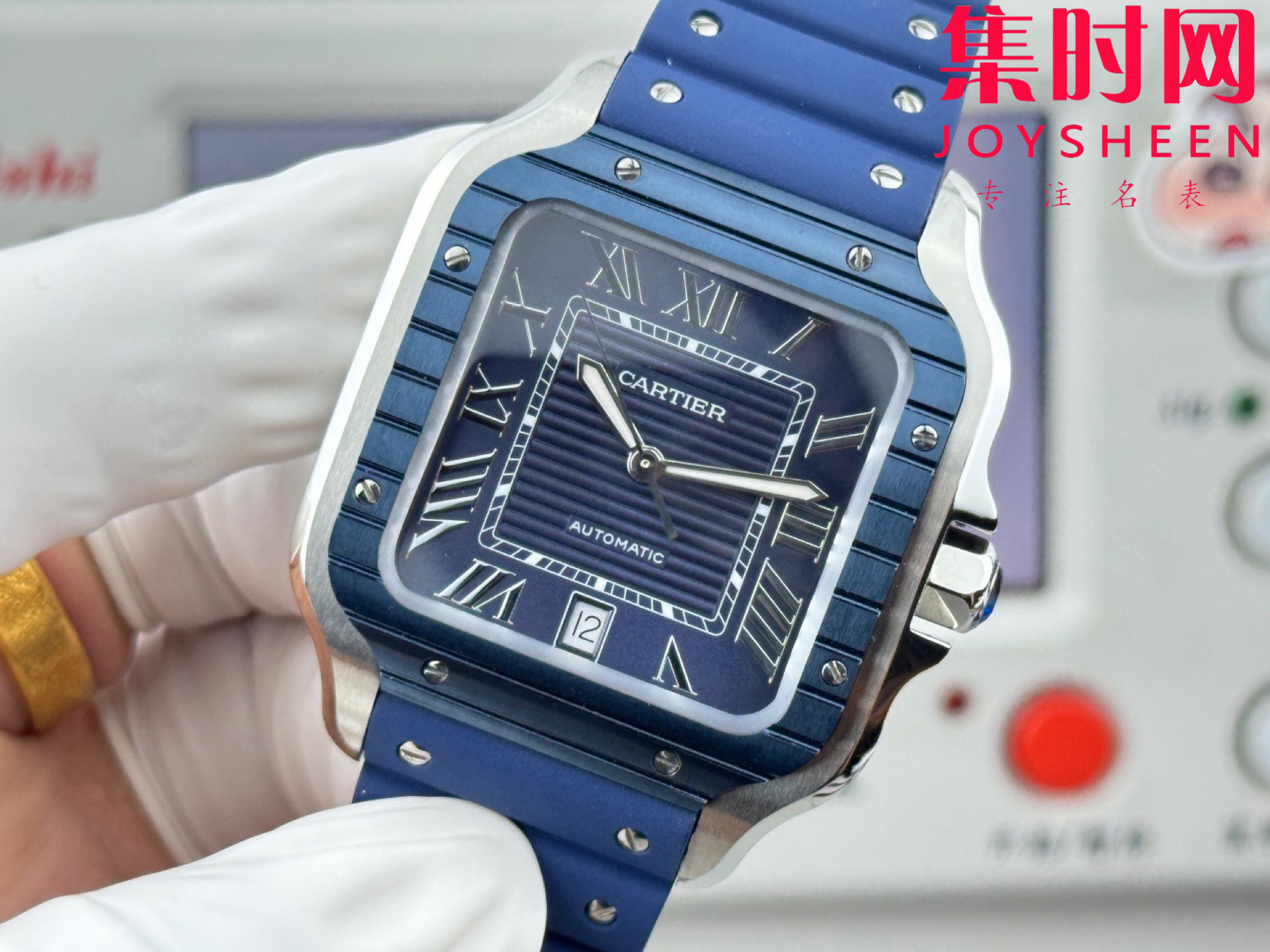 GF卡地亚山度士系列 山度士大号 间蓝方形男士腕表 绝对是绕不开的经典 表径39.8mm,舒适感很不错。从细节上看,表冠镶有蓝色合成多切面尖晶石,增添了许多精致感。6点钟还设置了日期显示窗口。采用进口9015改Cal.1847 MC自动上链机械机芯,在稳定性和日常佩戴的可靠性上没有问题。防水达到100米。总的来说,这款山度士更适合那些既看重品牌调性,又希望腕表能兼顾实用性的用户。