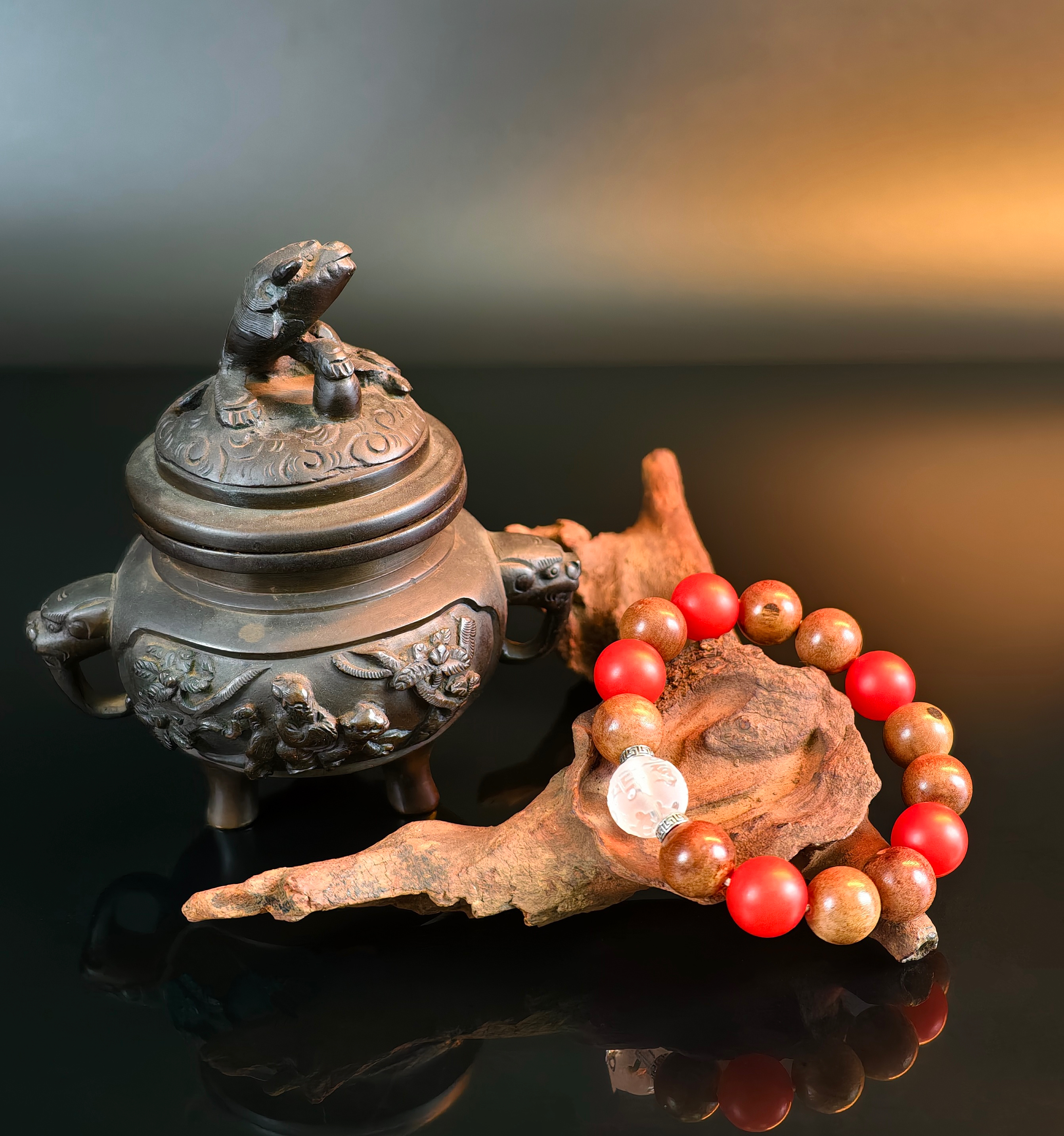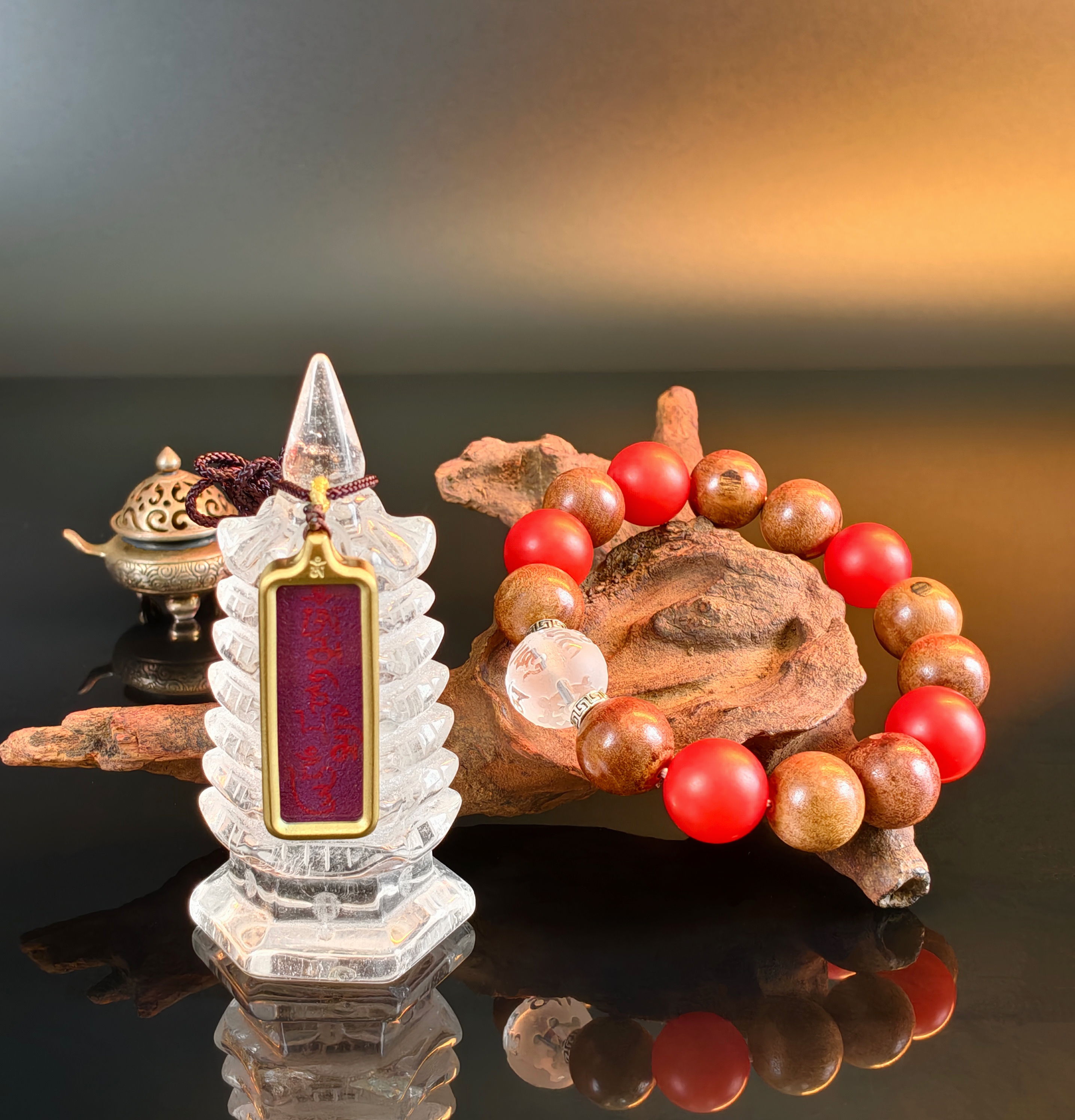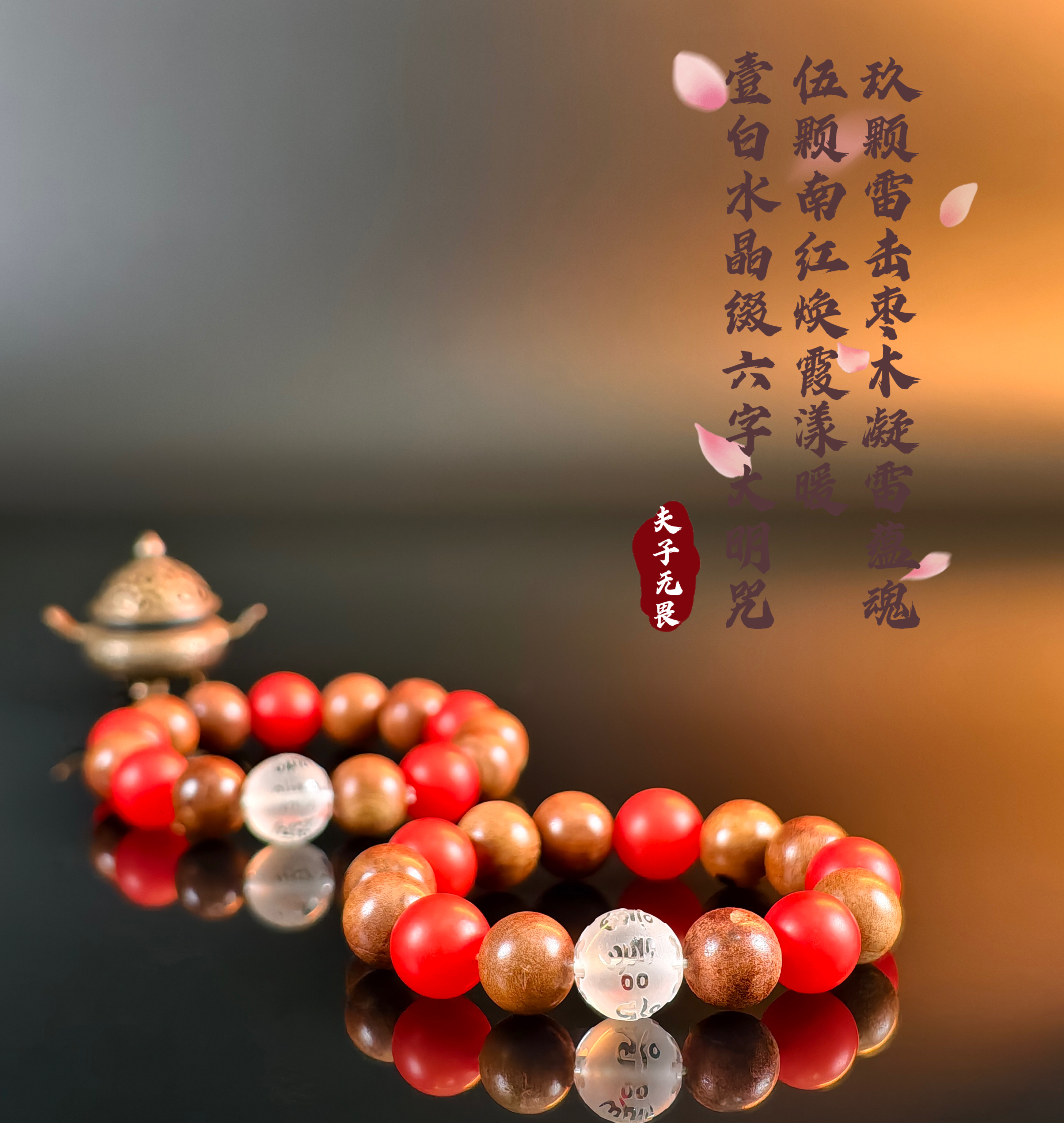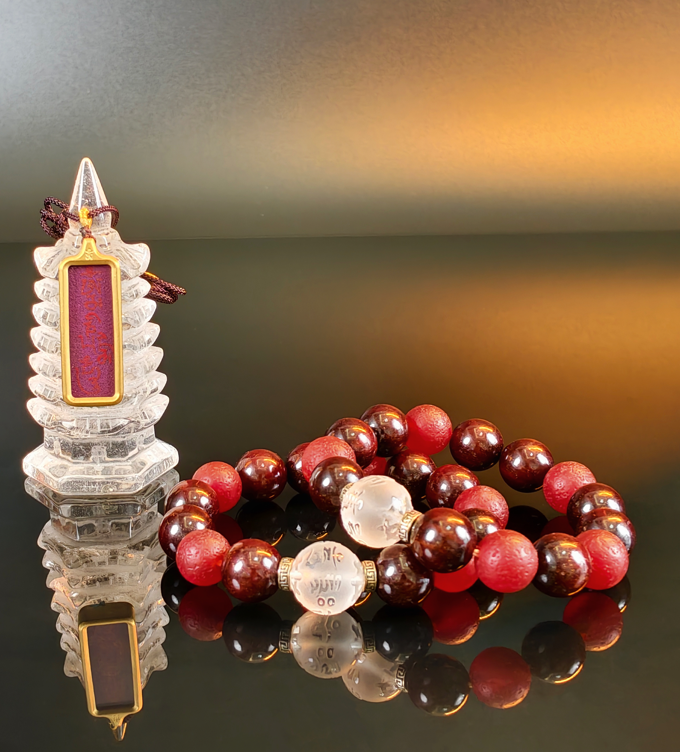 第三款:9颗千年雷击枣木配5颗南红+一颗白水晶主珠