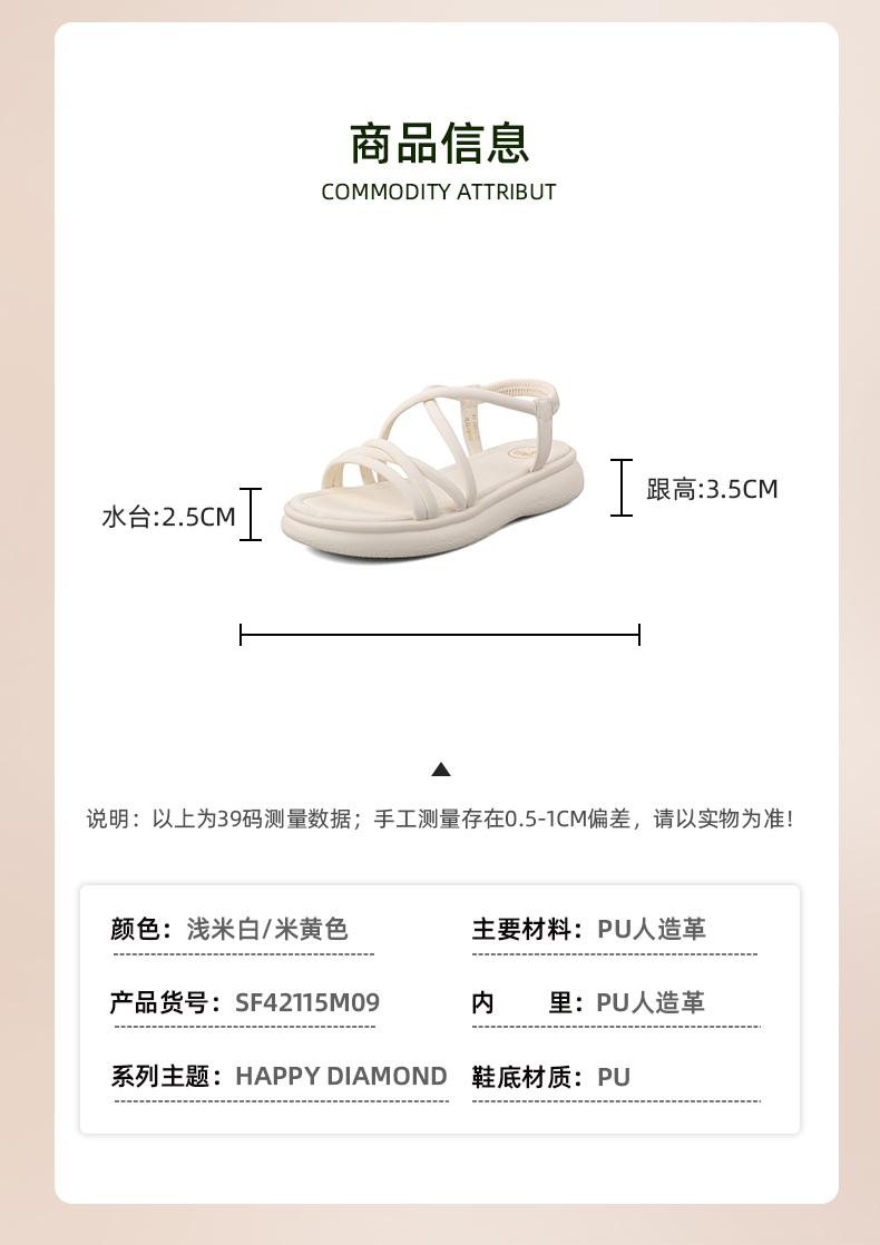 Safiya/索菲娅2024年露趾厚底外穿轻便单鞋休闲松糕凉鞋女 SF42115409