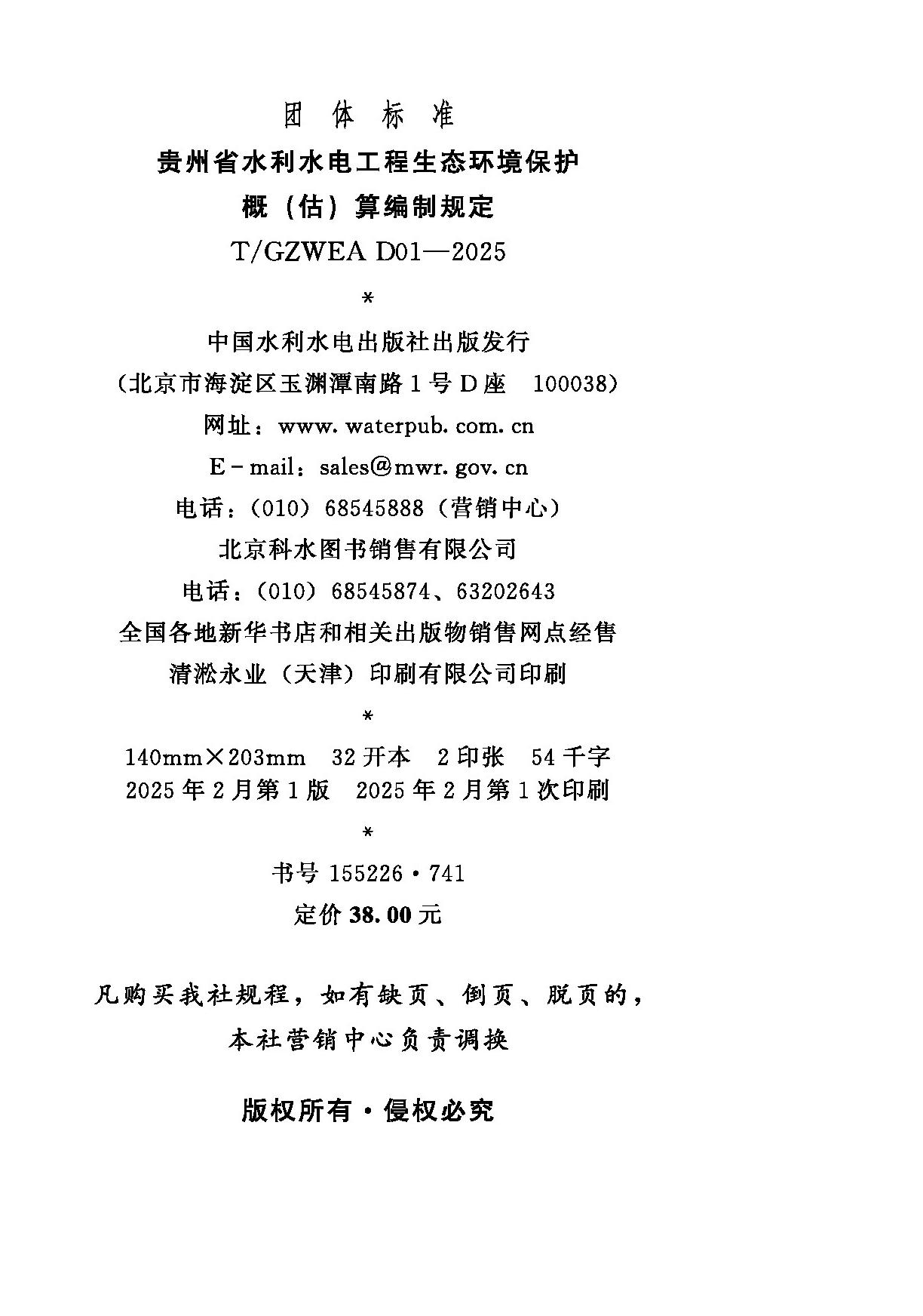 T/GZWEA D01-2025贵州省水利水电工程生态环境保护概(估)算编制规定(团体标准) 155226·741
