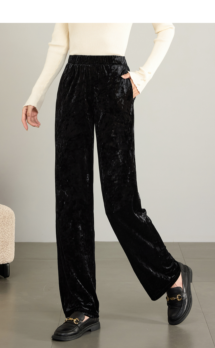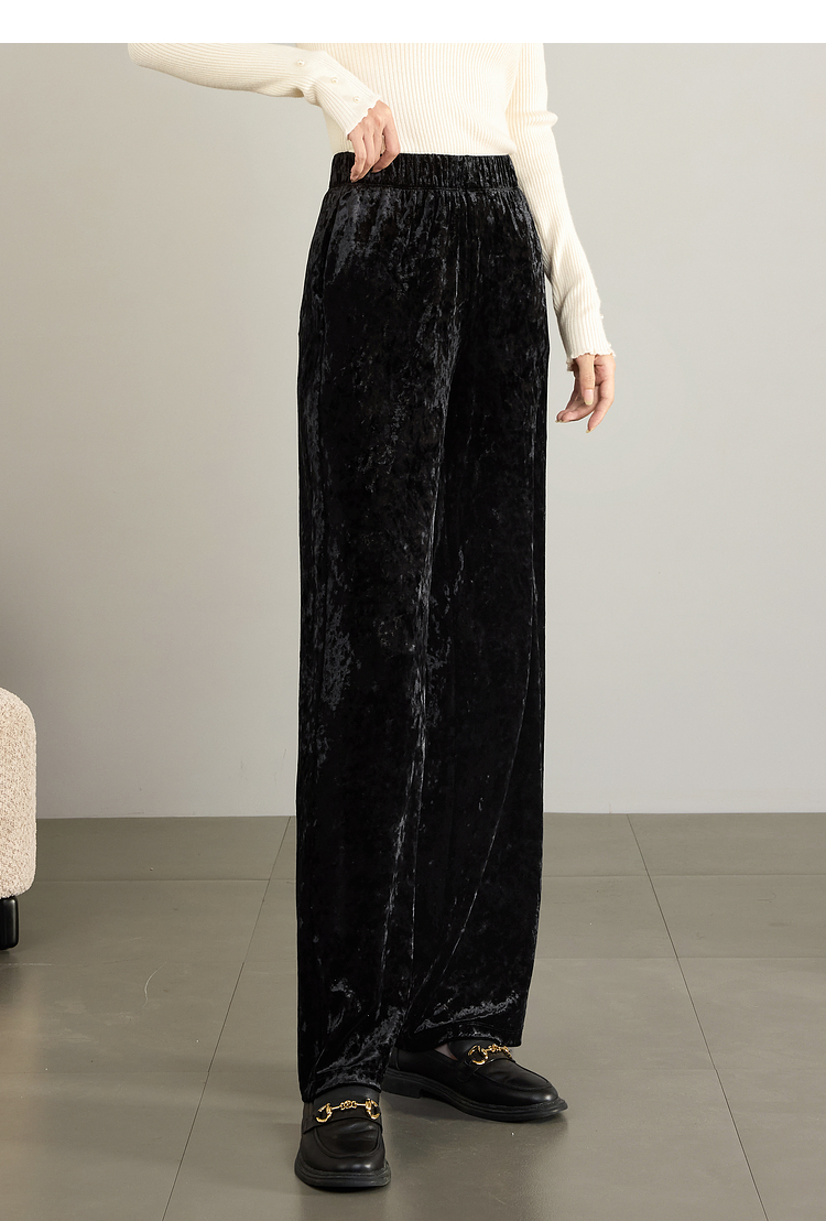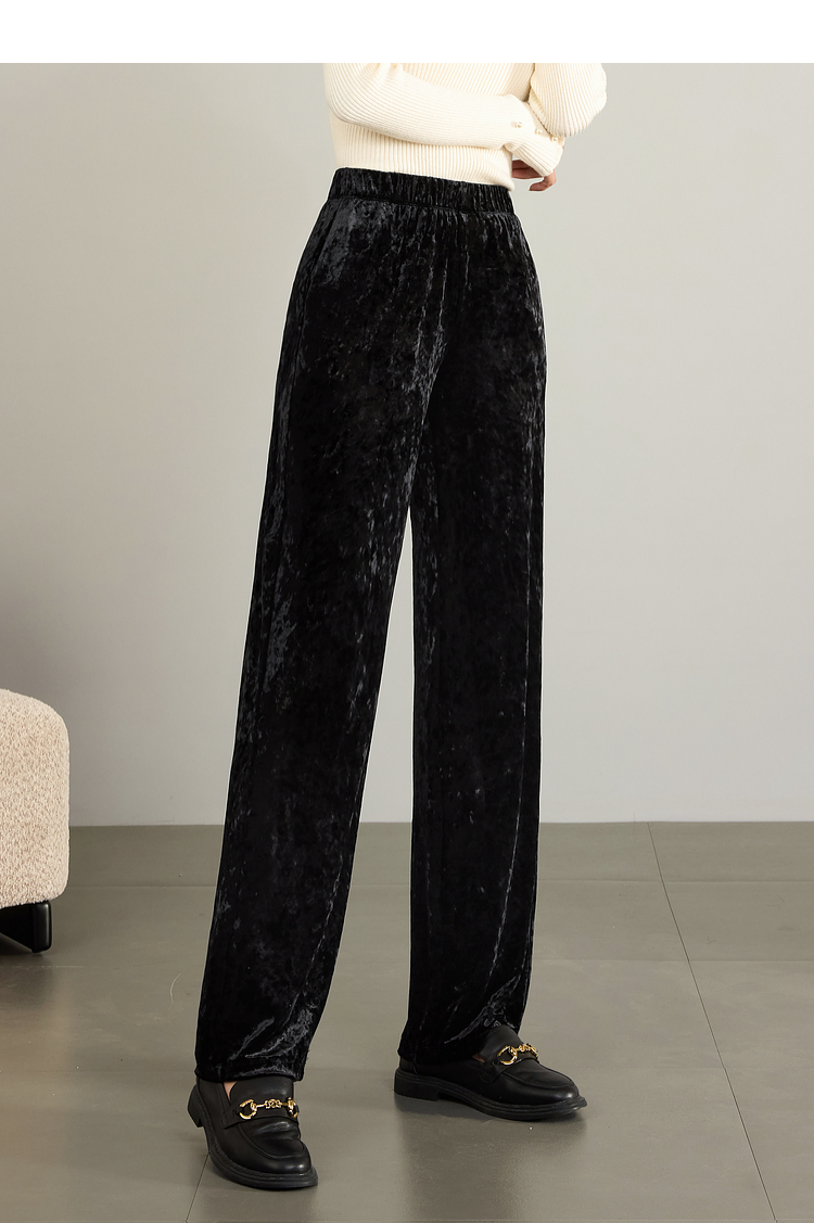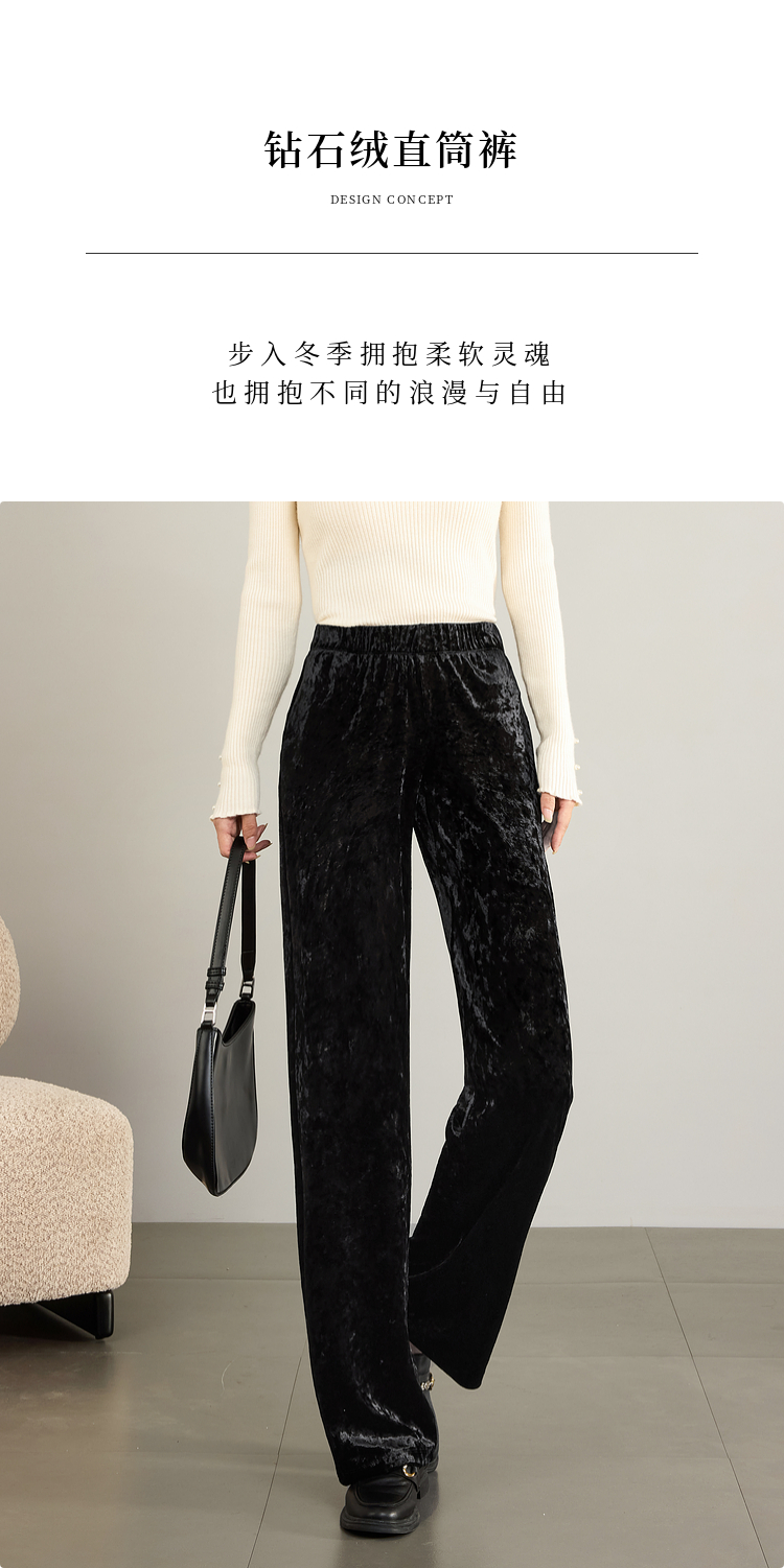 【年终特卖】熙世界【钻石绒裤】奢感丝绒直筒裤秋冬垂感休闲宽松窄版阔腿裤