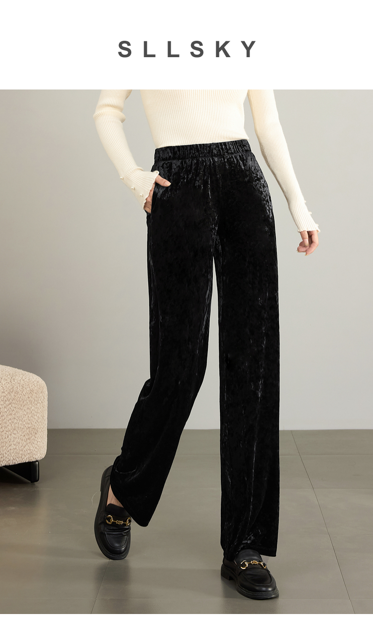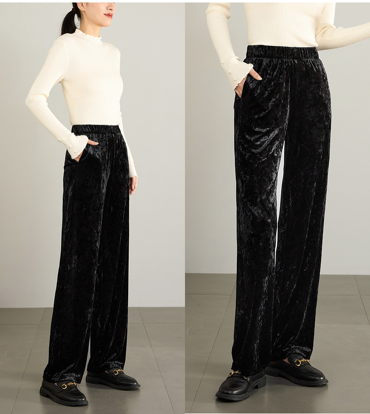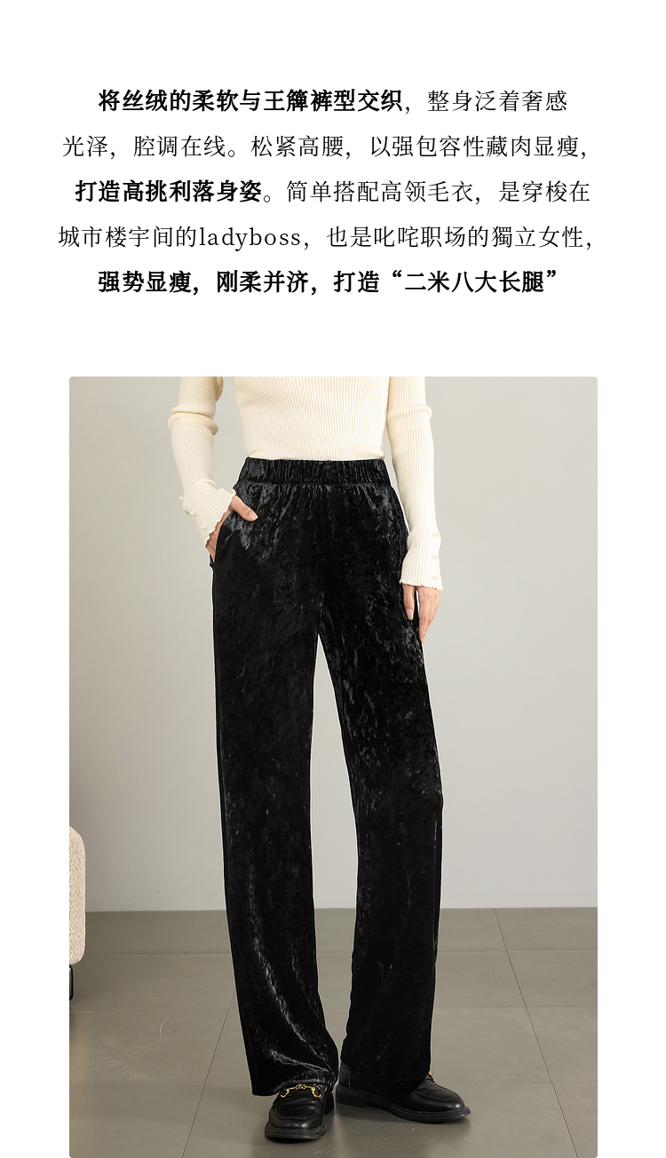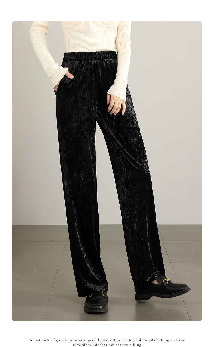 【年终特卖】熙世界【钻石绒裤】奢感丝绒直筒裤秋冬垂感休闲宽松窄版阔腿裤