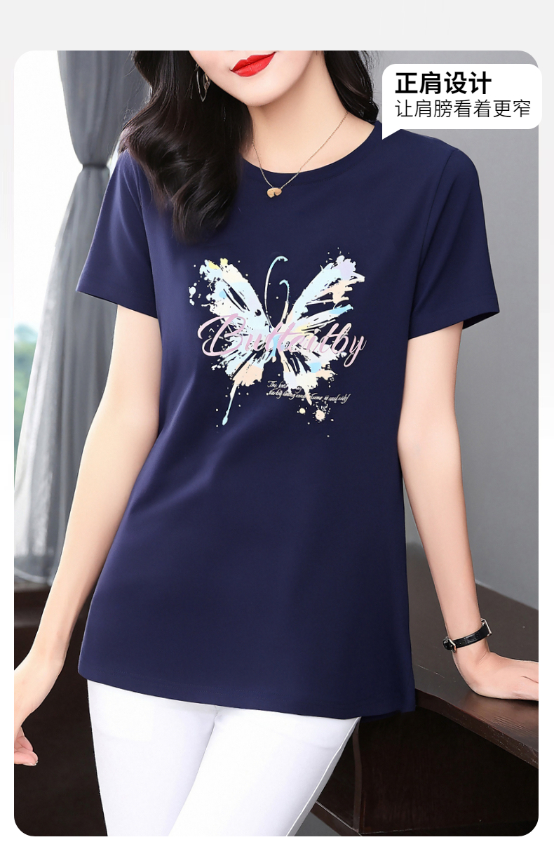 刺绣短袖t恤女2025新款夏季大码女装洋气正肩体恤中长款减龄上衣