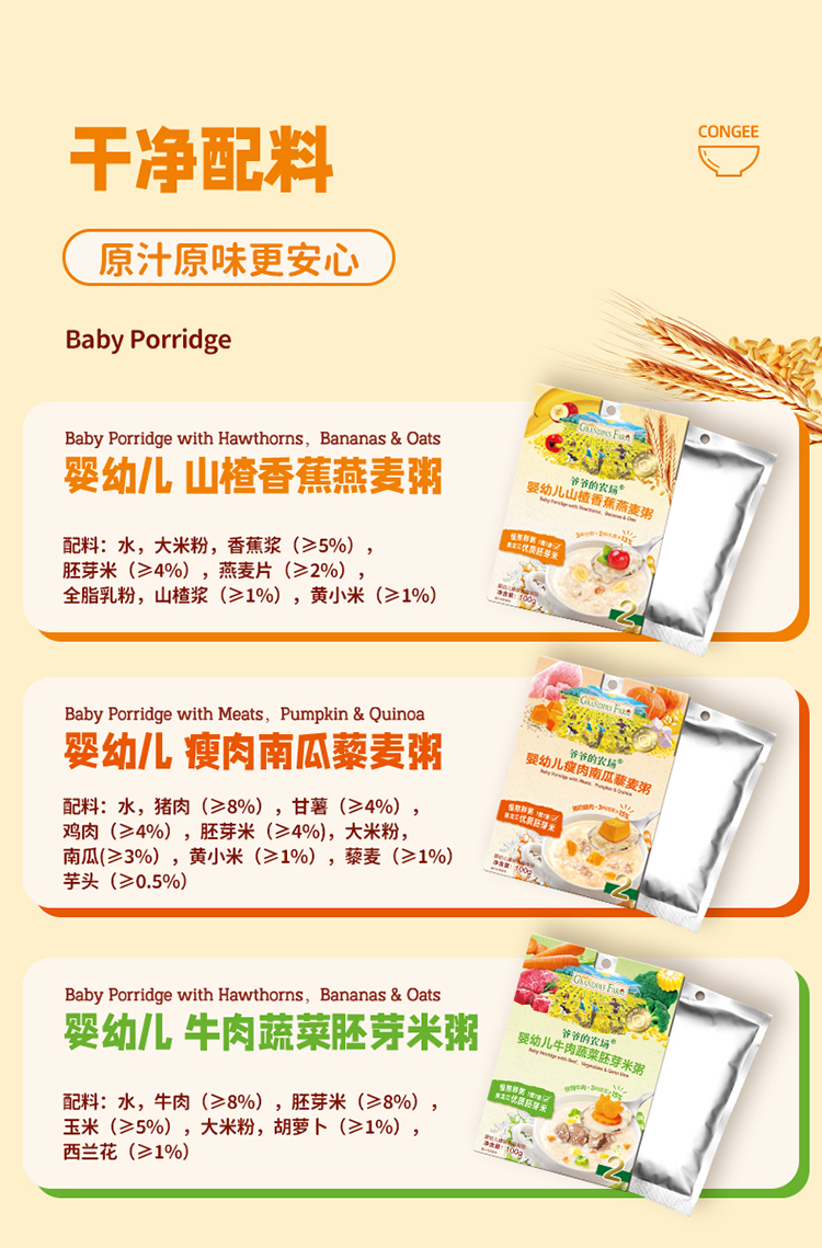 【89元到手5盒共26袋/件】爷爷的农场 儿童零食礼包2 牛肉蔬菜胚芽米粥100g+多莓果果桃桃梨原粒20g+牛乳棒50g+夹心海苔脆20g+小软饼干60g