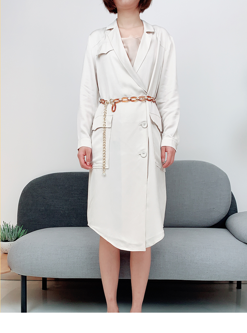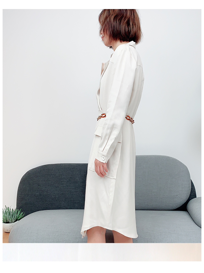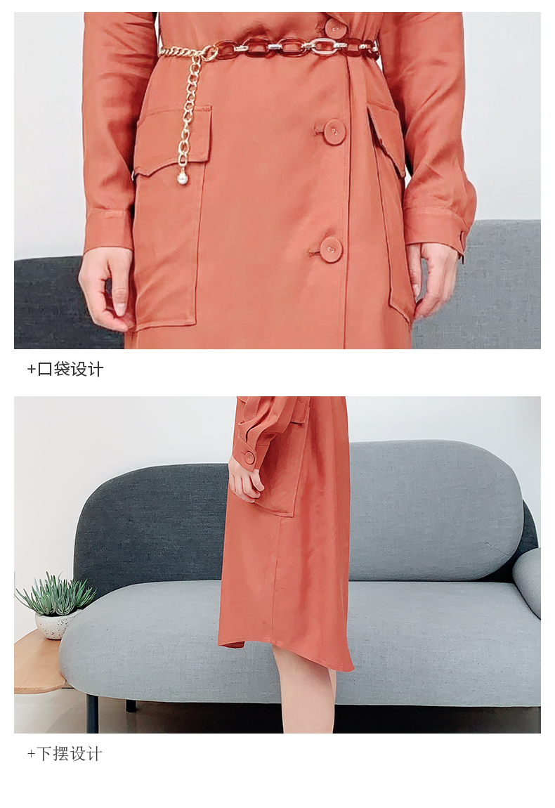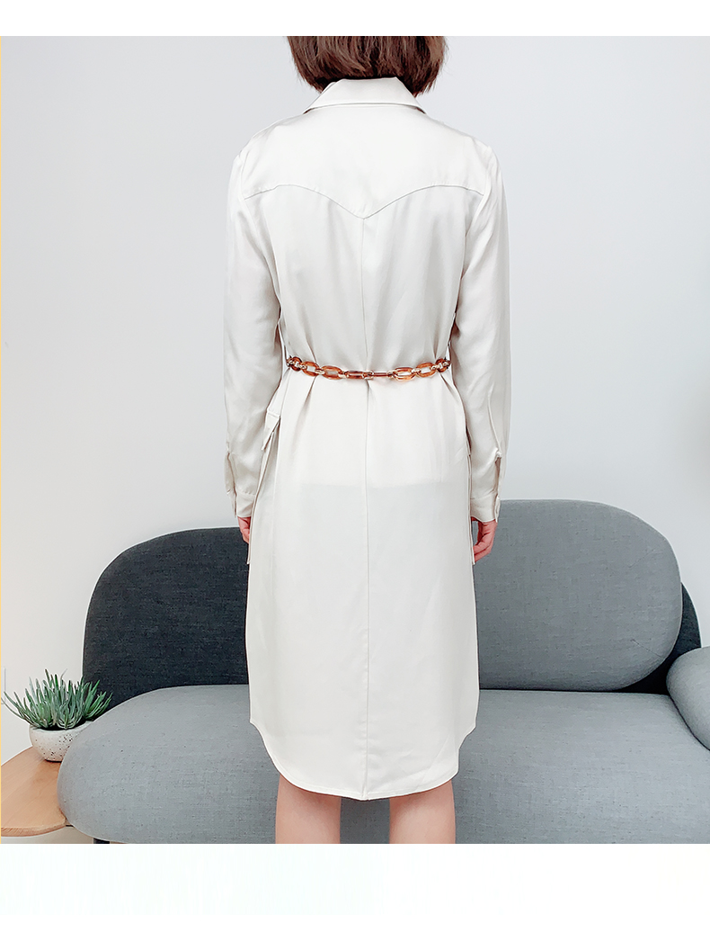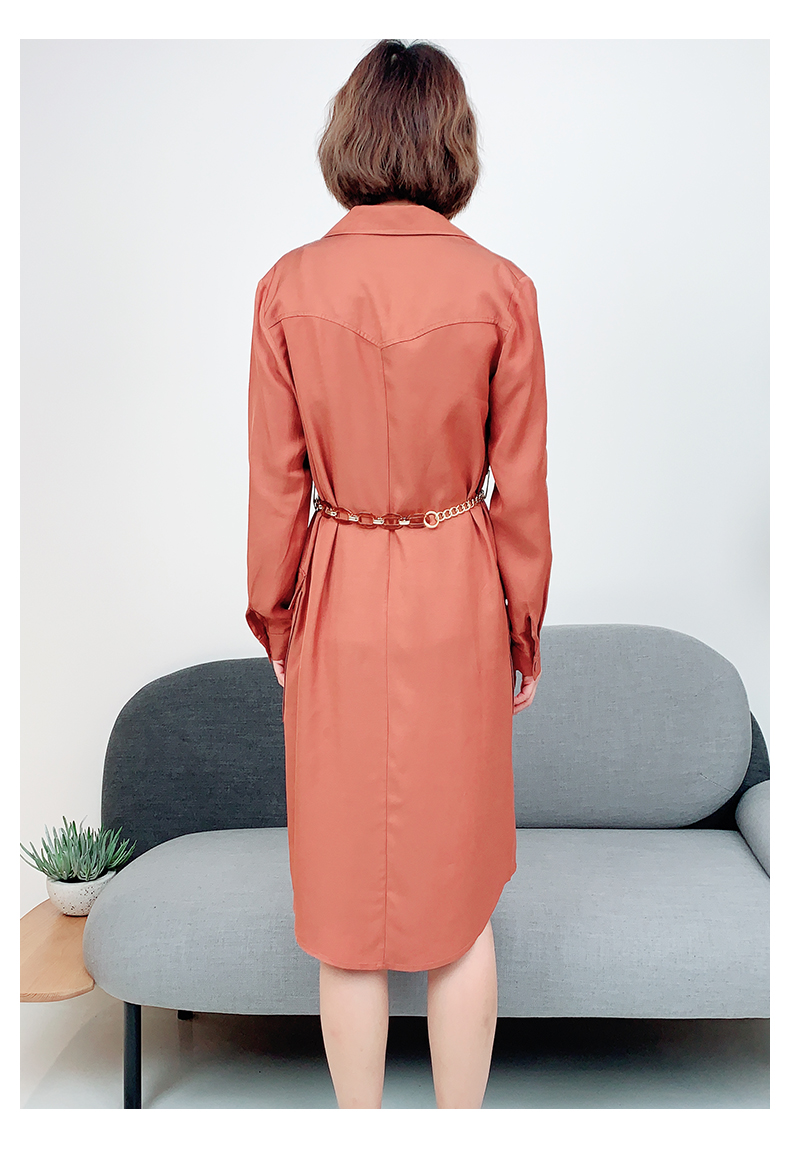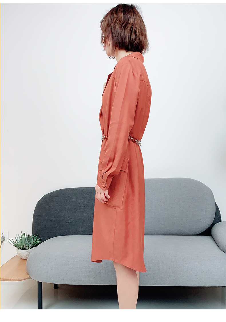 oldcolour纯色收腰显瘦中长款长袖连衣裙M12103316