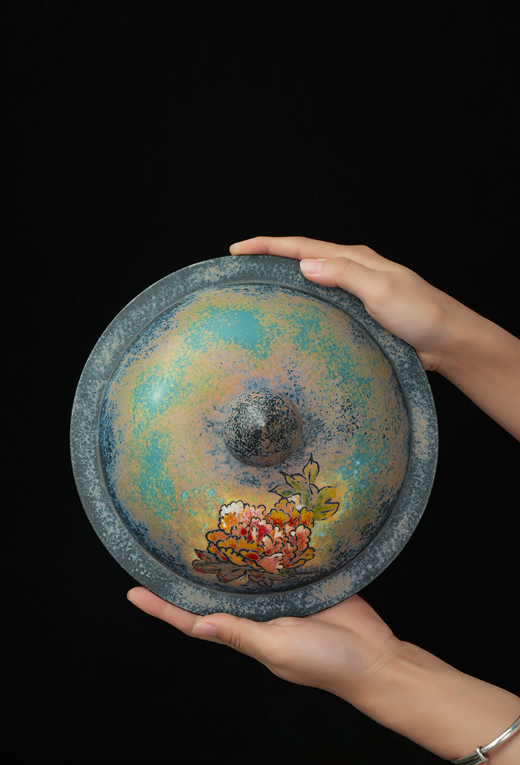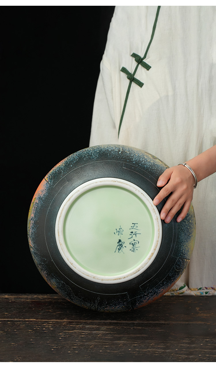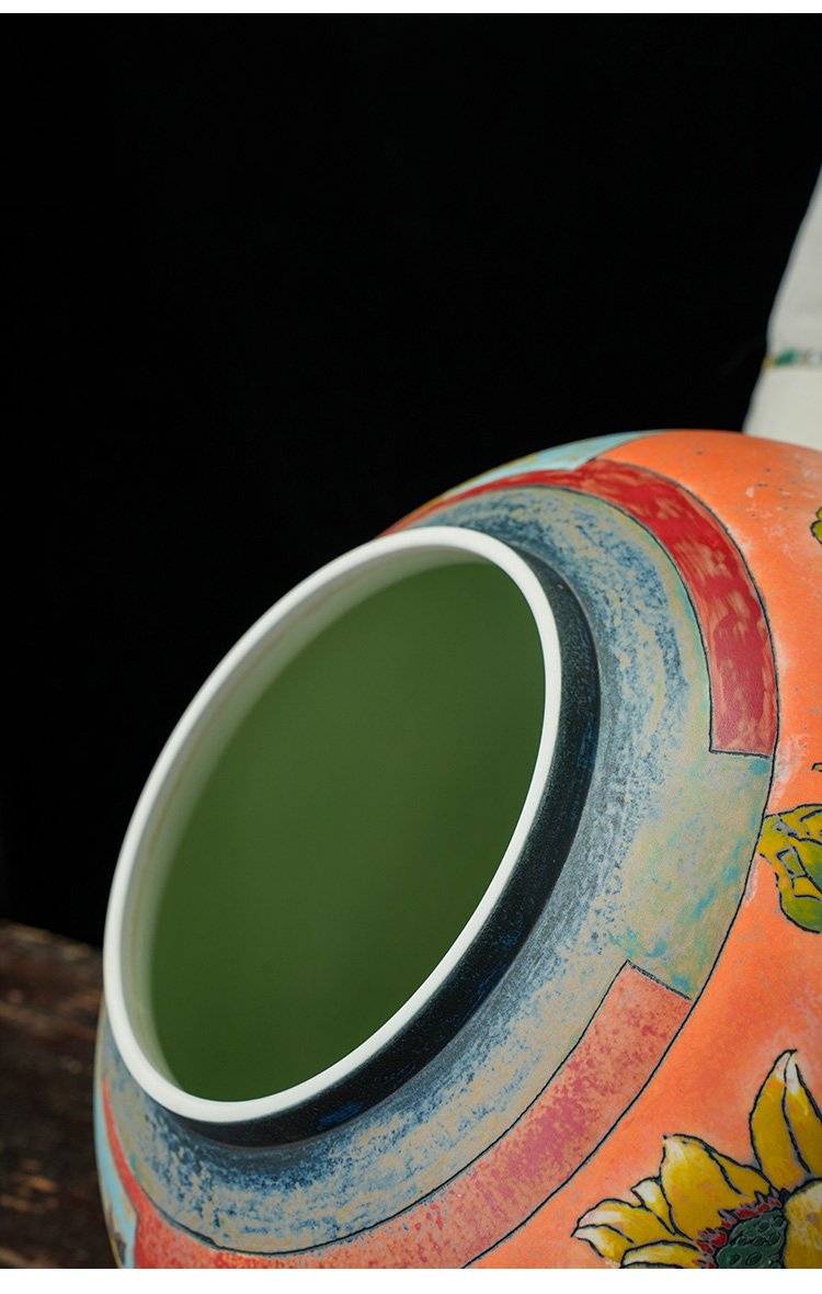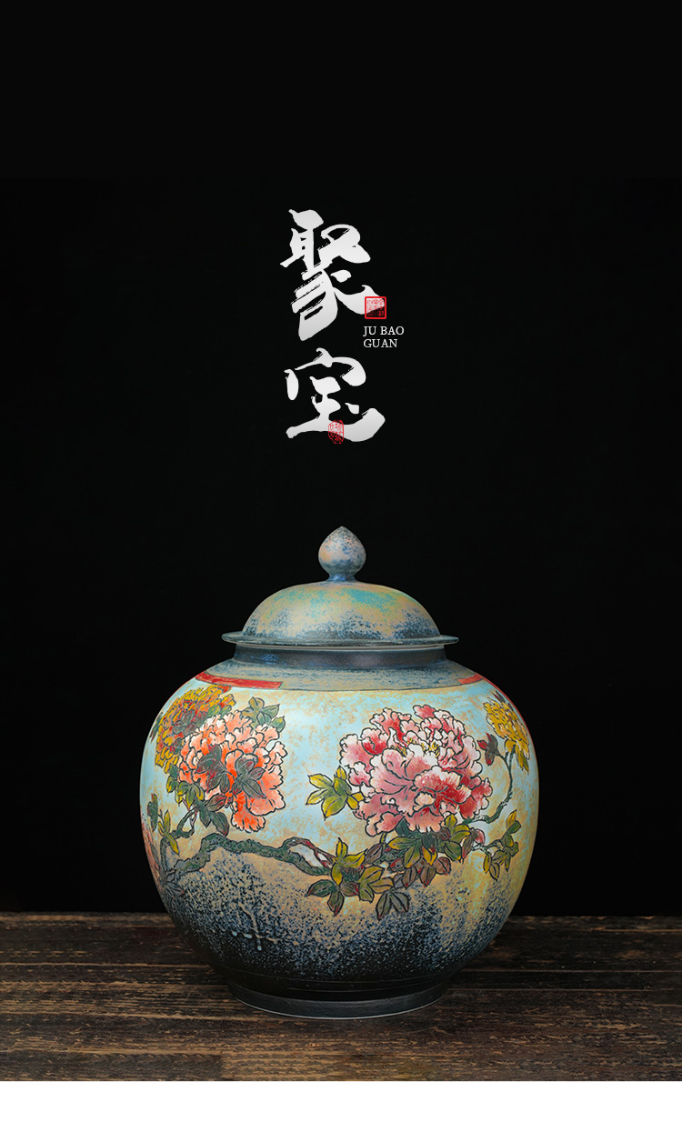 台湾陶艺大家 陈庆 聚宝罐 磨釉牡丹、荷花招财大摆件家用办公室风水罐客厅店铺大容量储存罐