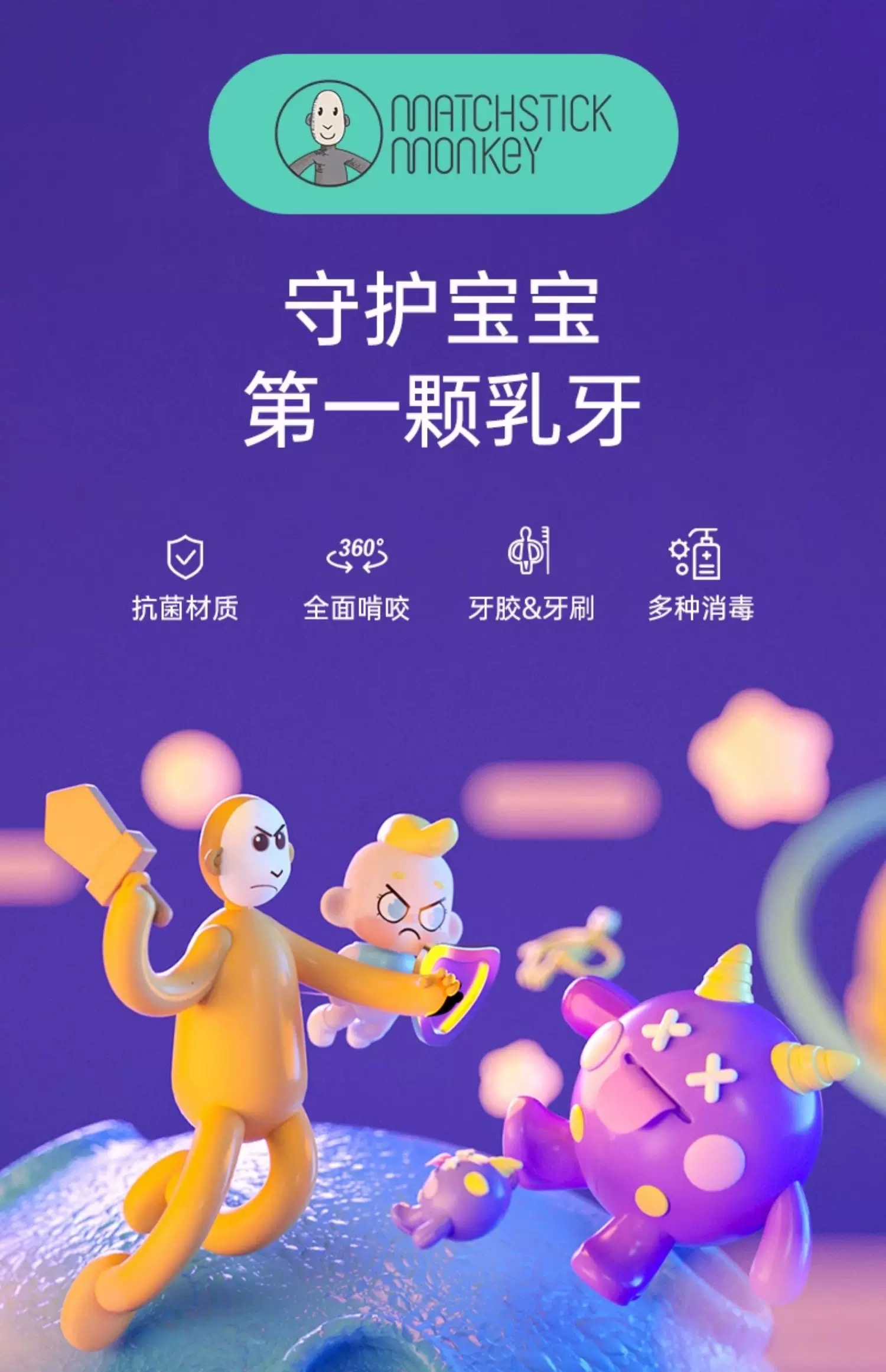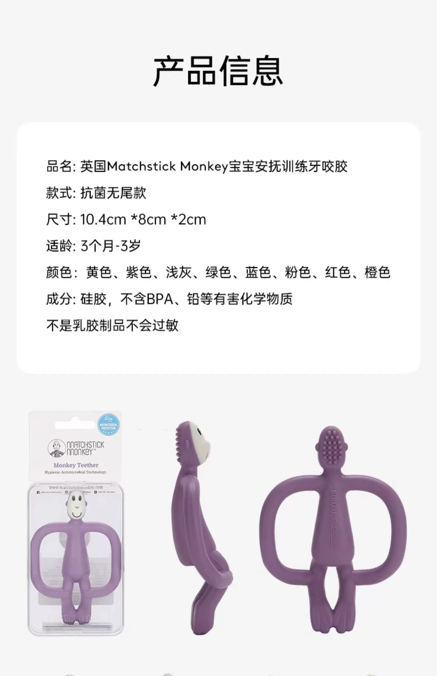 【保税仓】英国火柴猴牙胶婴儿磨牙棒3-6个月以上宝宝牙咬胶可水煮食用玩具