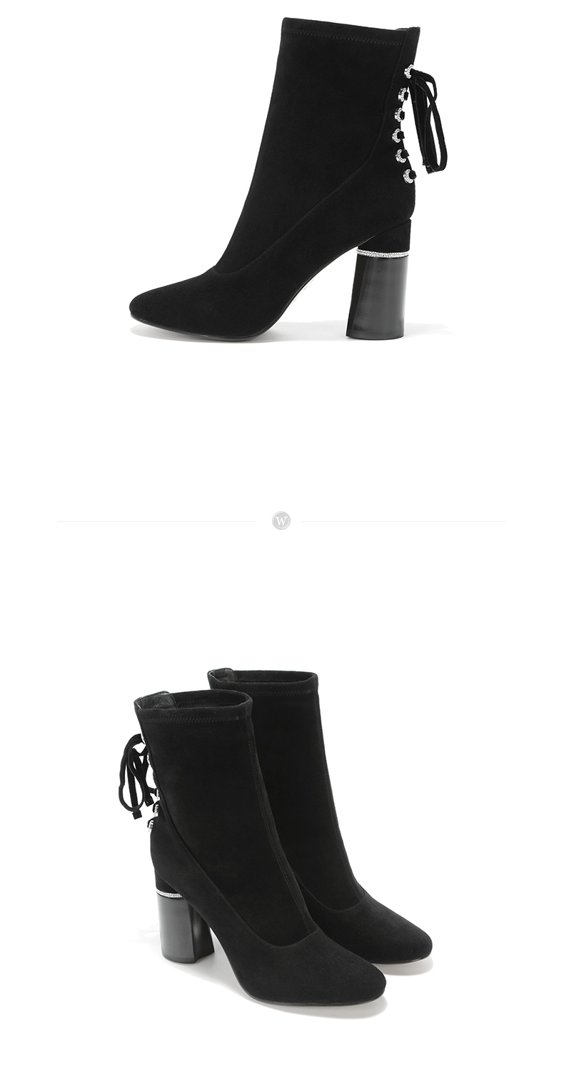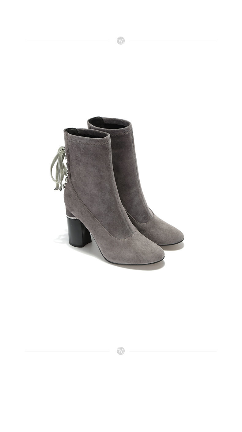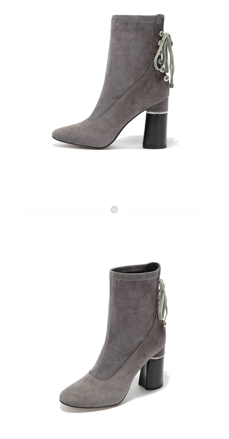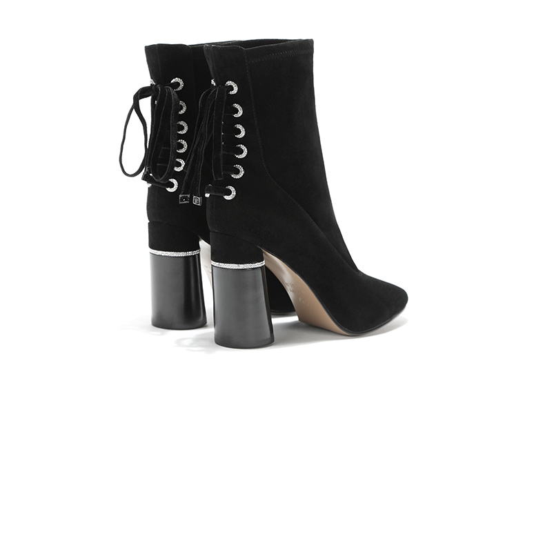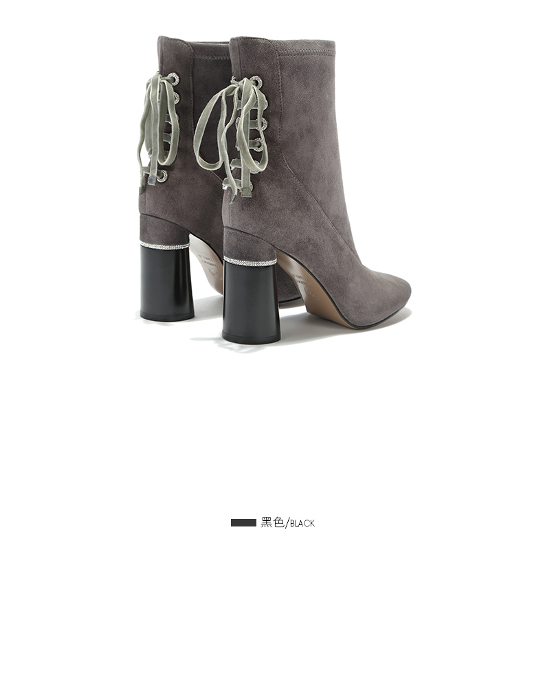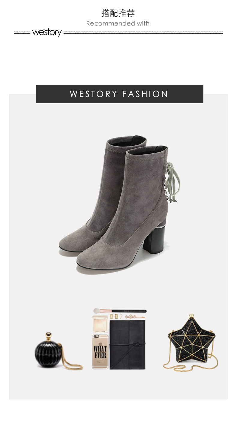 westory秋季瘦瘦冬靴粗跟尖头短筒女短靴高跟鞋W274S80501