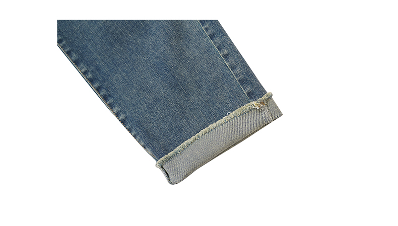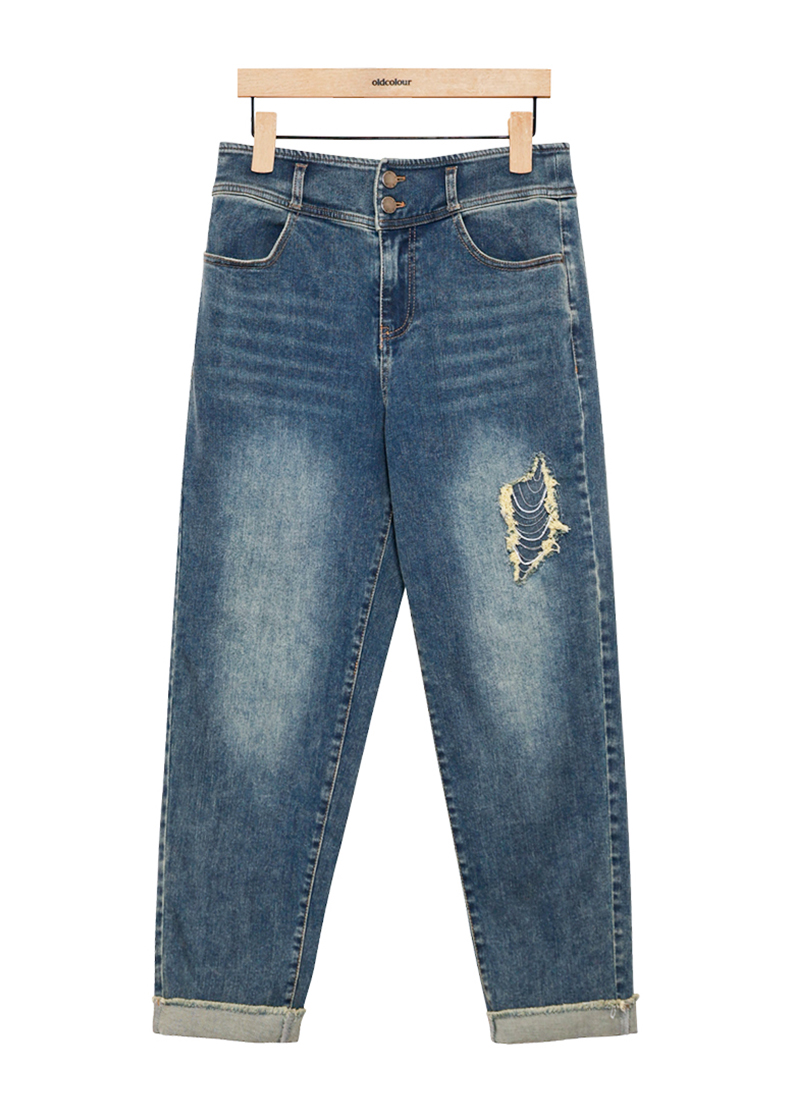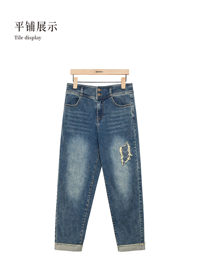oldcolour蓝色牛仔裤春季新款复古高腰直筒卷边九分裤女P12113254