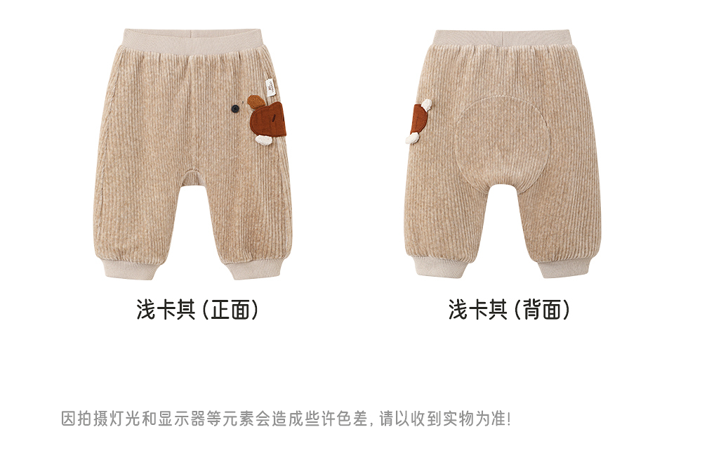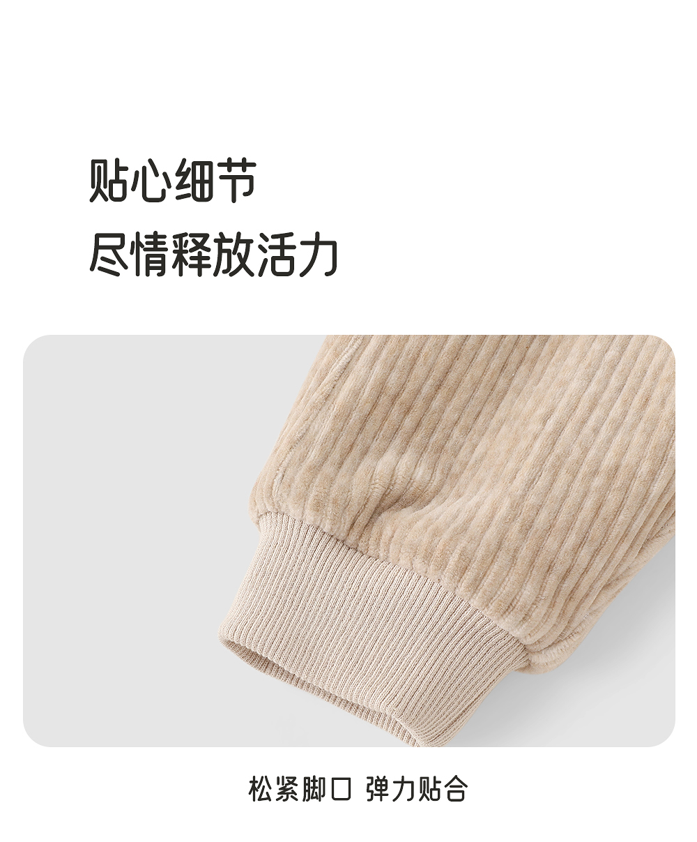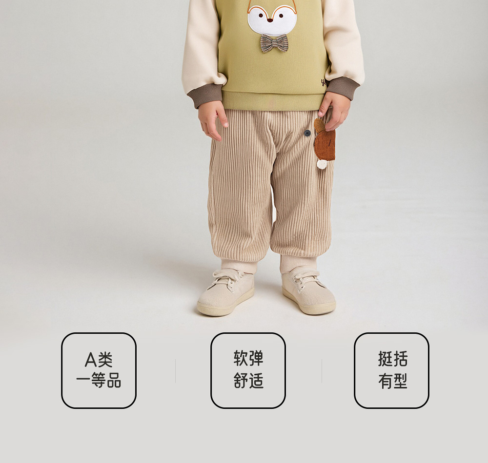 英氏儿童夹棉裤子秋冬保暖男宝屁屁裤小童灯芯绒长裤YRKPJ4R020A