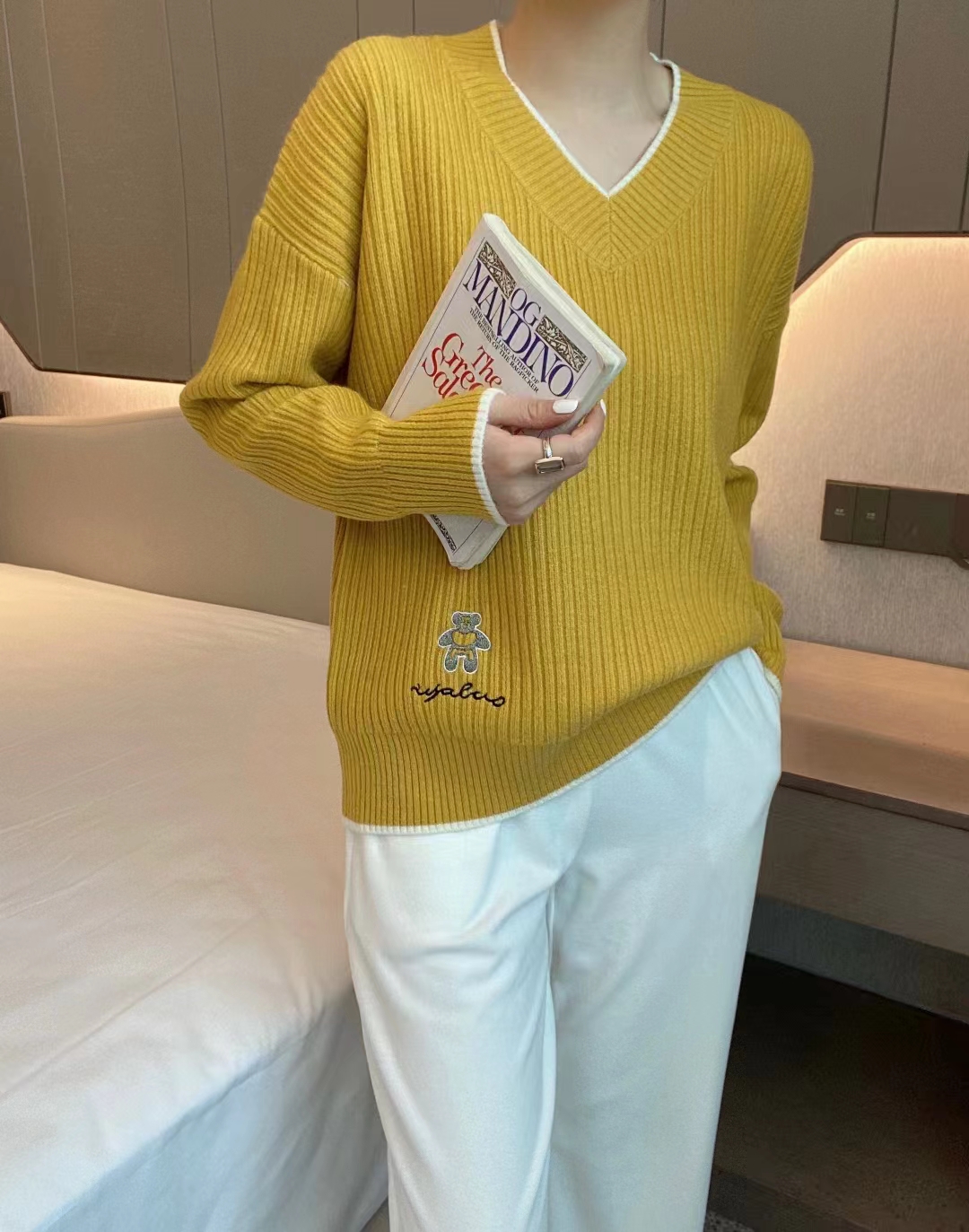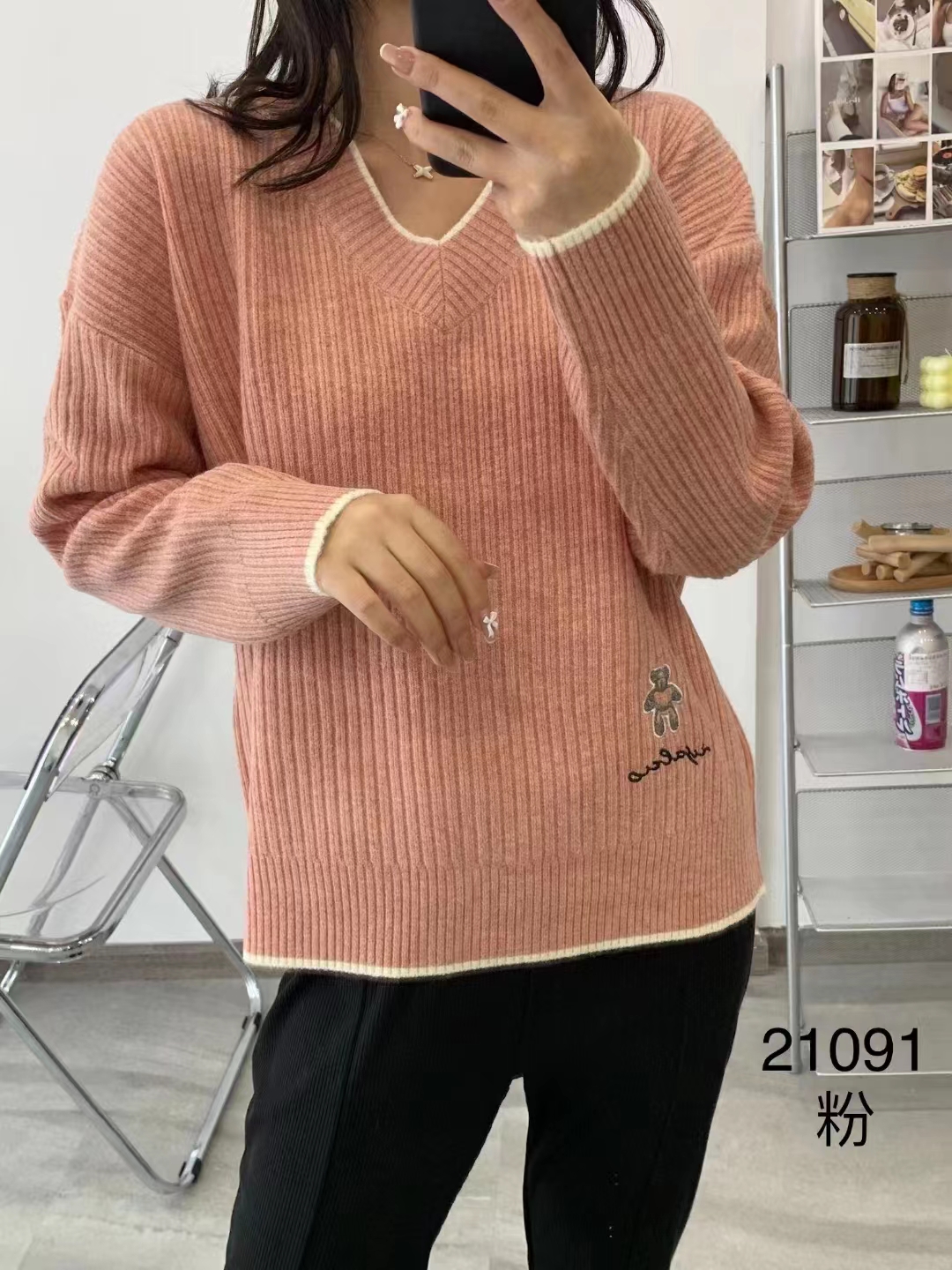 靓点新款毛衫今年的的爆款,简单的ⅴ领设计减龄时尚款,不挑人群颜色黄色。米色,红色。藏青色尺码均码号从90斤穿到150斤左右