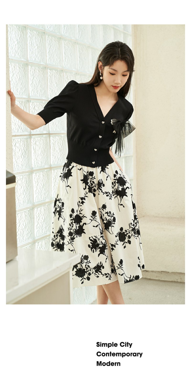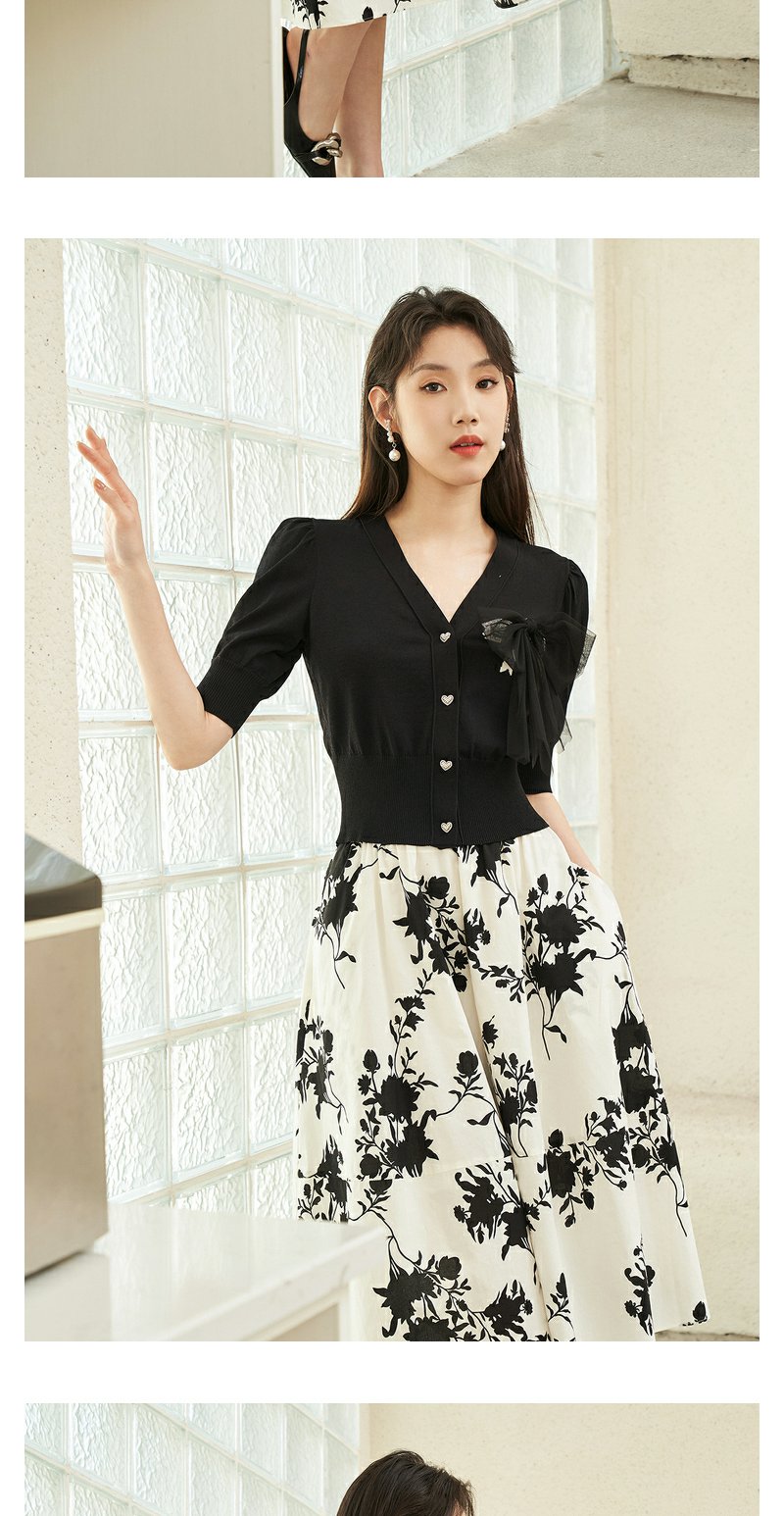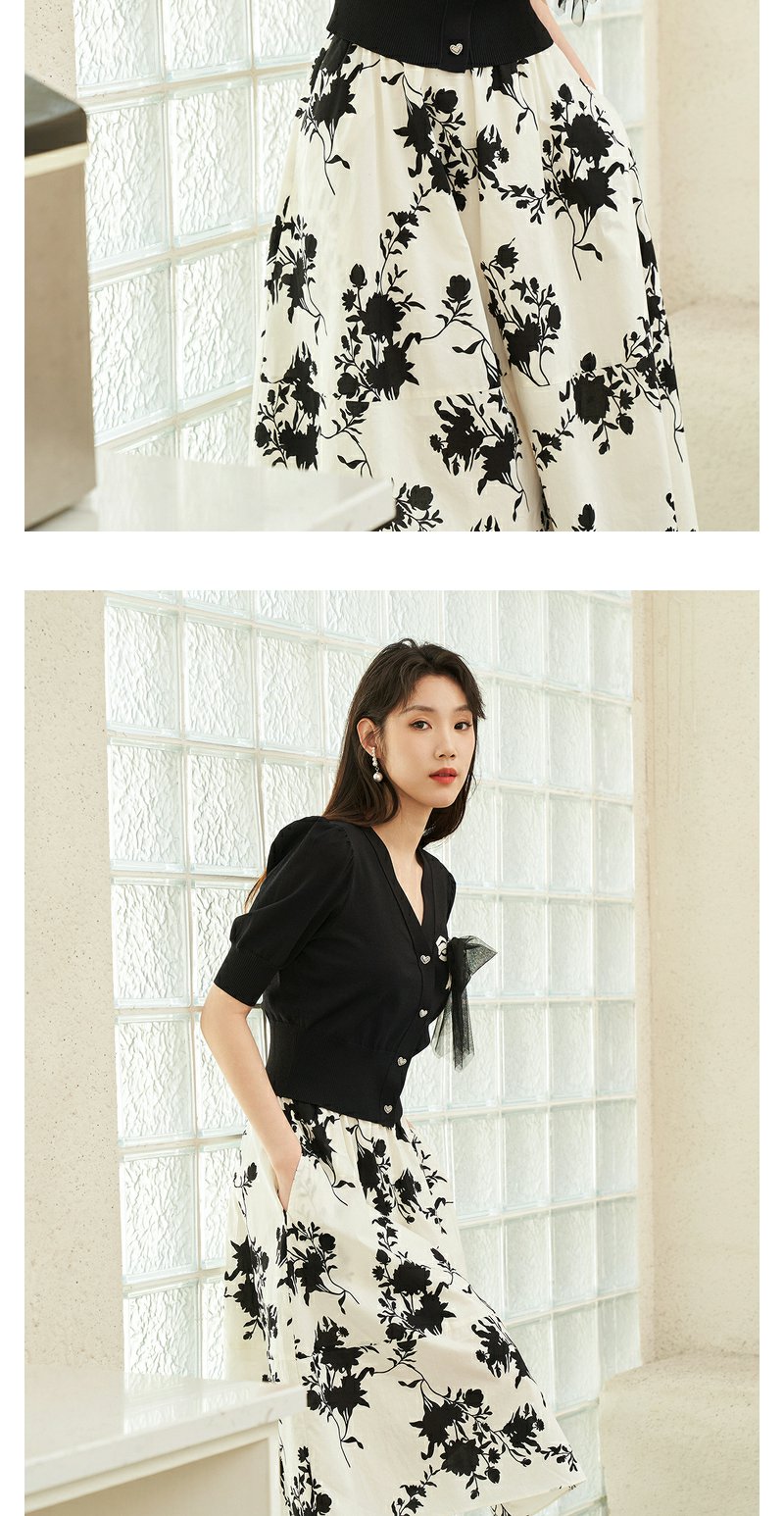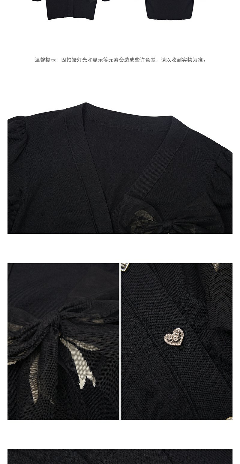 NEELLY纳俪商场同款夏季新款V领显瘦短袖针织衫女黑色修身上衣N25044A14409