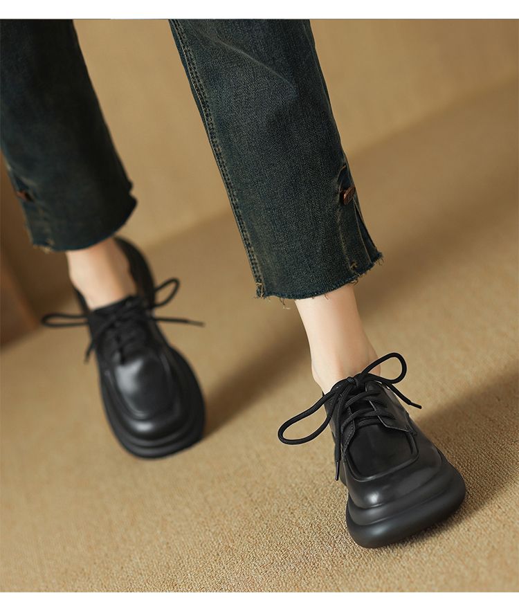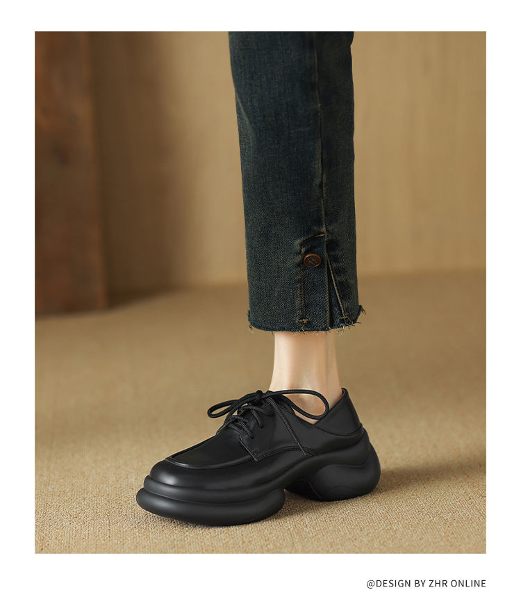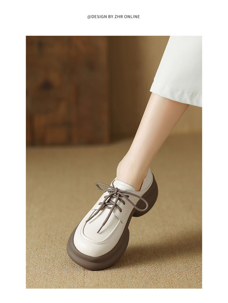 ZHR则则真皮时尚经典英伦单鞋女2024新款轻便耐穿百搭显高小皮鞋