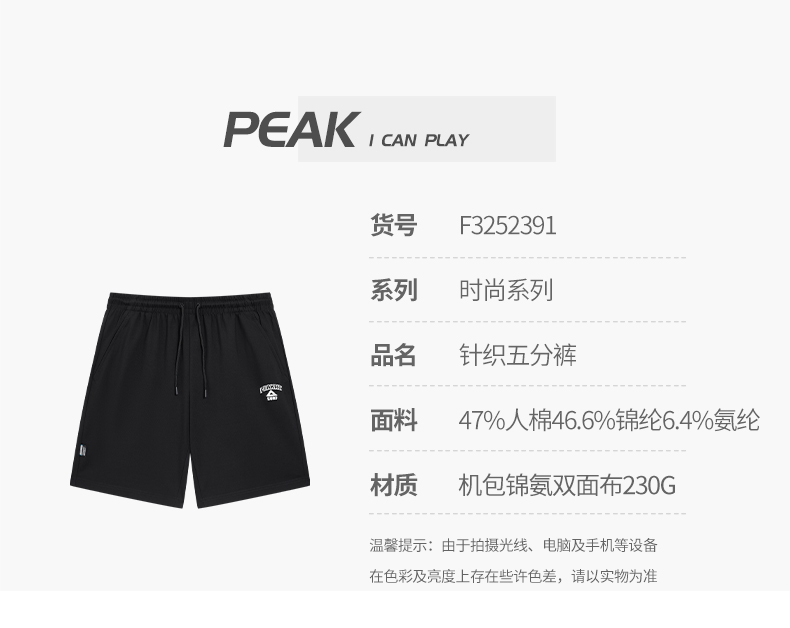 匹克2025年新款时尚系列男款针织五分裤F3252391