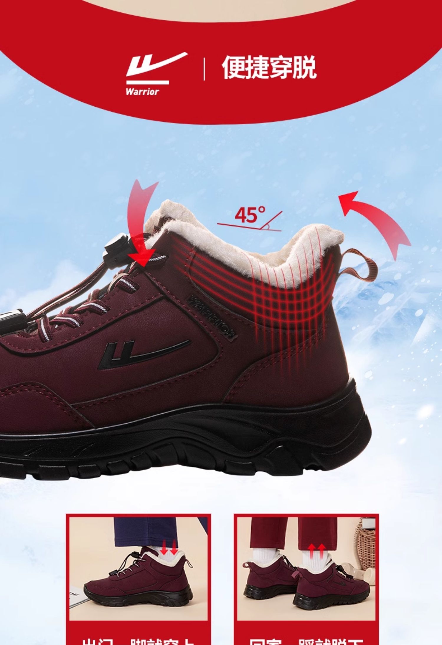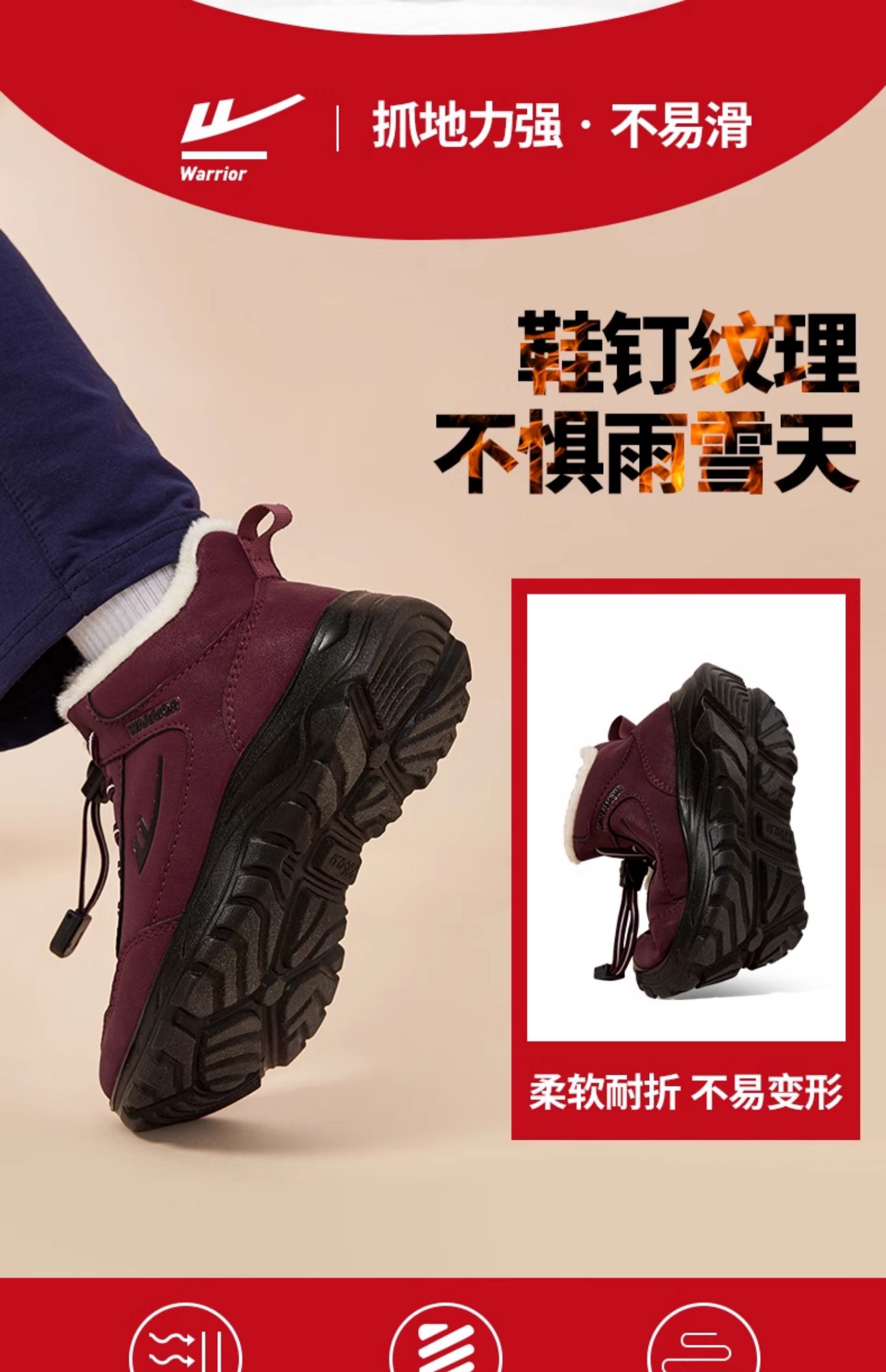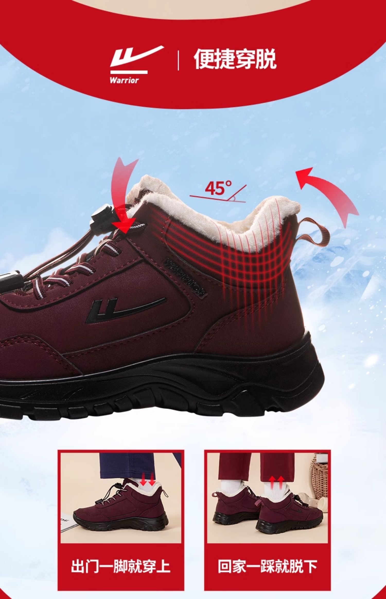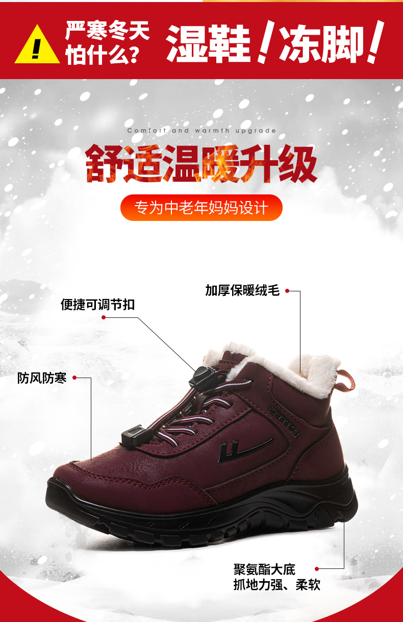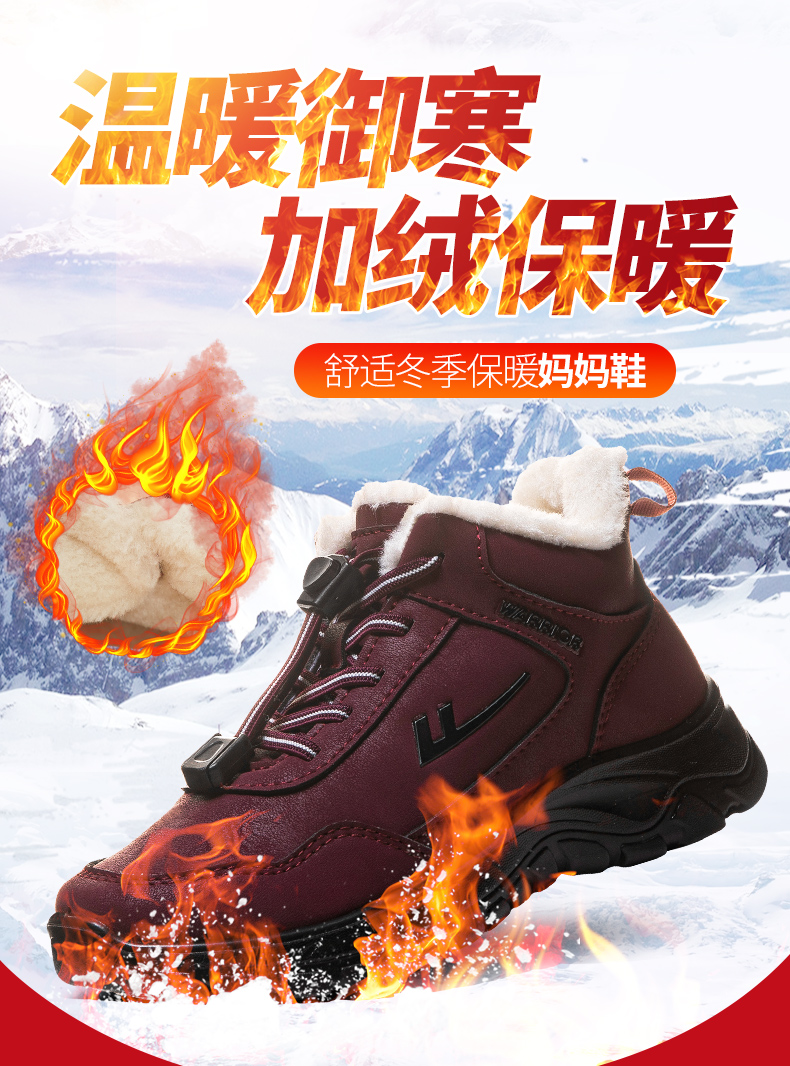 回力老人鞋2025年新款妈妈鞋休闲长绒加厚防水棉鞋中老年雪地靴女