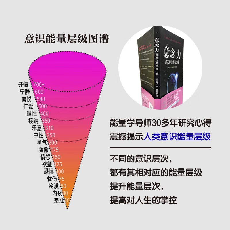 《意念力:激发你的潜在力量》揭露了一个令举世震惊,连严苛的科学家都要折服的真相。它关乎我们自己能否掌控自身命运、主宰自我人生、获得幸福美满生活,甚至隐隐决定着人类历史和世界趋势的走向。 它就是震撼世界的“意识能量层级图谱”! 就如同人类基因组图谱的绘就,掀开了我们认识生老病死全新的一页。《意念力:激发你的潜在力量》作者为全球著名的心理学家、精神治疗师大卫·R·霍金斯博士,他以近30年的科学研究为基础,证实了意识作为一种能量,具有强大的力量,并绘出人类历史靠前的“意识能量层级图谱”,在全球范围内,已经引发新一轮精神意识领域的创新变革,使得我们对命运、人生、生活的掌控,达到一个全新的高度。 我们每一个人都有自己对应的意识能量层级,而这意识能量层级决定着生命的品位、品质;层级越高,正面能量越大,获得的成功和快乐也就越多。 诚实、同情和理解能增强一个人的意志力,改善身心健康;冷漠、害怕与傲慢则会削......