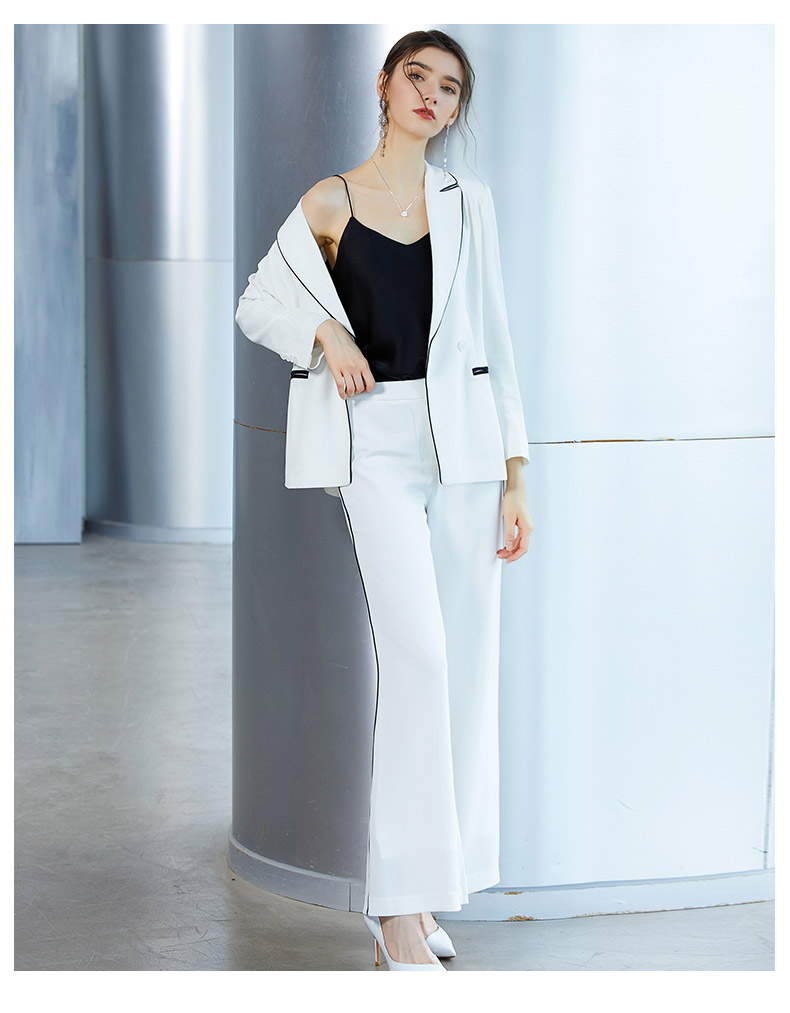 IWY/白色长袖西装阔腿长裤套装CP591