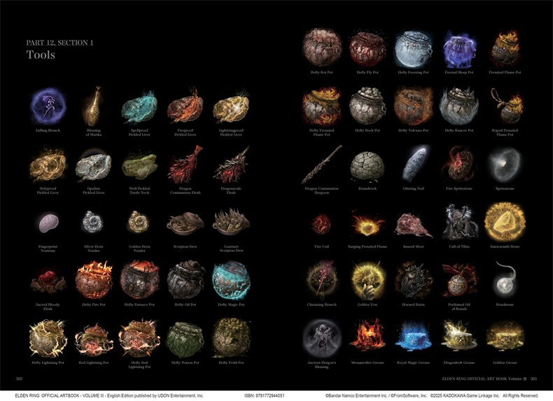 Volume III ventures into the DLC expansion SHADOW OF THE ERDTREE. Included are illustrations of dark and intense new locations, terrifying enemies and bosses, powerful new weapons, and more.