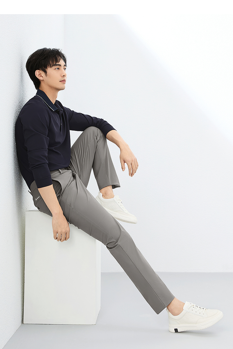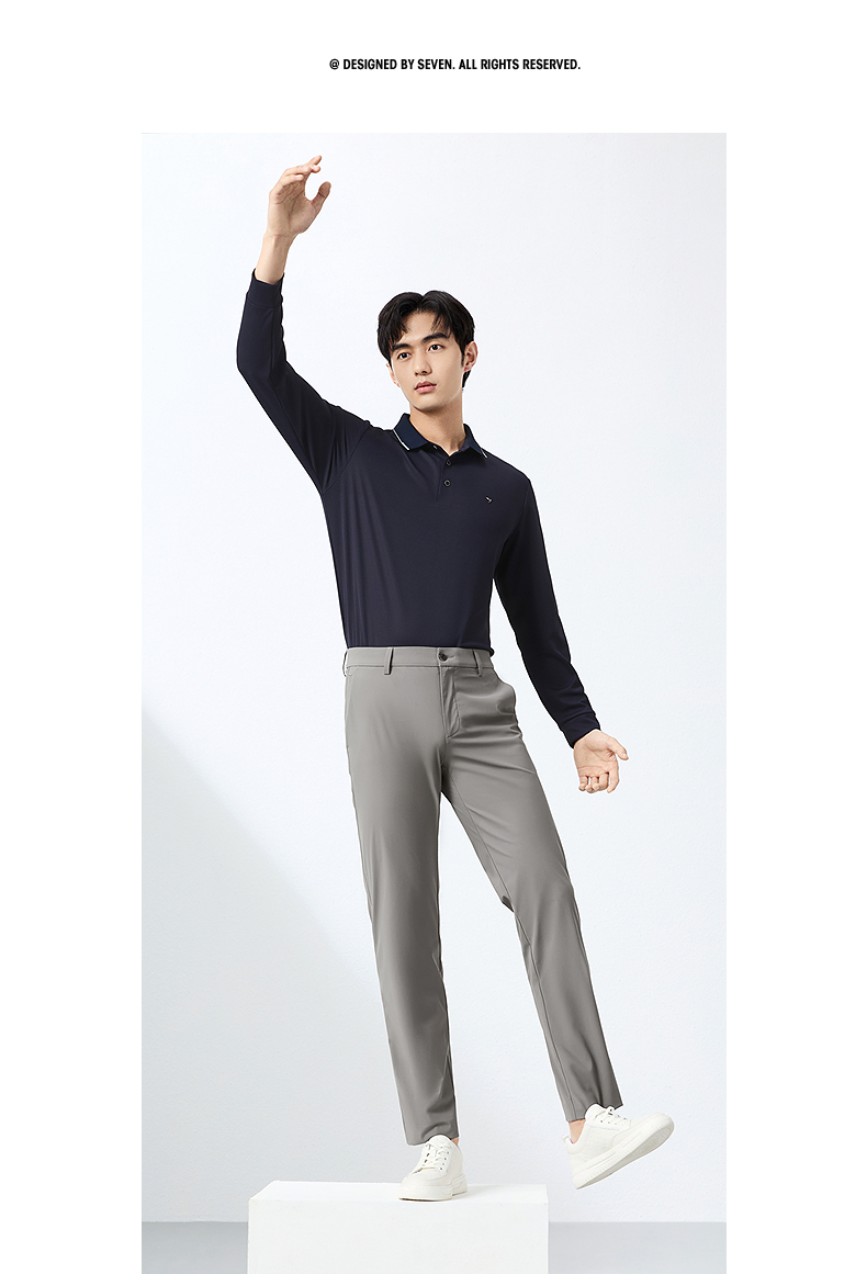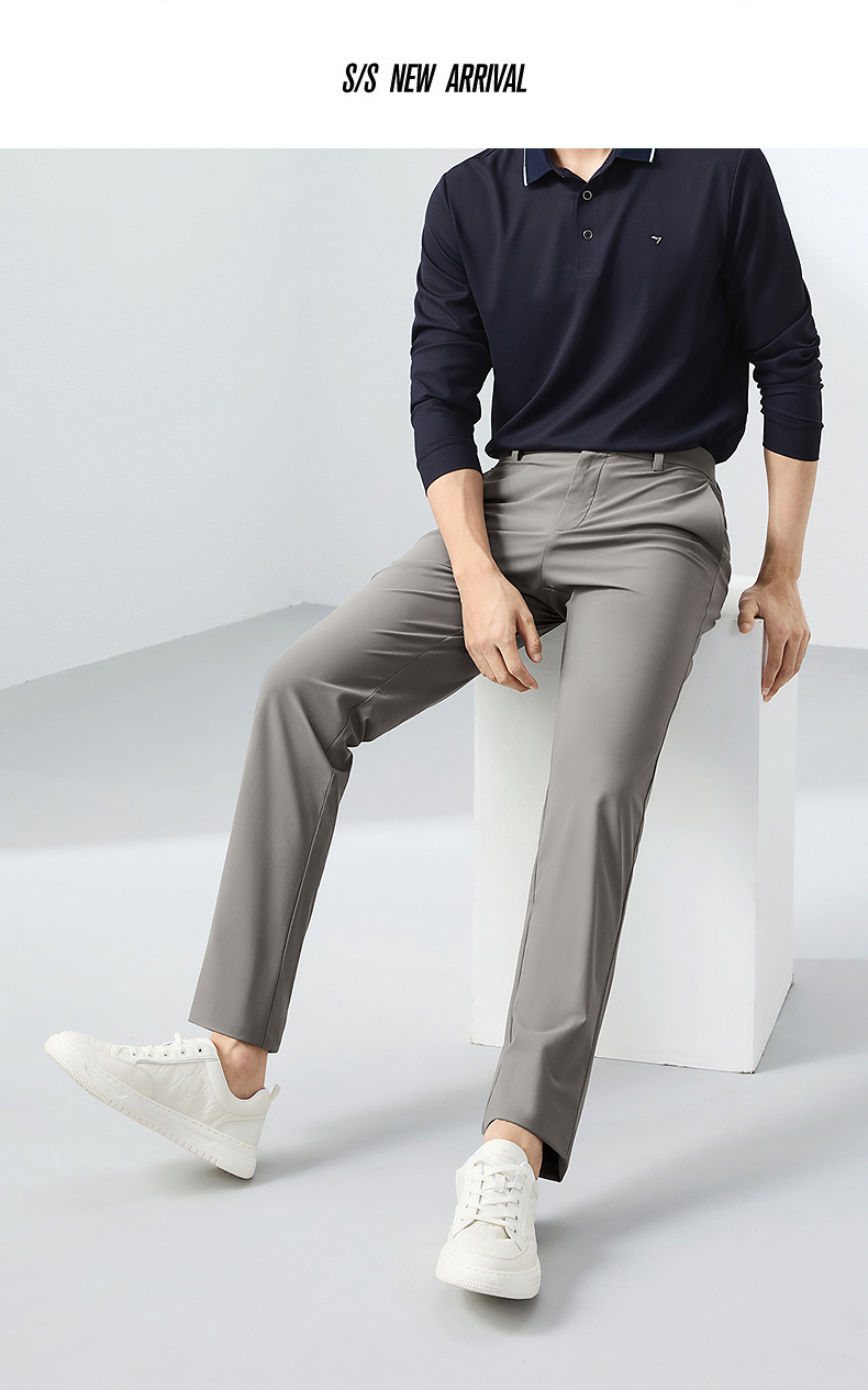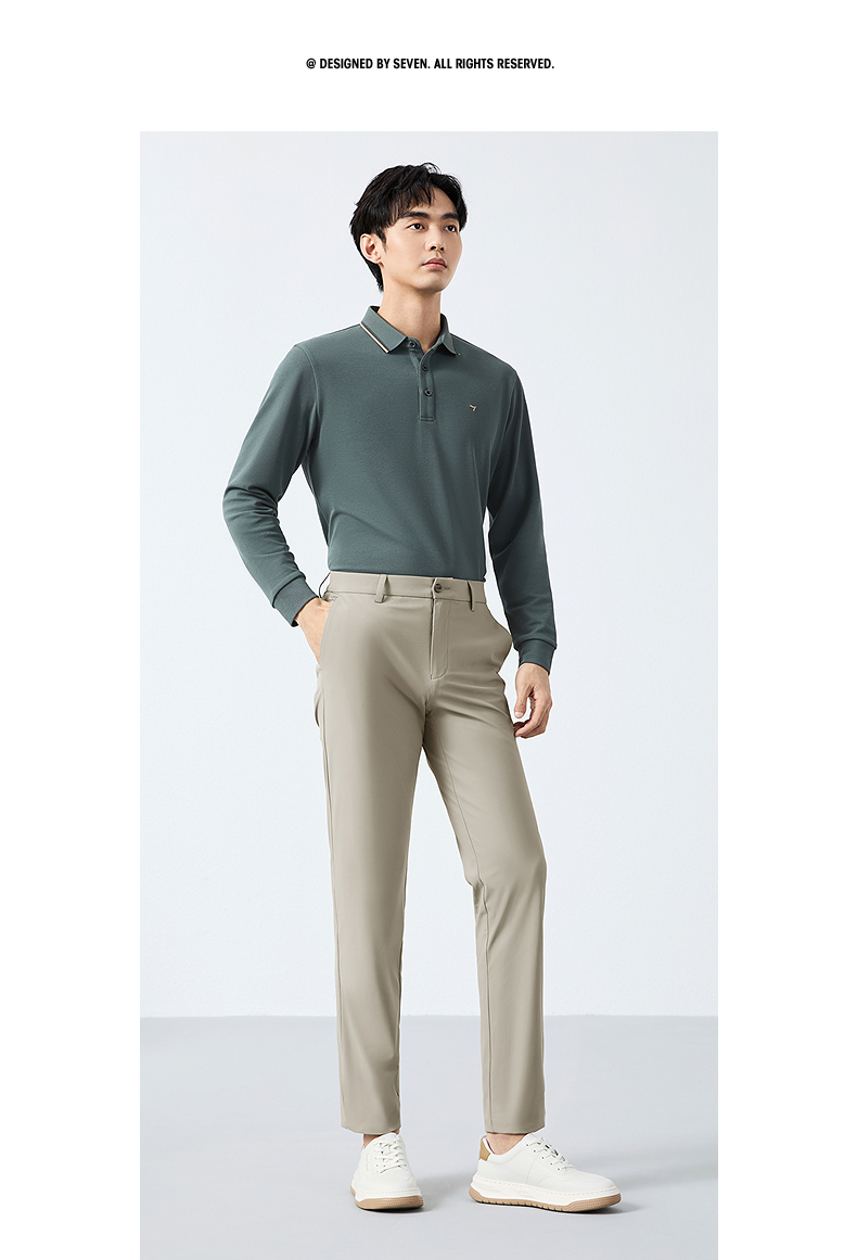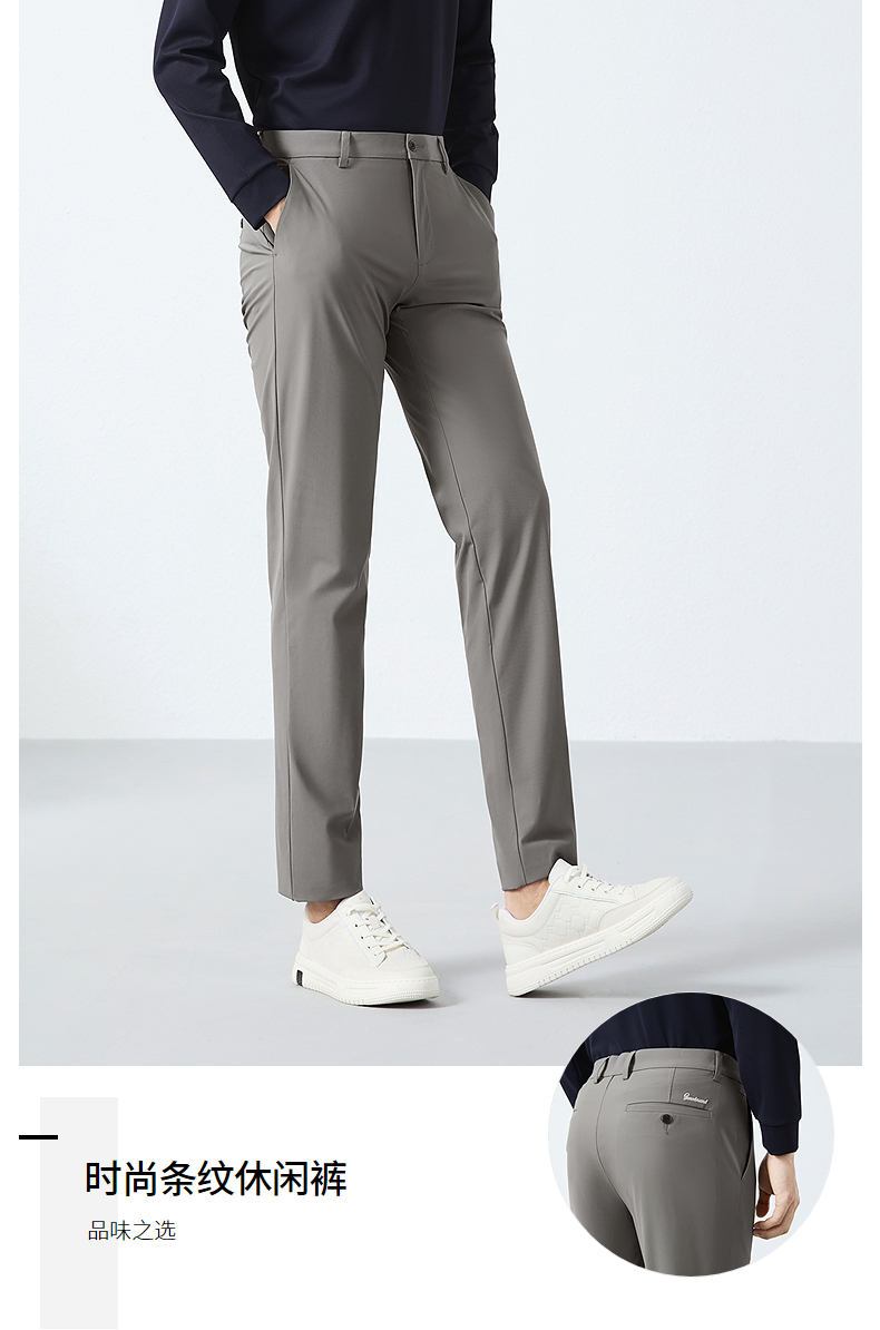 【刘冠逸同款】柒牌直筒休闲裤男士2025春季新款时尚百搭细条纹针织长裤128H71960
