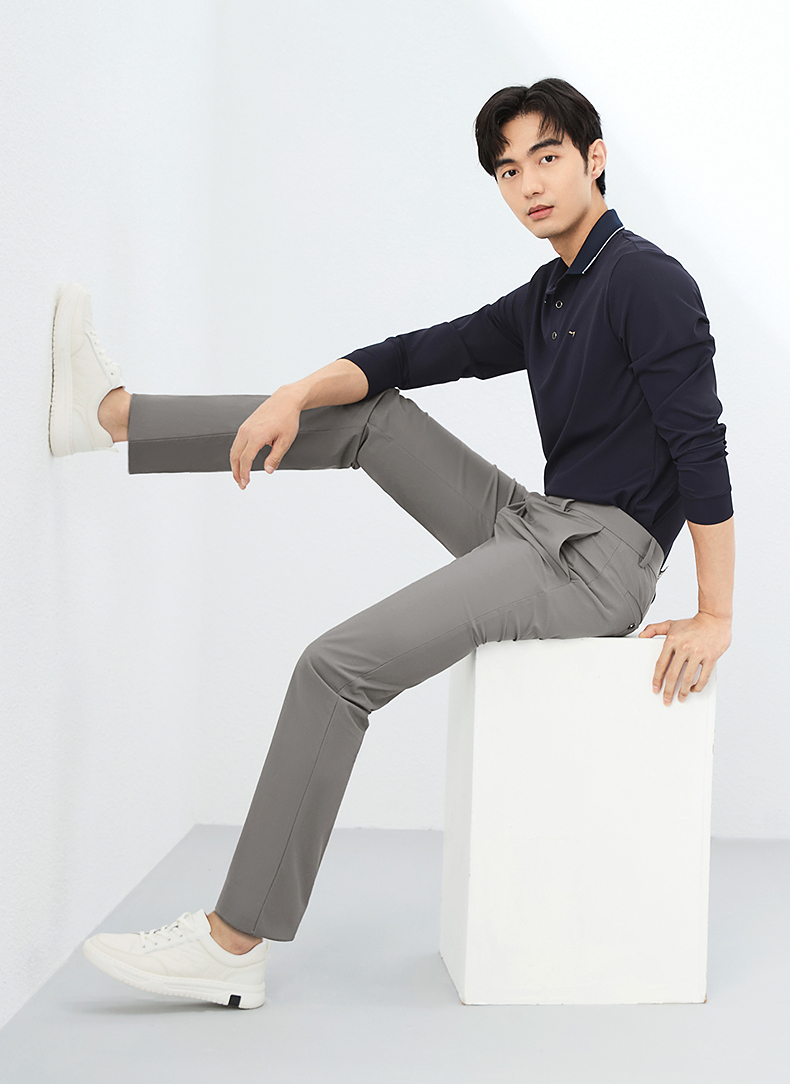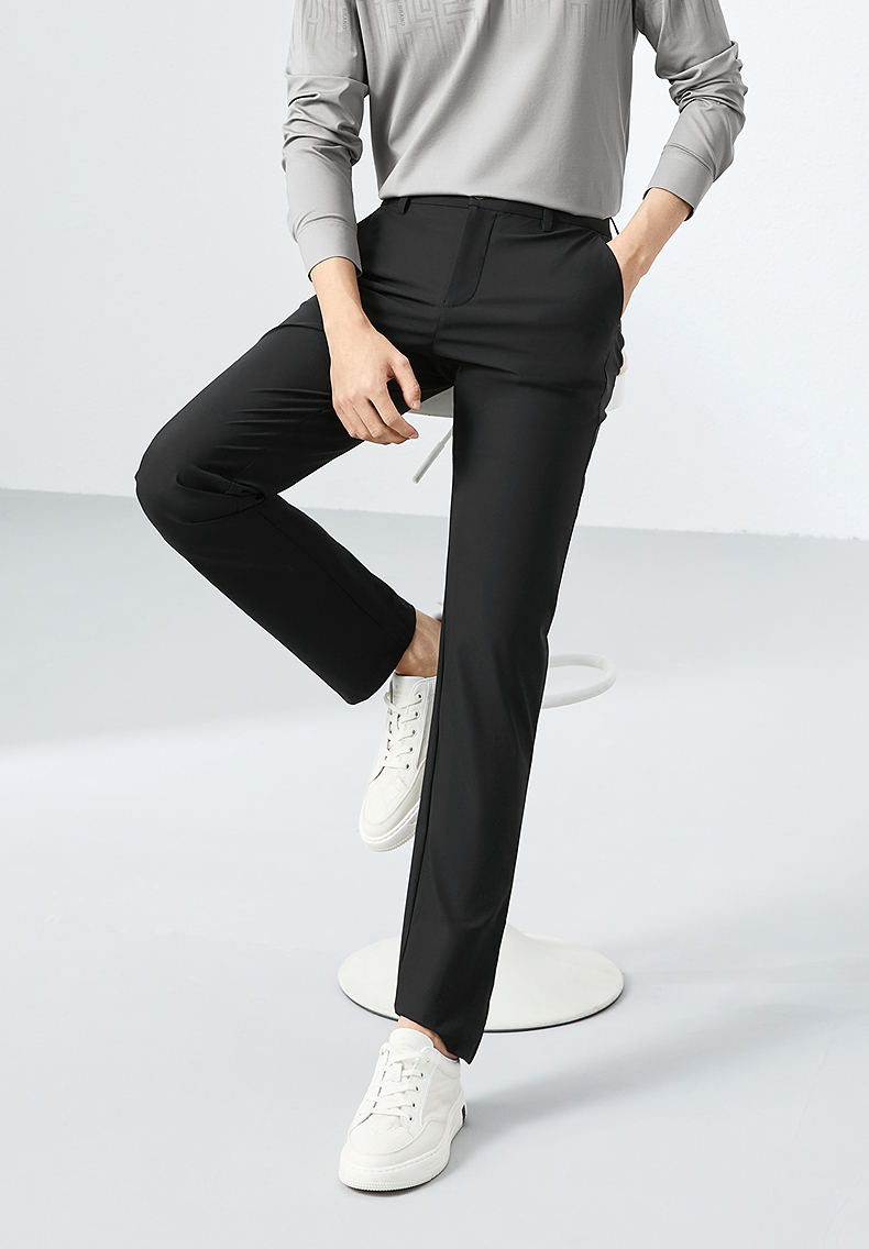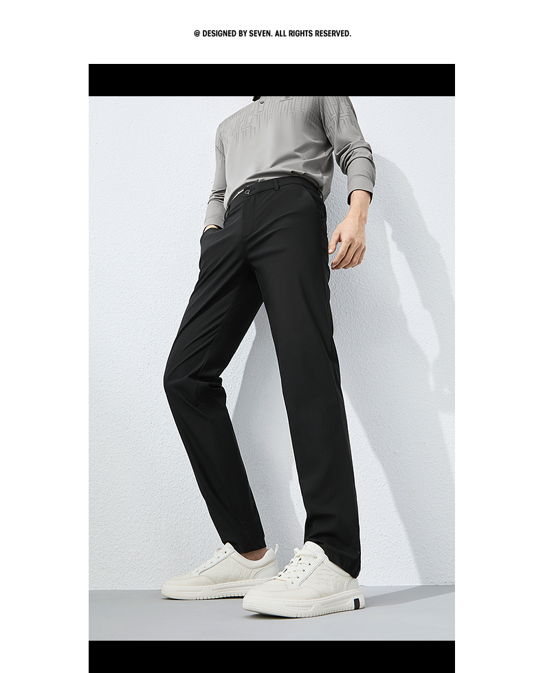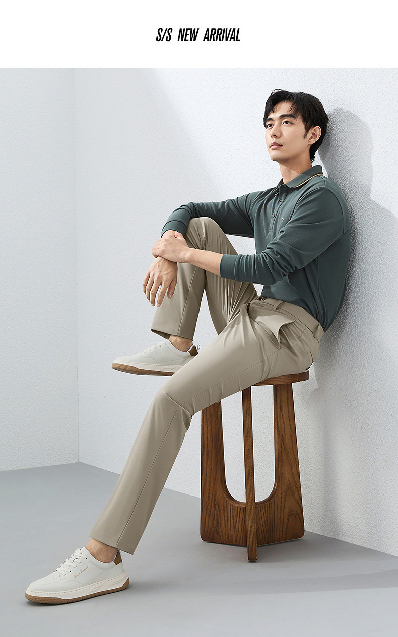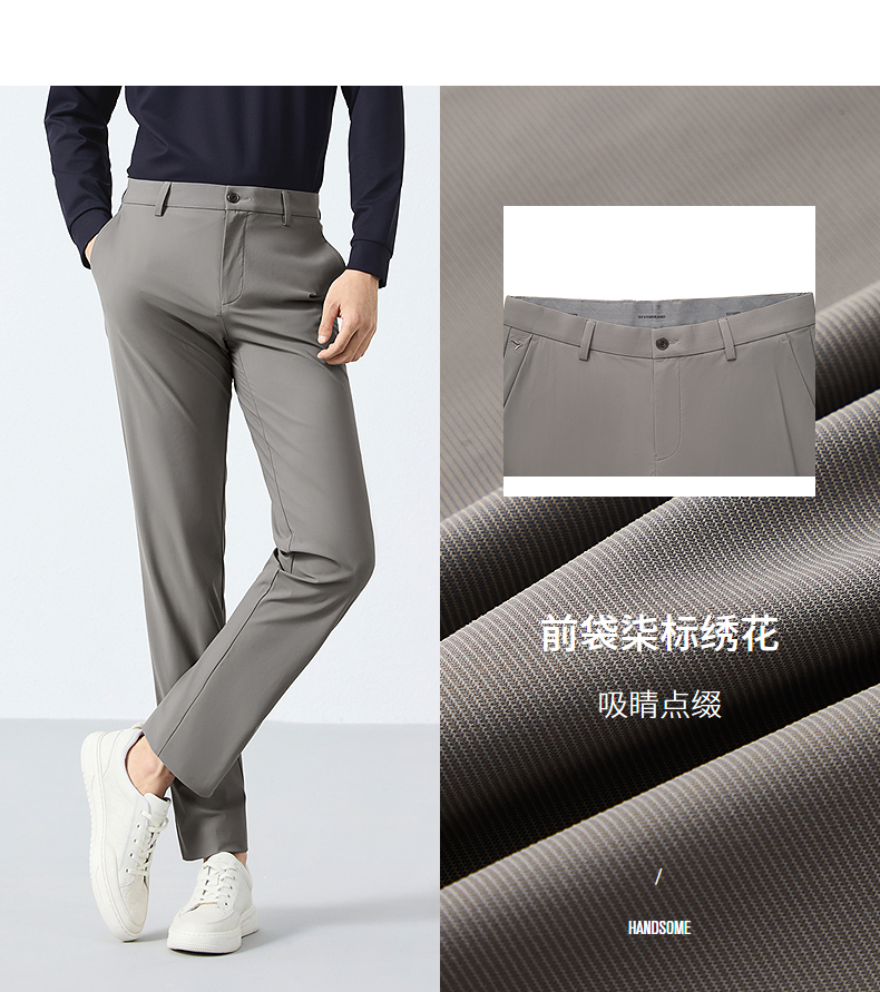 【刘冠逸同款】柒牌直筒休闲裤男士2025春季新款时尚百搭细条纹针织长裤128H71960