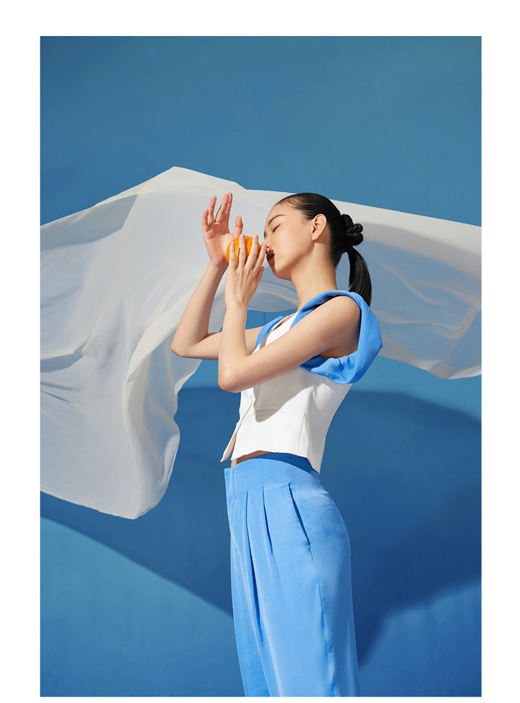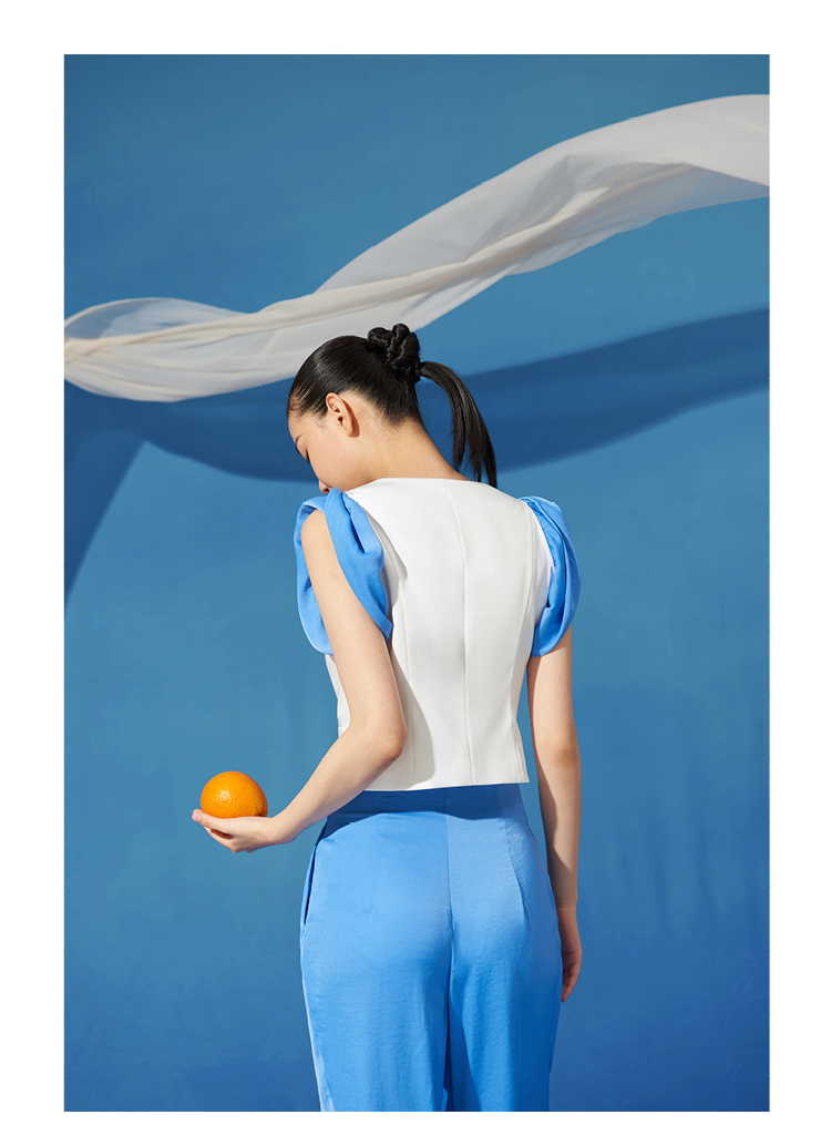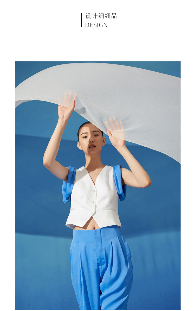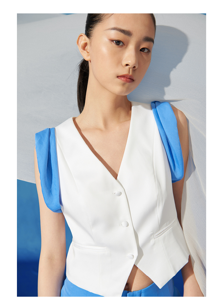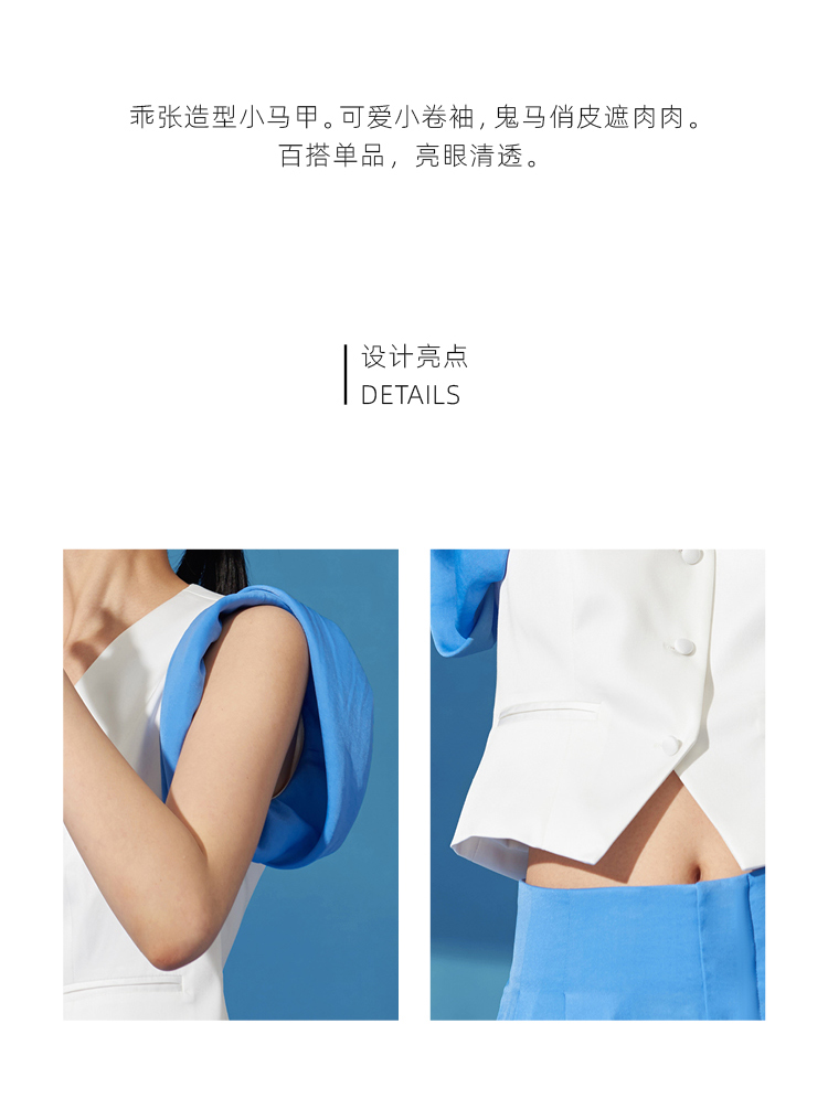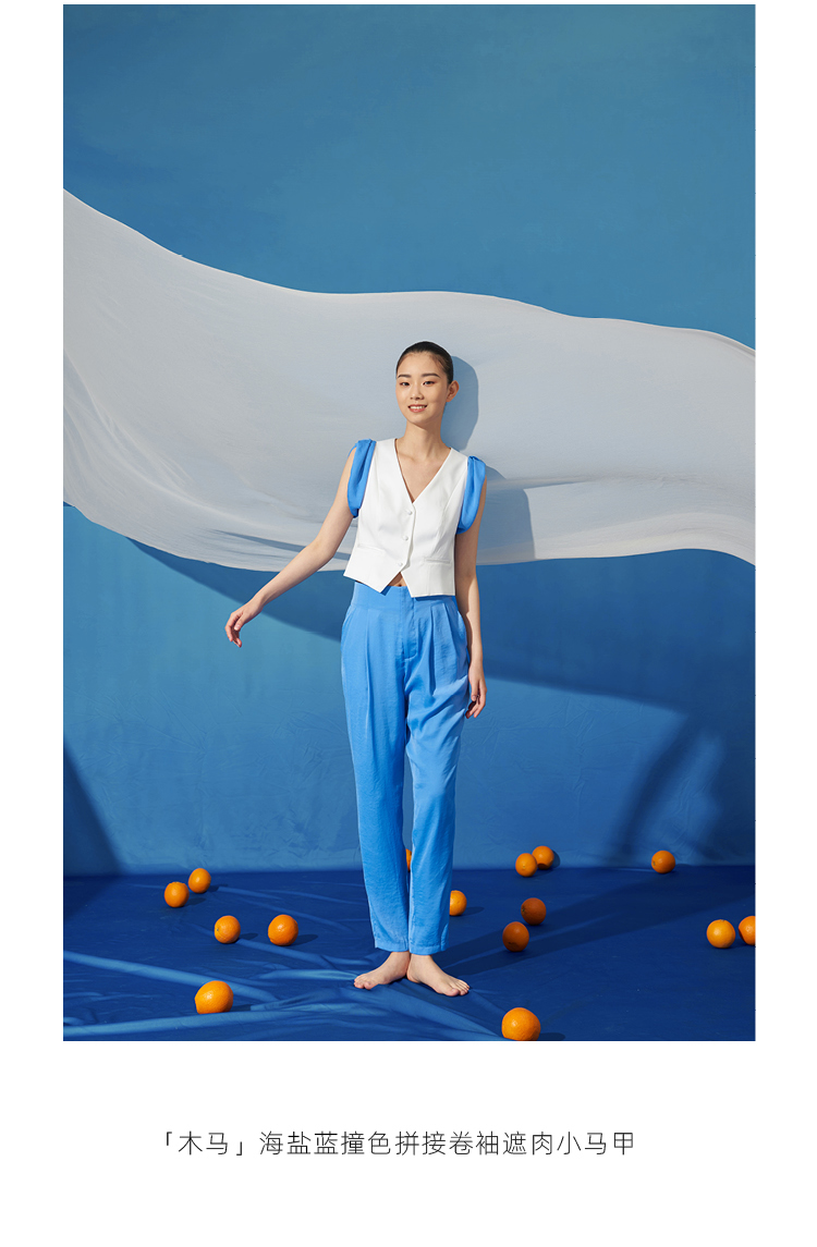 【木马】海盐蓝撞色拼接卷袖百搭小马甲/00191