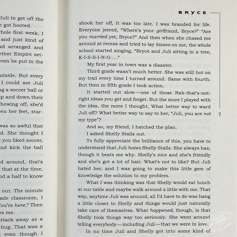 The first time she saw him, she flipped. The first time he saw her, he ran. That was the second grade, but not much has changed by the seventh. She says: “My Bryce. Still walking around with my first kiss.” He says: “It’s been six years of strategic avoidance and social discomfort.” But in the eighth grade everything gets turned upside down. And just as he’s thinking there’s more to her than meets the eye, she’s thinking that he’s not quite all he seemed.