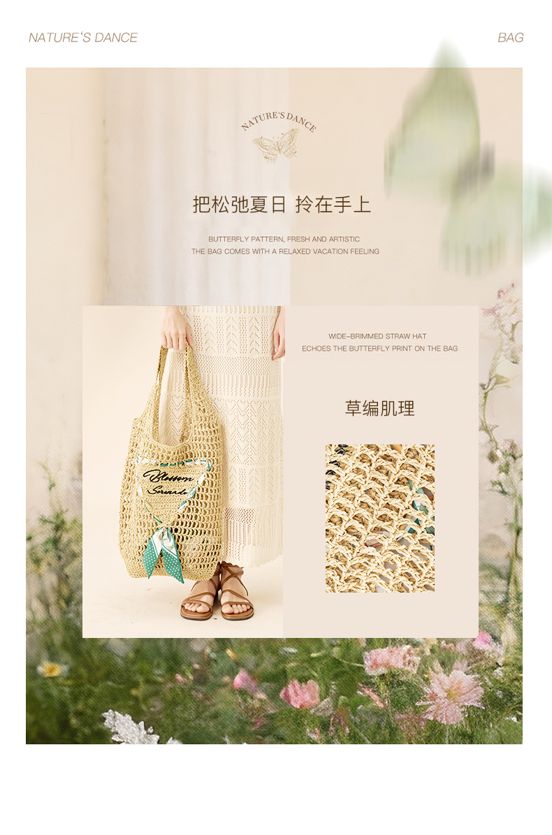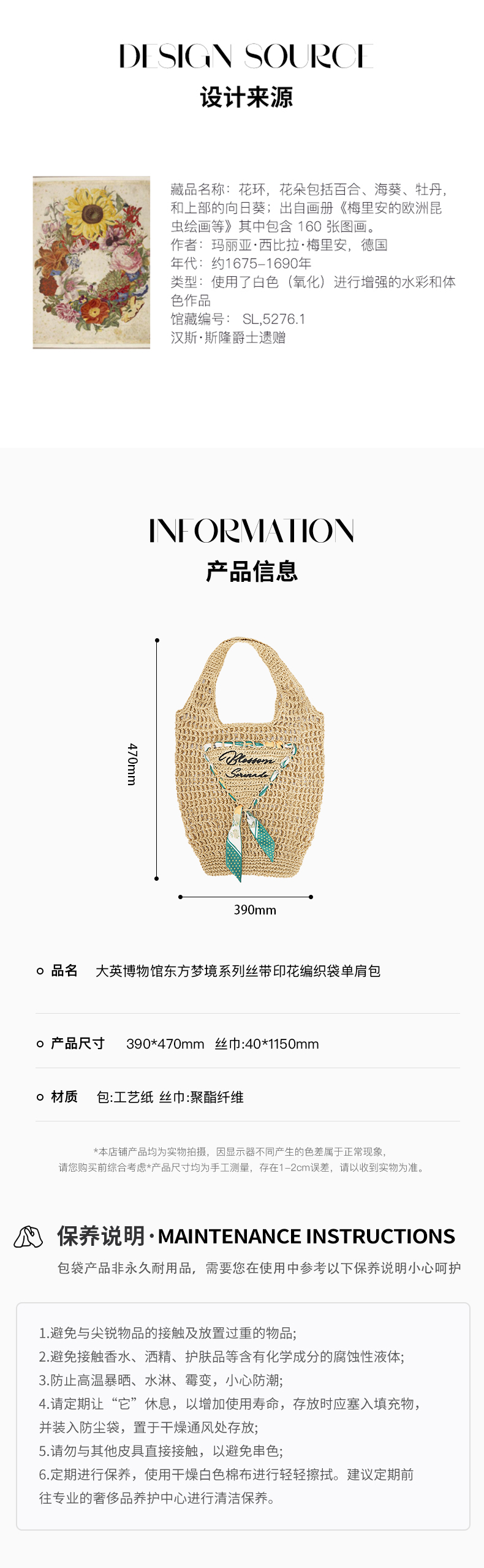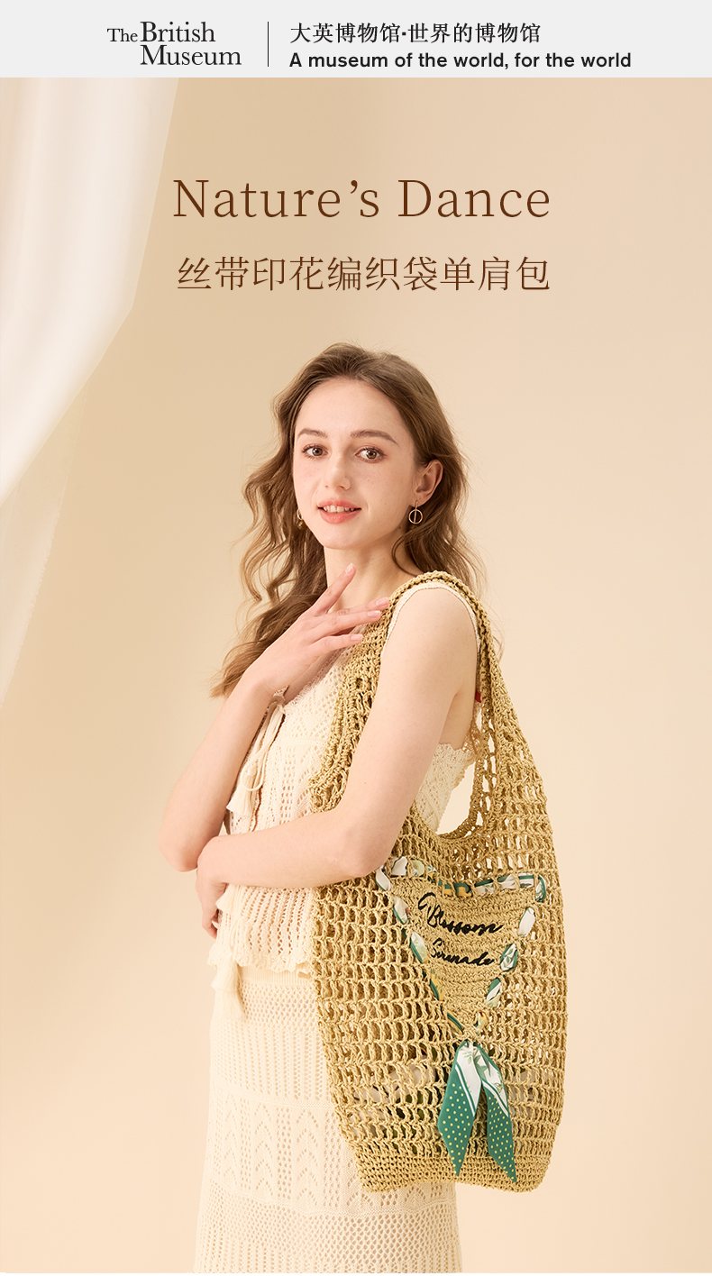 大英博物馆 东方梦境系列 丝带印花编织袋单肩包