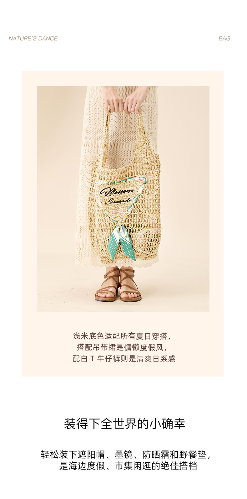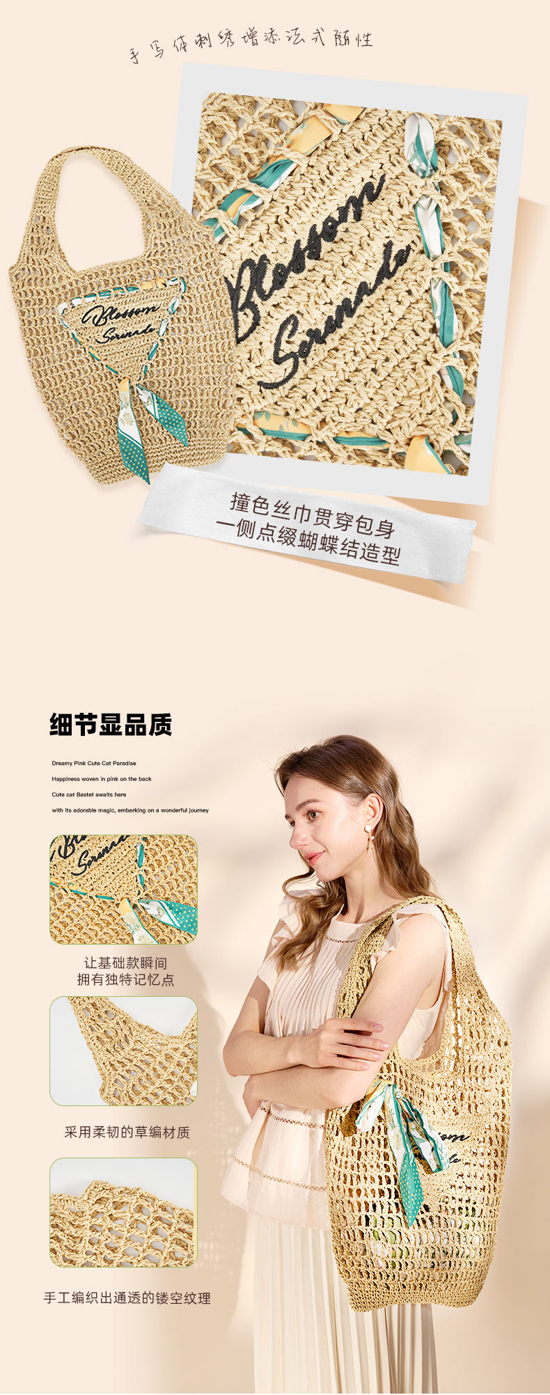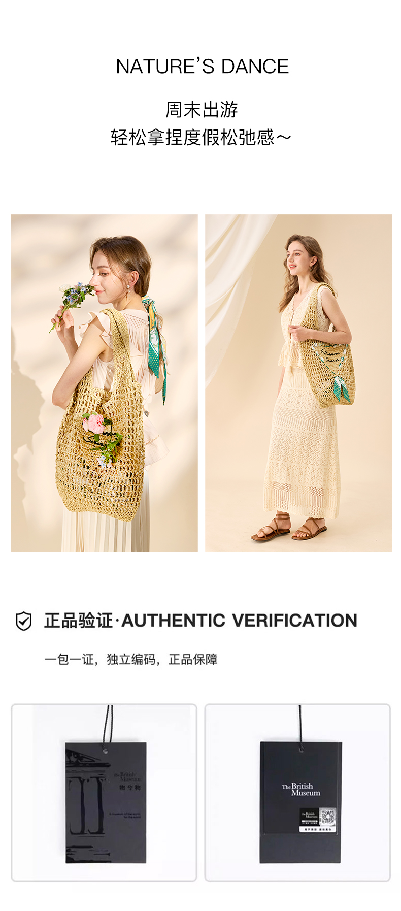 大英博物馆 东方梦境系列 丝带印花编织袋单肩包
