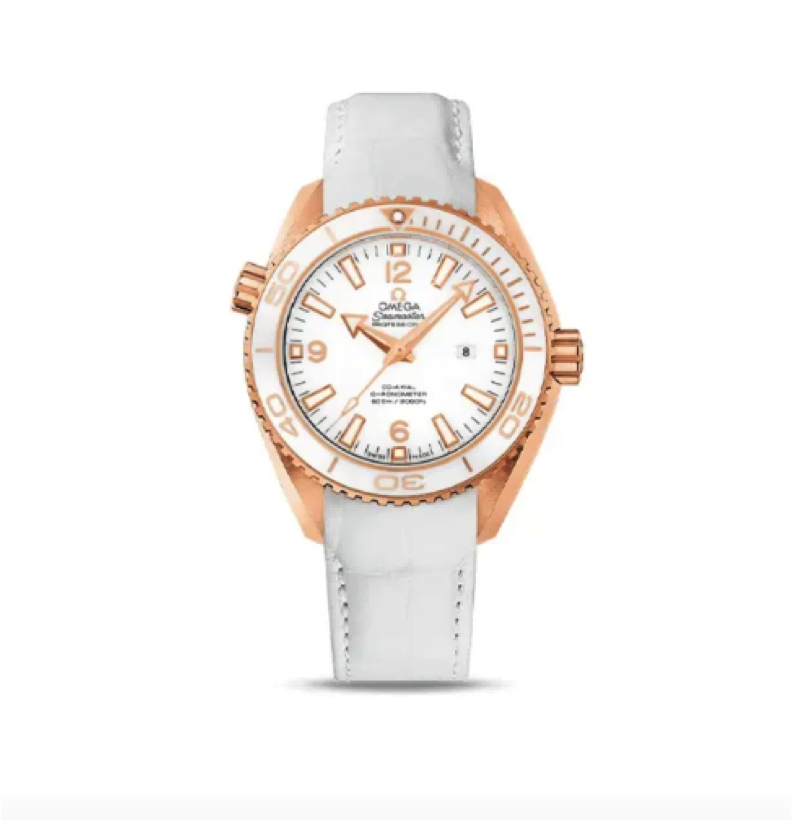 "OMEGA欧米茄自动机械机芯 瑞士天文台认证手表 日期显示600米防水 女表 瑞 表 37.5mm 37.5mm 白色表盘 红金表壳 真皮表带"