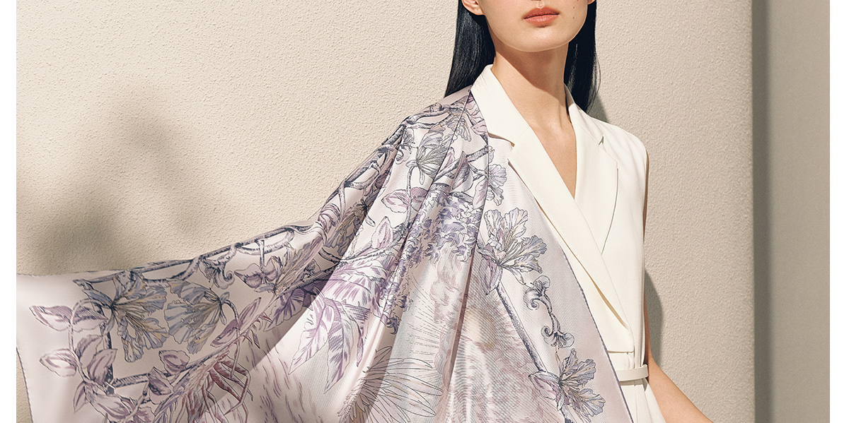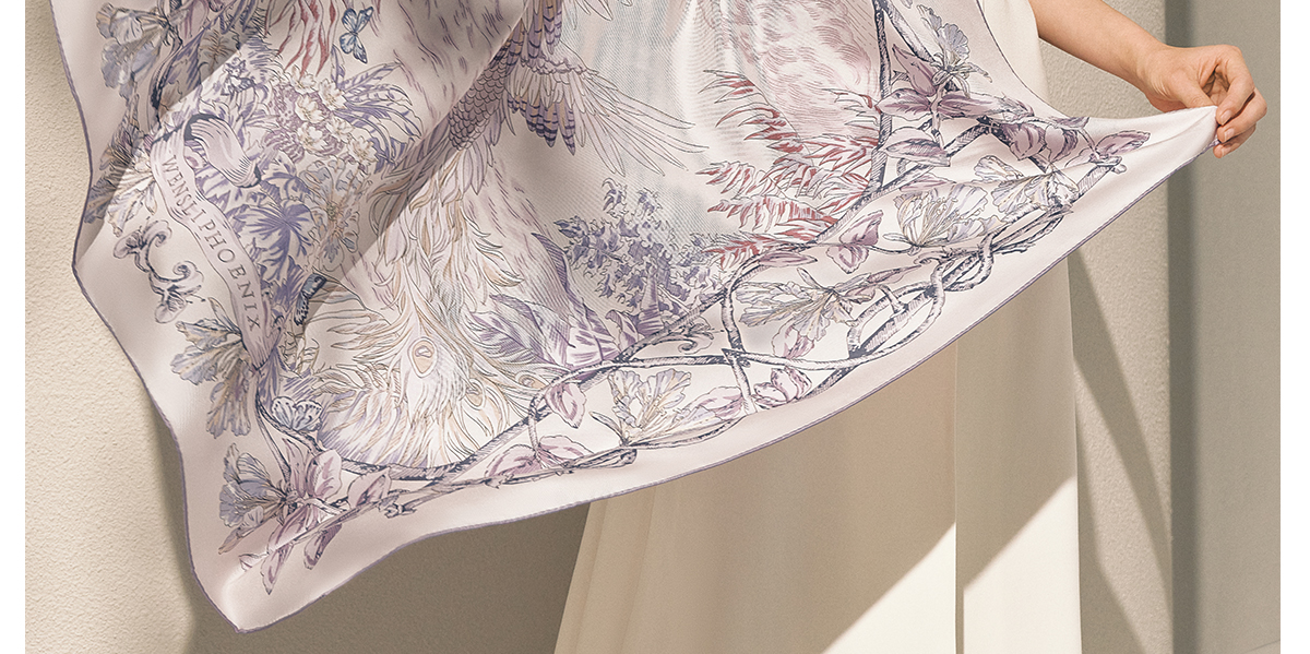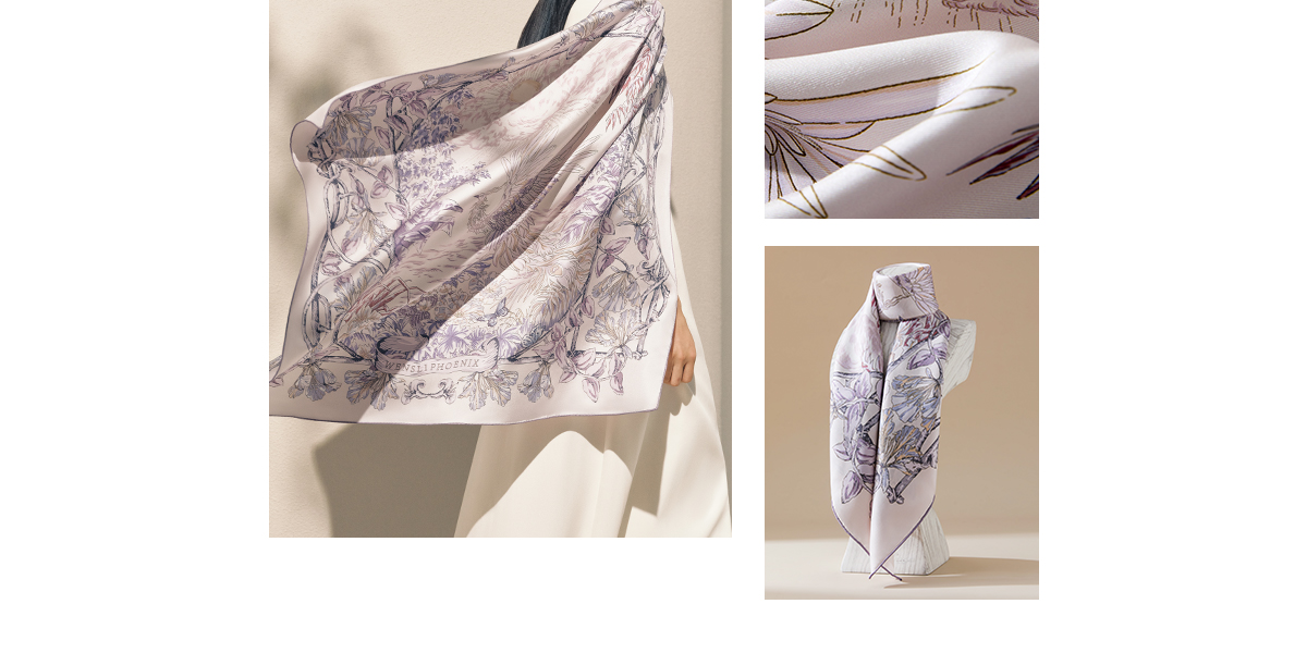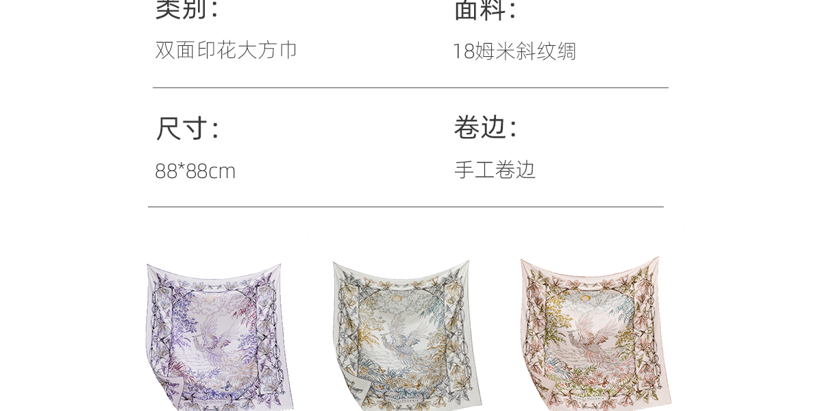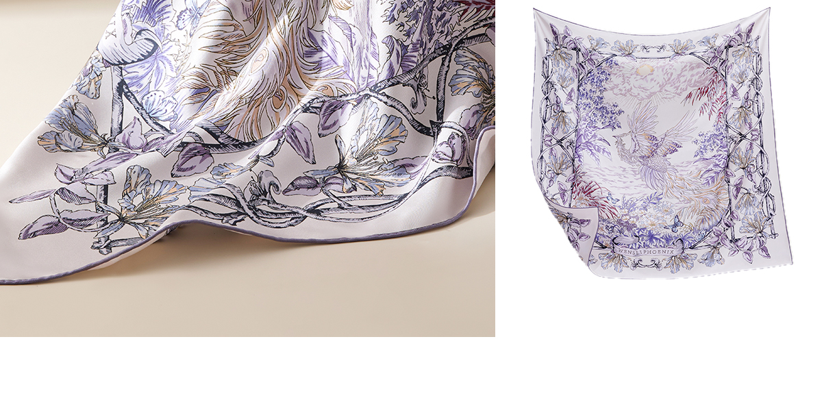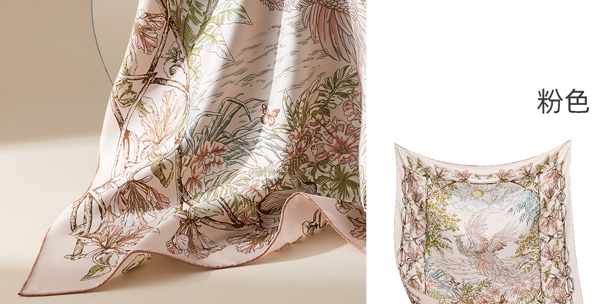 凤凰之家“昭霞序”63厘米双面印花真丝中方巾