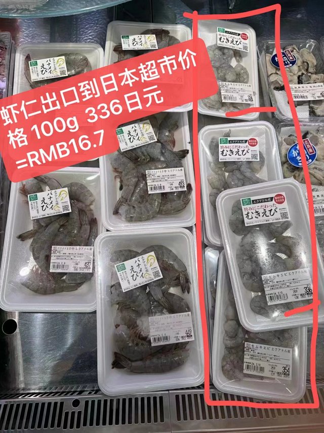 虾仁出口到日本超市的售价:100g约人民币16.7元