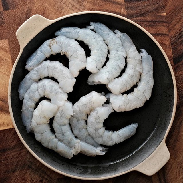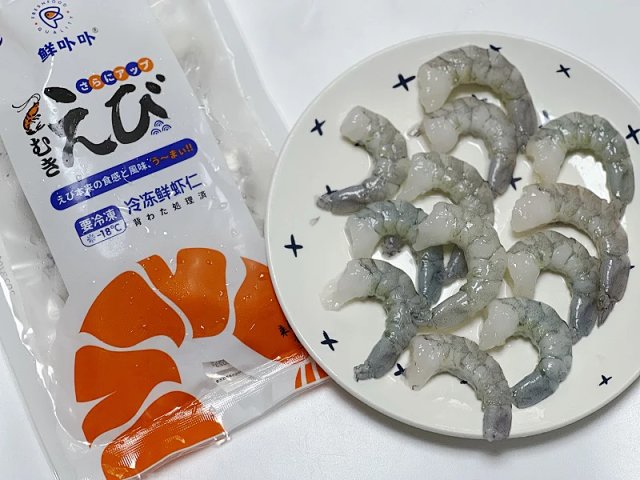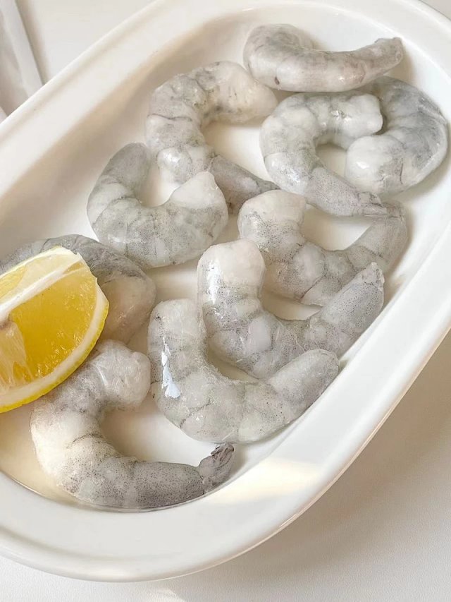 选用的是产量极少的大虾仁(26/30规格),个头均匀加工使用净化过的海水加工, 新鲜的虾仁以-45℃的超低温急速冻结,更快更完整的锁鲜,整个加工过程产品中心温度控制在5℃以下;剥虾壳和去肠线是人工操作,机器还无法做到这么精细化的动作(国际标准的现代化车间)