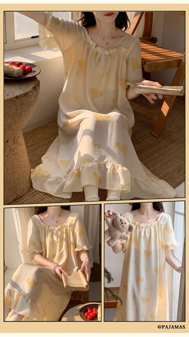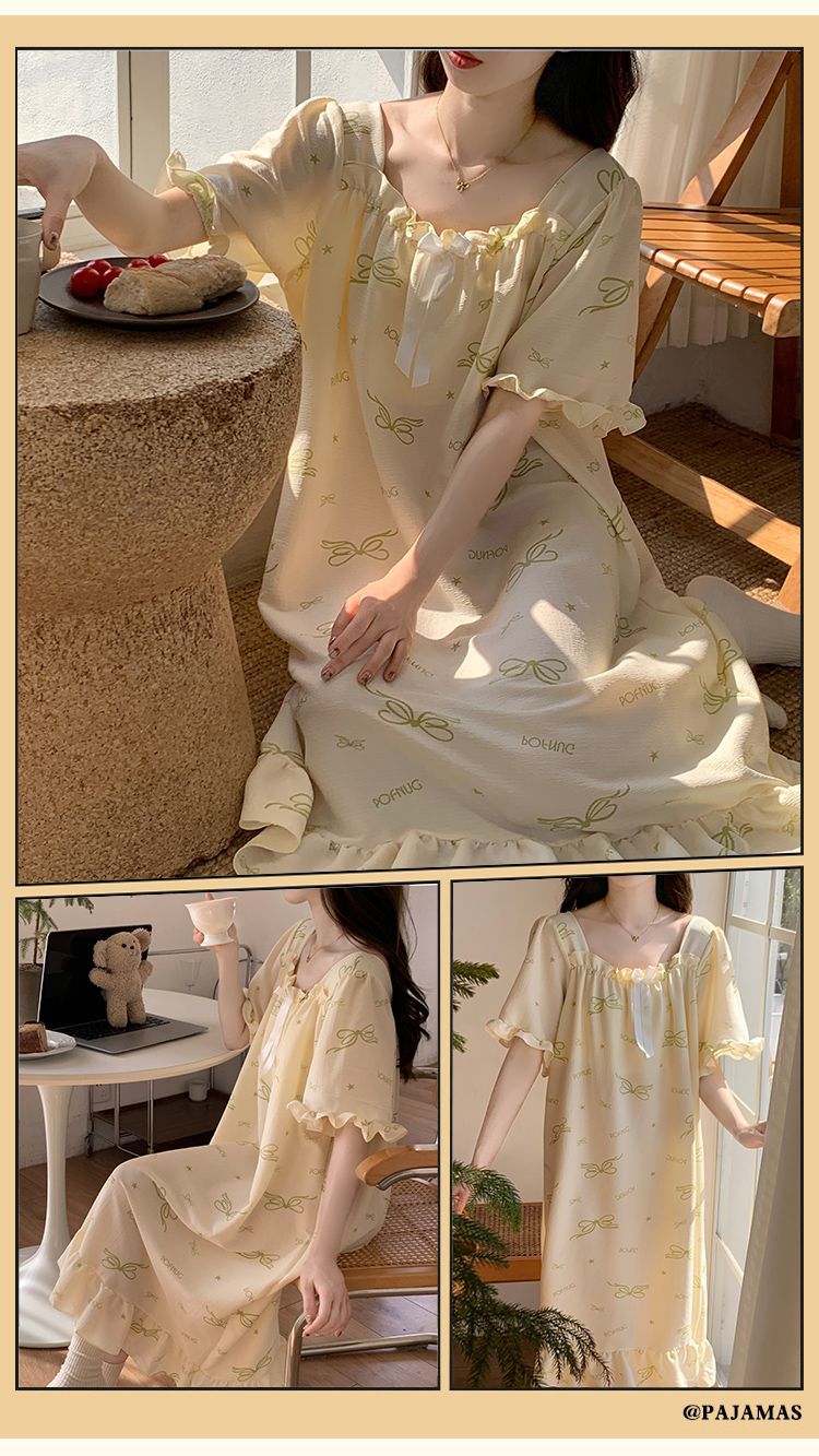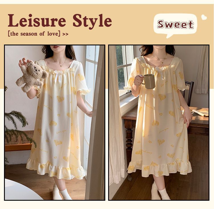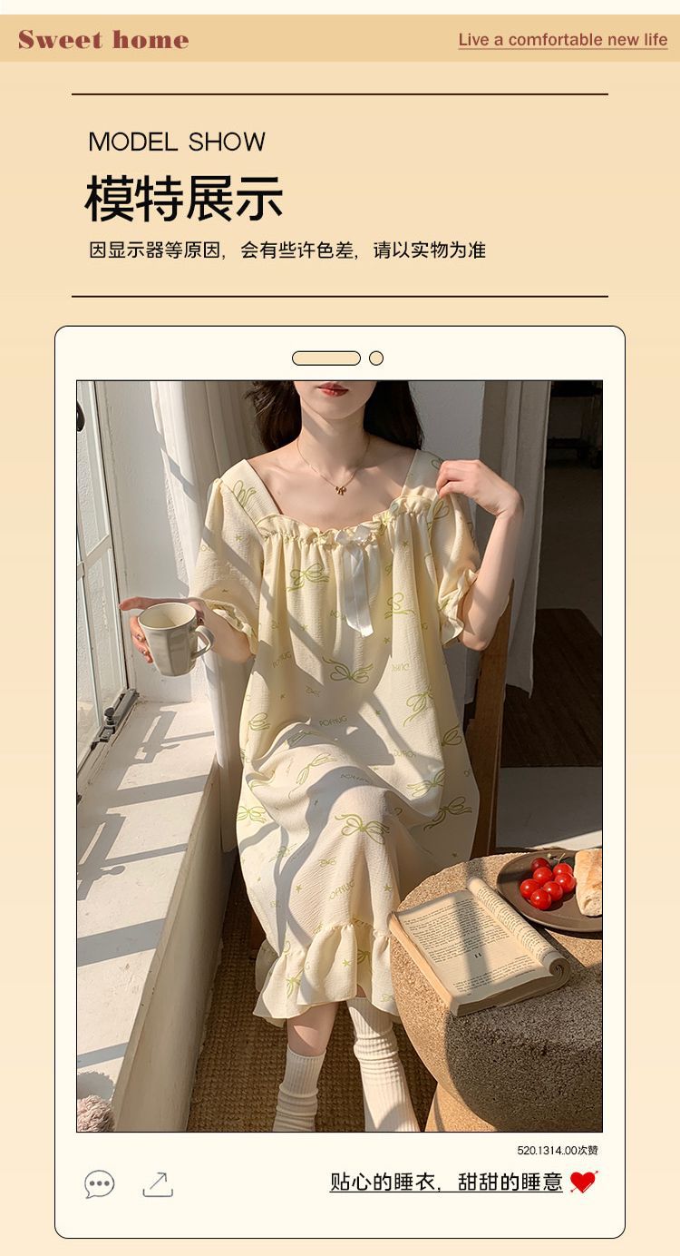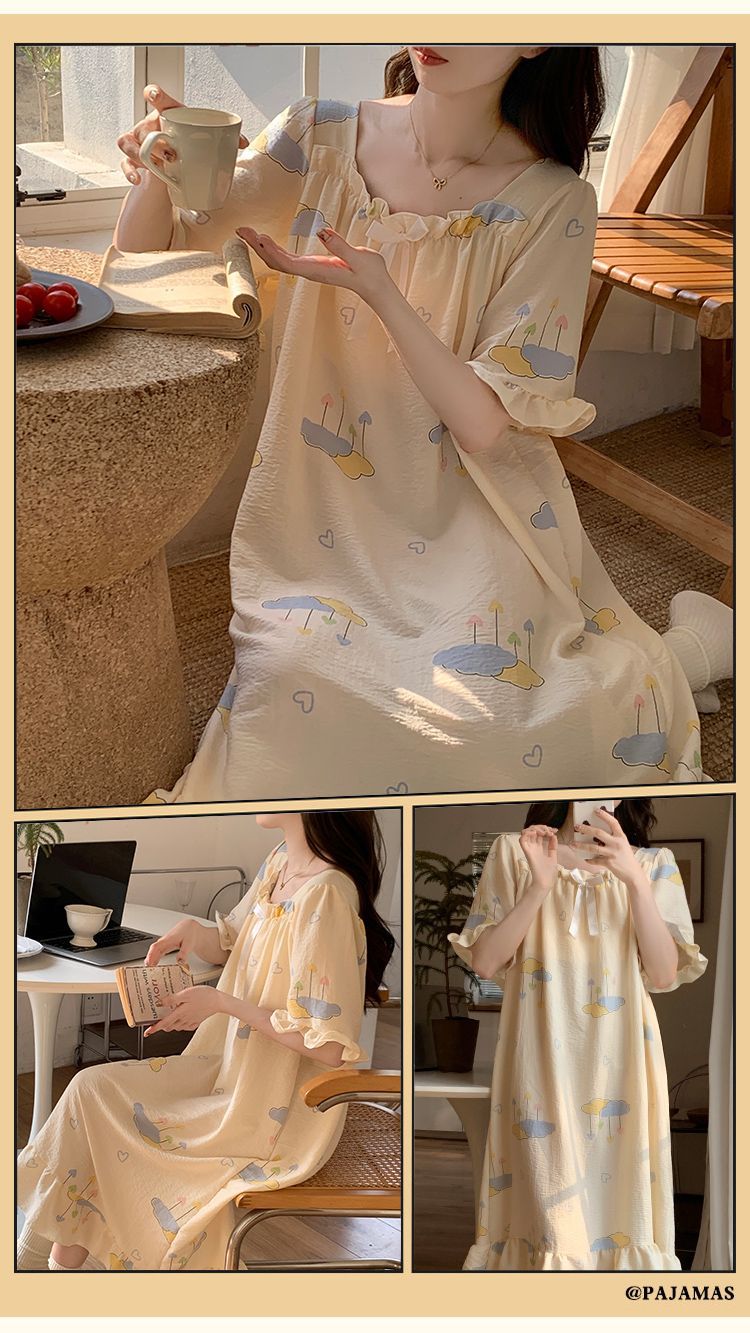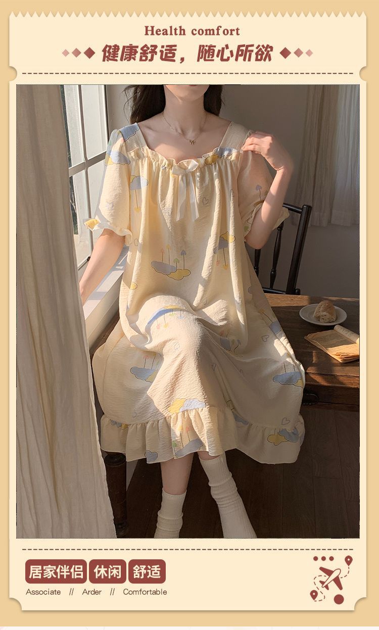 【每一天都是元气满满的少女】带胸垫睡裙夏季甜美公主风薄款云朵棉短袖少女睡衣裙家居服可外穿。ry