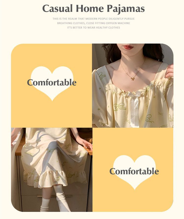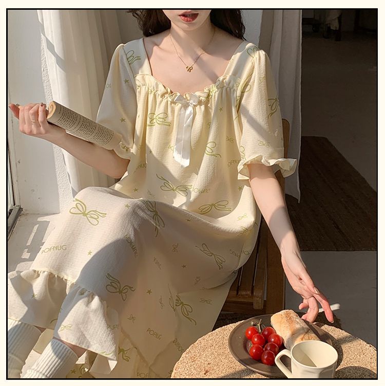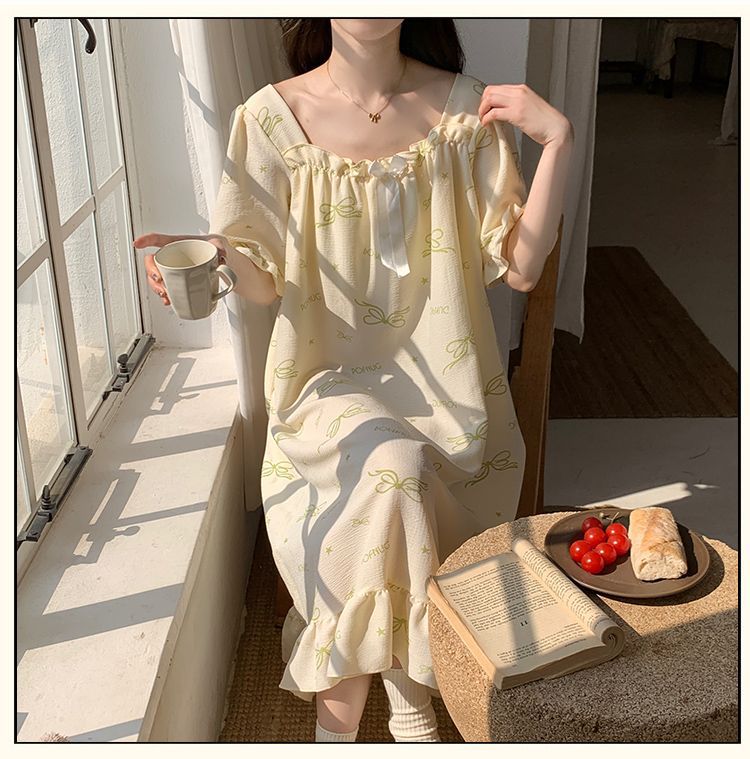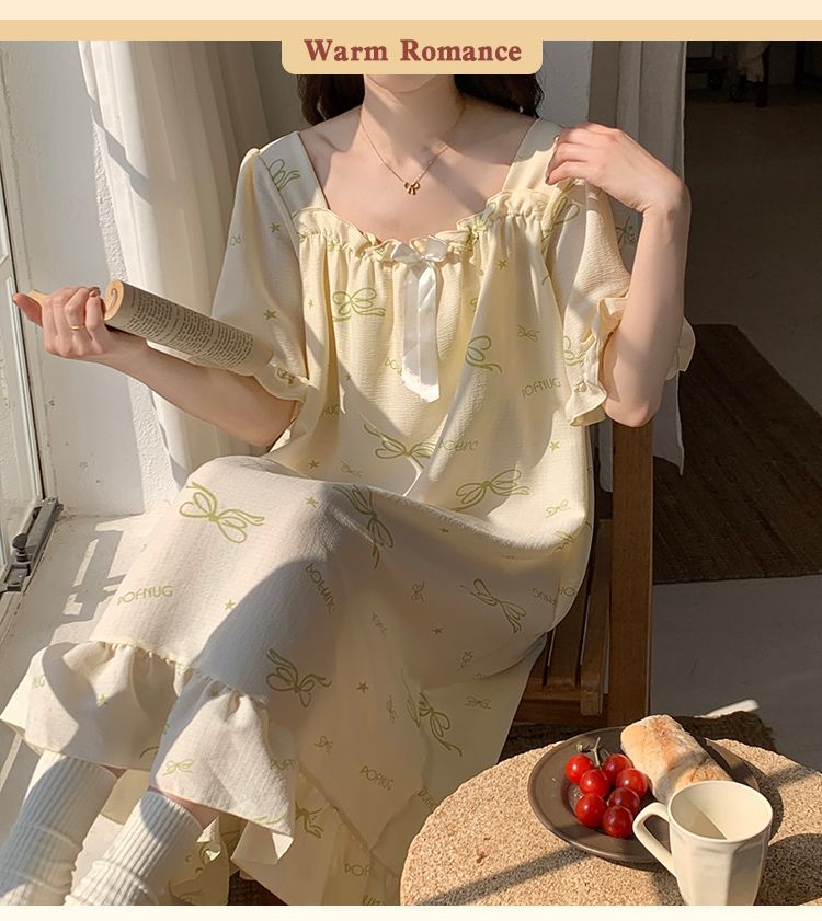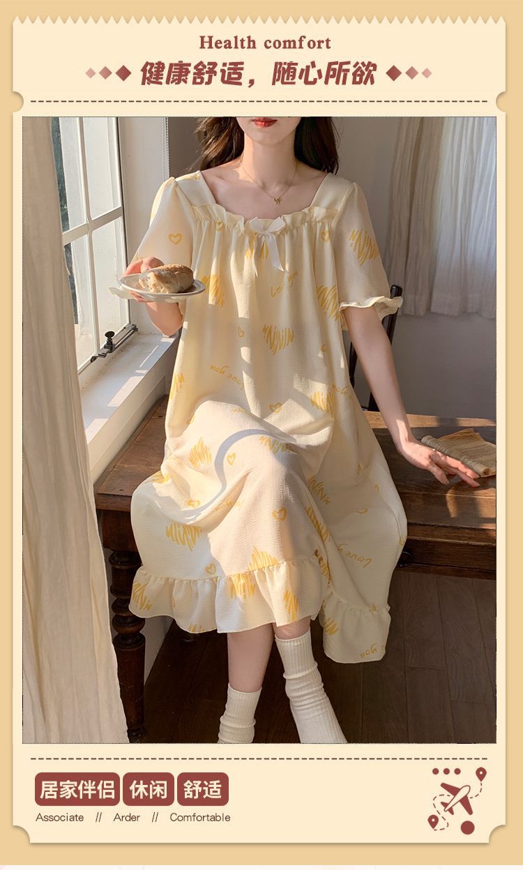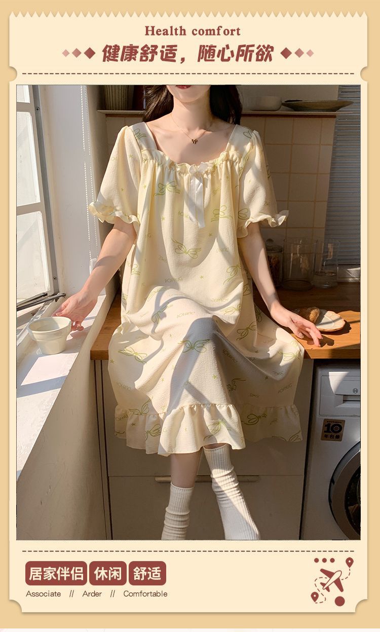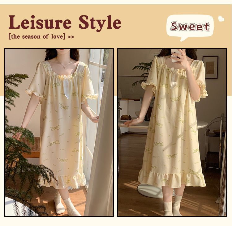 【每一天都是元气满满的少女】带胸垫睡裙夏季甜美公主风薄款云朵棉短袖少女睡衣裙家居服可外穿。ry