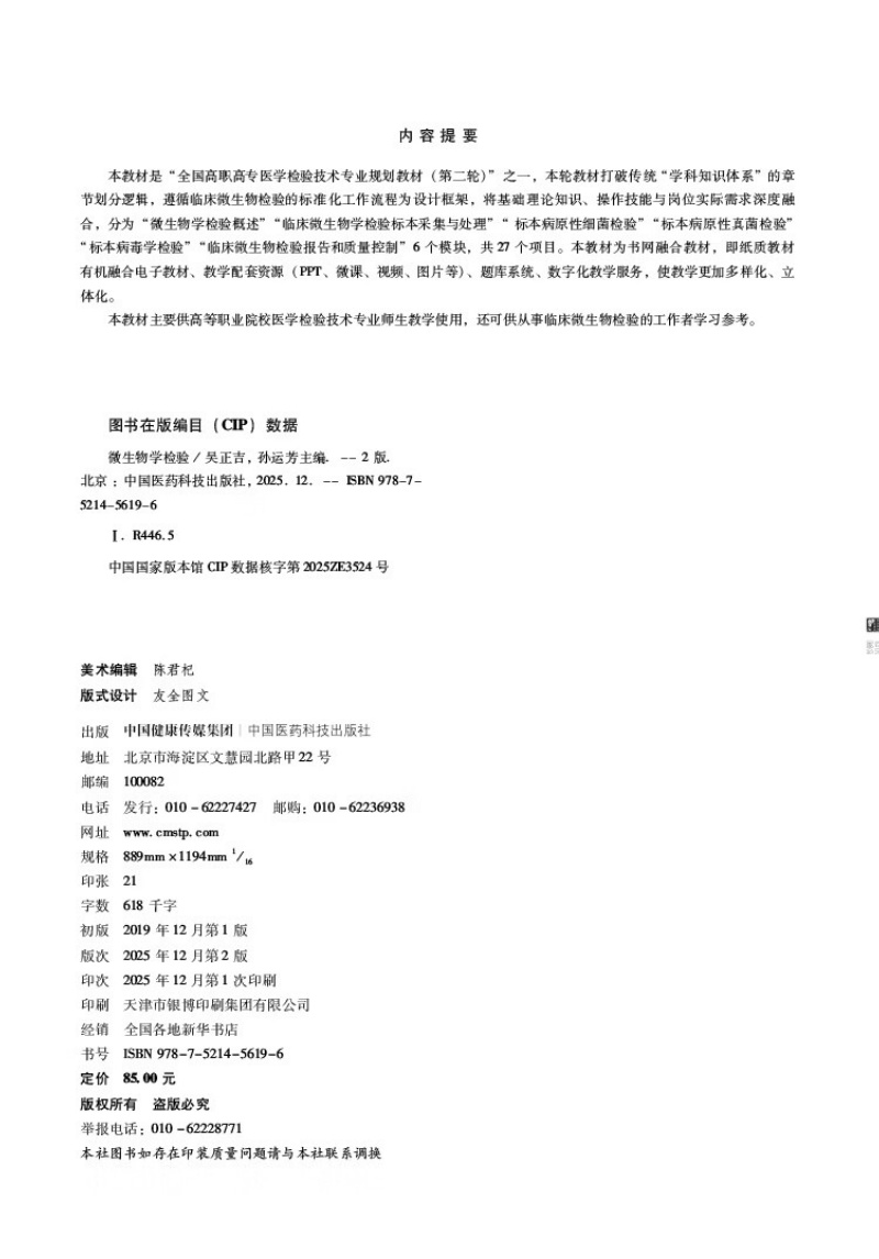 微生物学检验 第2二版 全国高职高专医学检验技术专业规划教材(第二轮)吴正吉 孙运芳 供医学检验技术专业用 中国医药科技出版社