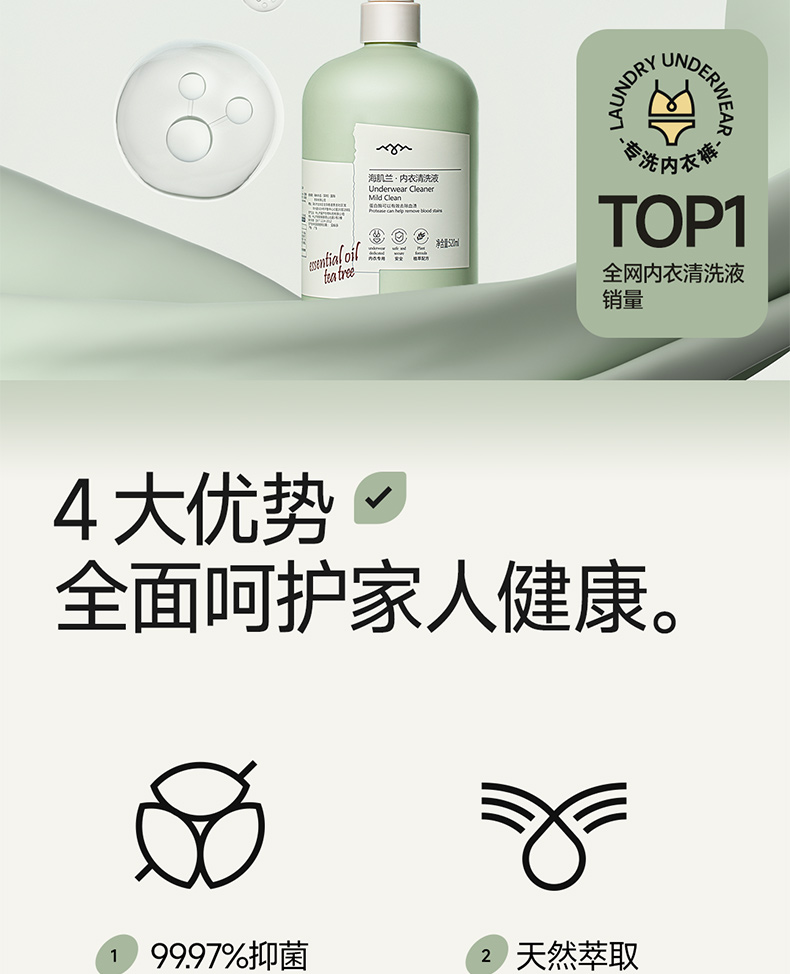 ² 59.9元/3瓶【全新升级海肌兰内衣裤专用清洗液】留香洗衣液 抑菌去血渍 HM02-CRMM-HJL